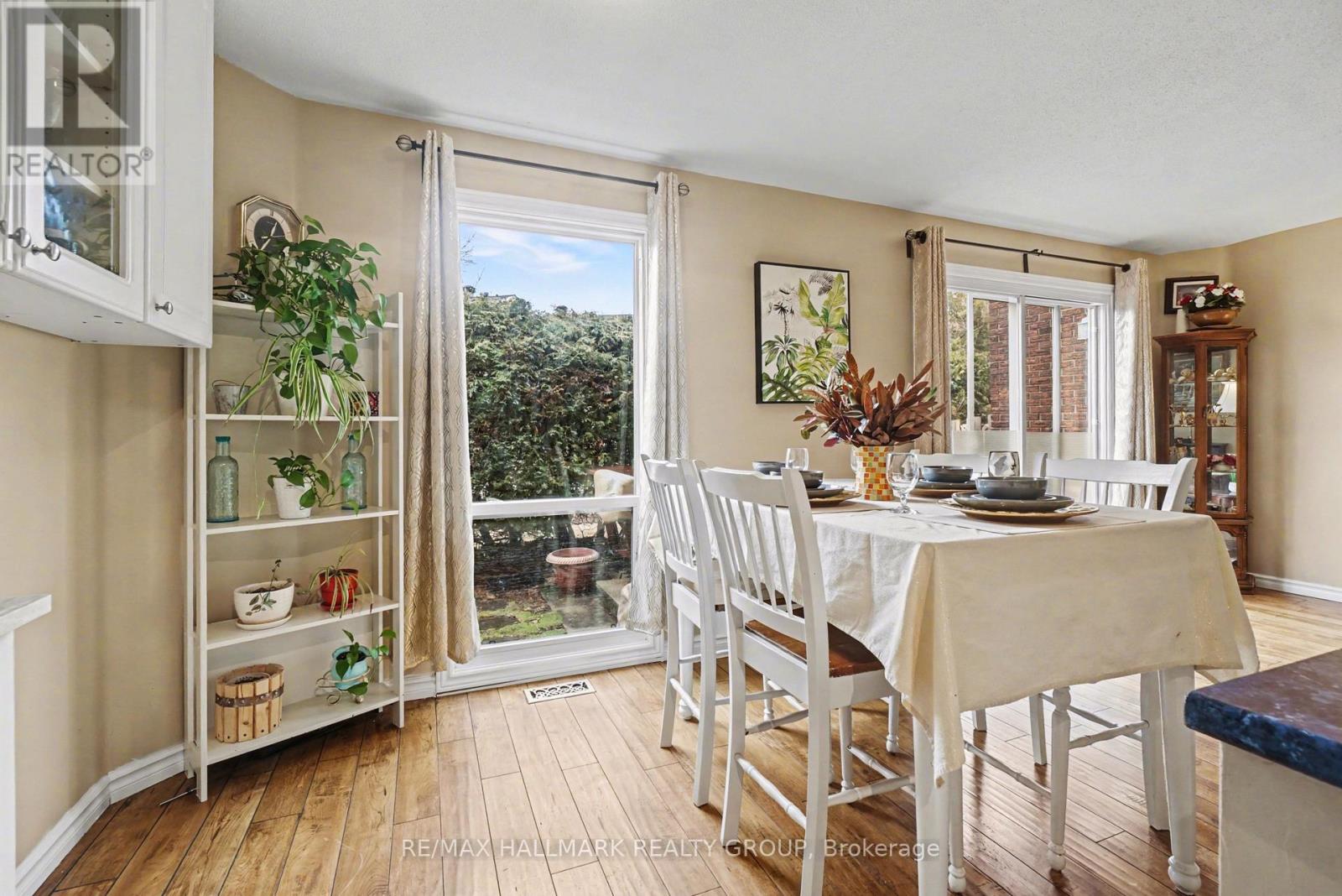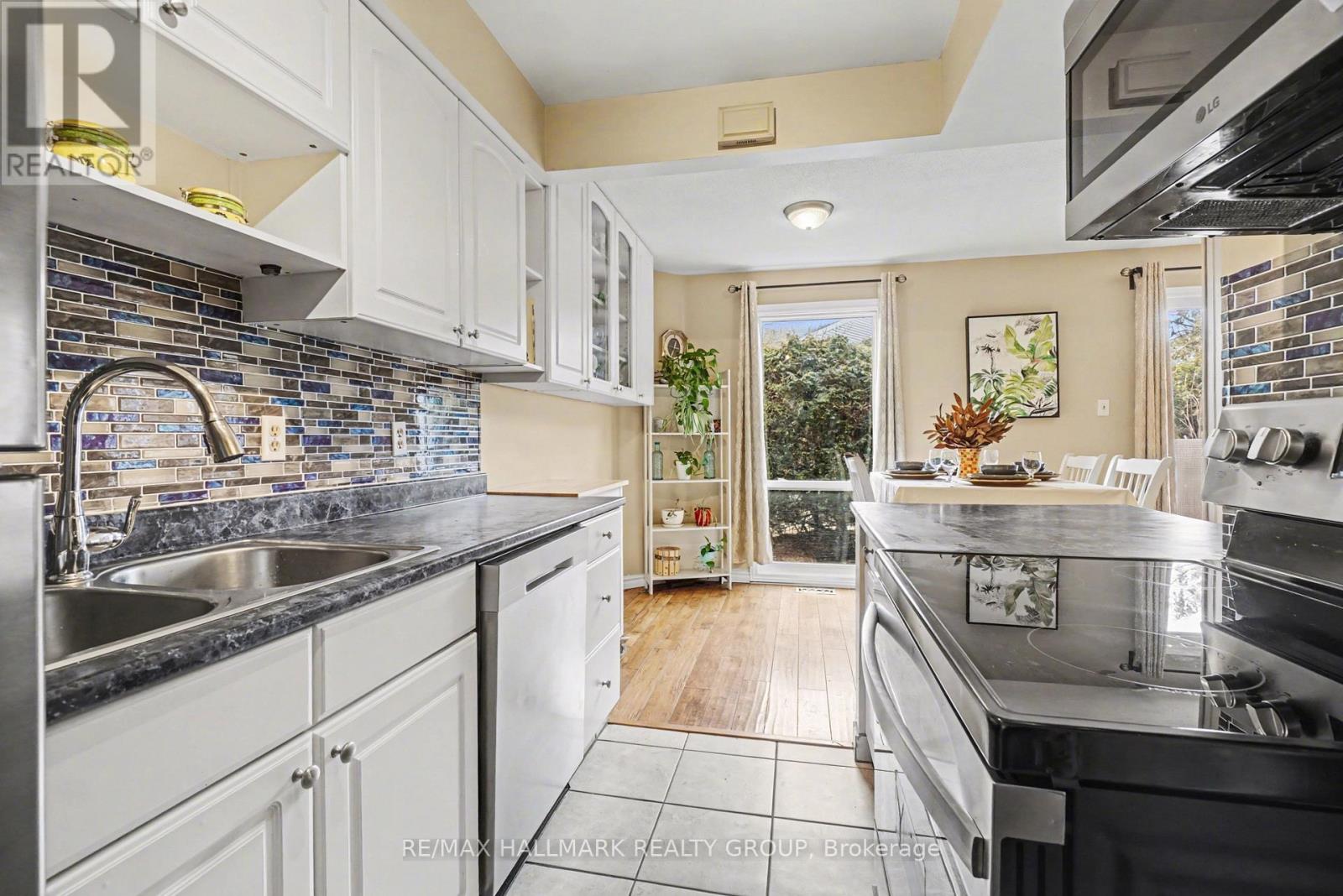Rare find in Bells Corners! This exceptionally spacious 4-bedroom, 2.5-bathroom end-unit condo offers over 1,800 sqft of living space and is perfect for families or professionals seeking a low-maintenance lifestyle without sacrificing room. Opportunities like this are few and far between, especially featuring a rare attached 1-car garage plus an additional driveway spot for two-car parking. Step inside to a bright, modern main floor featuring high-end laminate and ceramic tile throughout. This home is completely carpet-free for easy cleaning and a sleek look. The kitchen is a chef's delight, boasting crisp white cabinetry, a stylish backsplash, and sleek stainless steel appliances. You will love the open-concept living and dining area, which is flooded with natural light through stunning floor-to-ceiling window and a patio door leading to your private outdoor space. A convenient powder room is also located on the main level. The second floor continues the premium laminate flooring and hosts an impressively spacious primary suite. Uniquely, this floor offers three additional well-sized bedrooms providing ample space for a growing family, guests, or a home office. The full bathroom on this level shines with modern finishes and a beautiful quartz countertop. The finished lower level adds incredible value, offering a large, open recreation room with endless possibilities for a home gym, theater, or play area, plus a bonus bathroom with a stand-up shower. As an end unit, you enjoy a larger-than-average backyard and added privacy. Perfectly positioned in a prime location, you are minutes away from the Queensway Carleton Hospital, NCC trails, parks, diverse shopping, and transit. With reasonable condo fees and a layout that is nearly impossible to find in this price bracket, this property is a standout gem. These units do not come for sale often, so do not miss your chance to own this versatile and move-in-ready home. (id:64974)