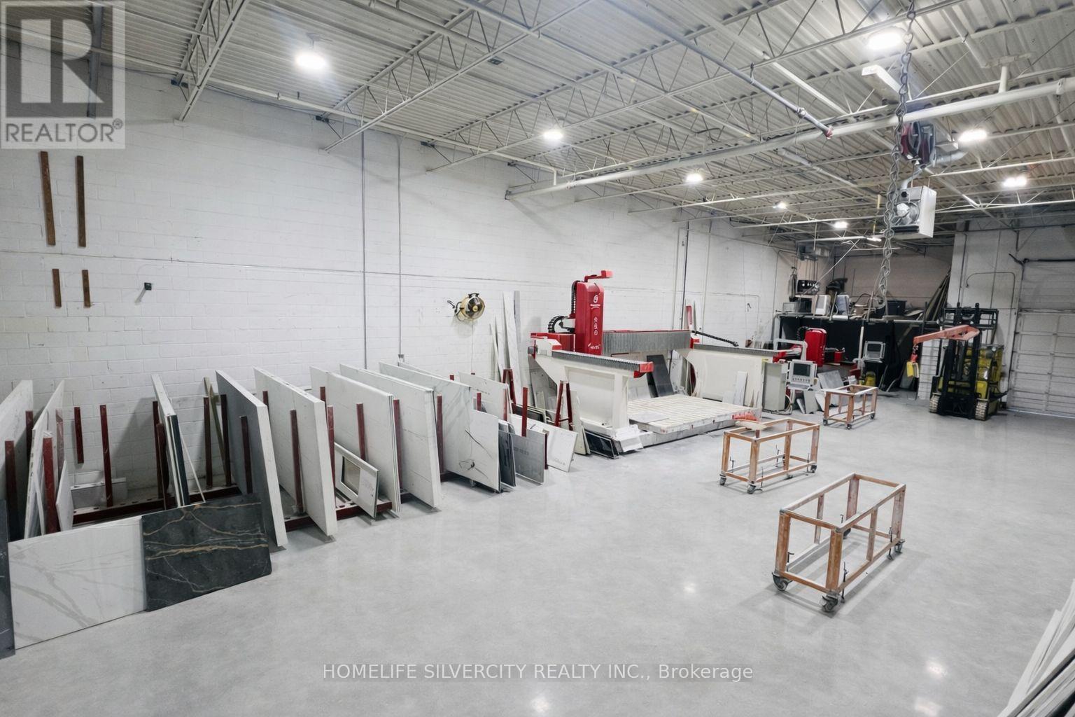 Prime M2 Industrial Condo | High-Exposure Opportunity Position your business in this premium M2-zoned industrial condo designed for performance and flexibility. Featuring 18 ft clear ceiling height, this unit delivers the volume and efficiency required for any kind of operations.The space offers a highly functional layout with a professional front showroom/office for client-facing operations, complemented by a large open-concept rear workspace ideal for manufacturing, warehousing, assembly, and distribution.Located within a well-maintained, professional industrial plaza, the property provides excellent access for 53' trailers, ensuring seamless logistics, shipping, and receiving.Currently a well-established tile and countertop business, featuring marble cutting equipment and on-site production of high-quality countertops and tiles. Zoned M2 - this property supports a broad range of permitted uses, including manufacturing, processing, assembly, packaging, warehousing, and repair operations, along with accessory office and administrative functions.The zoning also allows for select commercial and service-based uses, including retail, restaurant, personal service, recreational, hotel, and animal hospital uses (subject to zoning provisions), offering exceptional flexibility for end users and investors alike. Ideal for owner-users, investors, and growing businesses seeking a strategic industrial location with versatile permitted uses and strong operational potential. (id:64974)