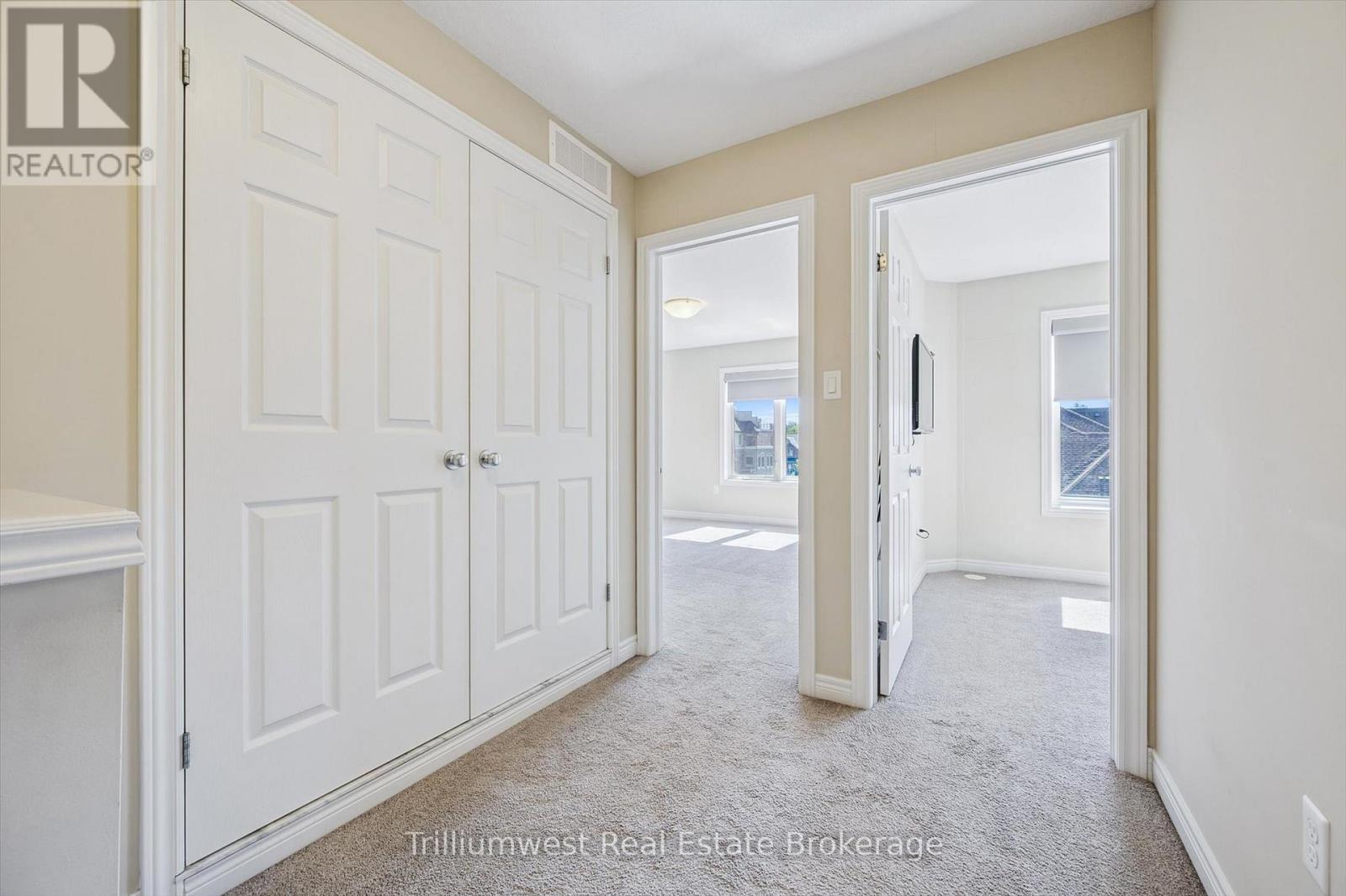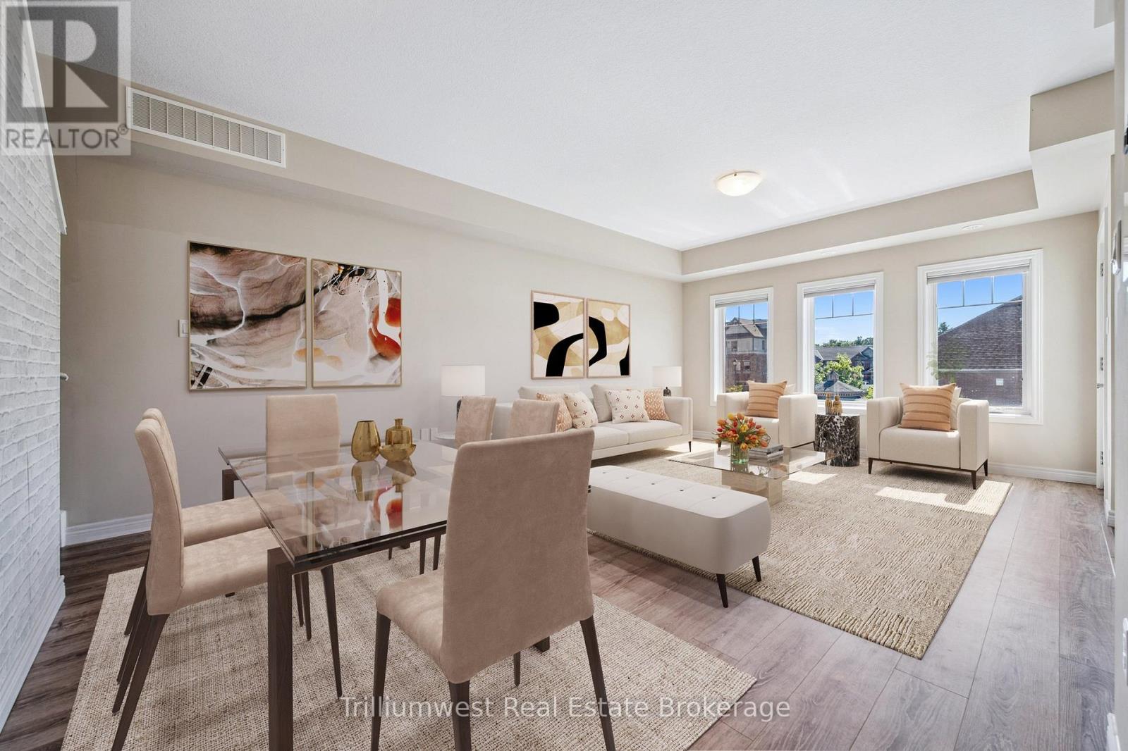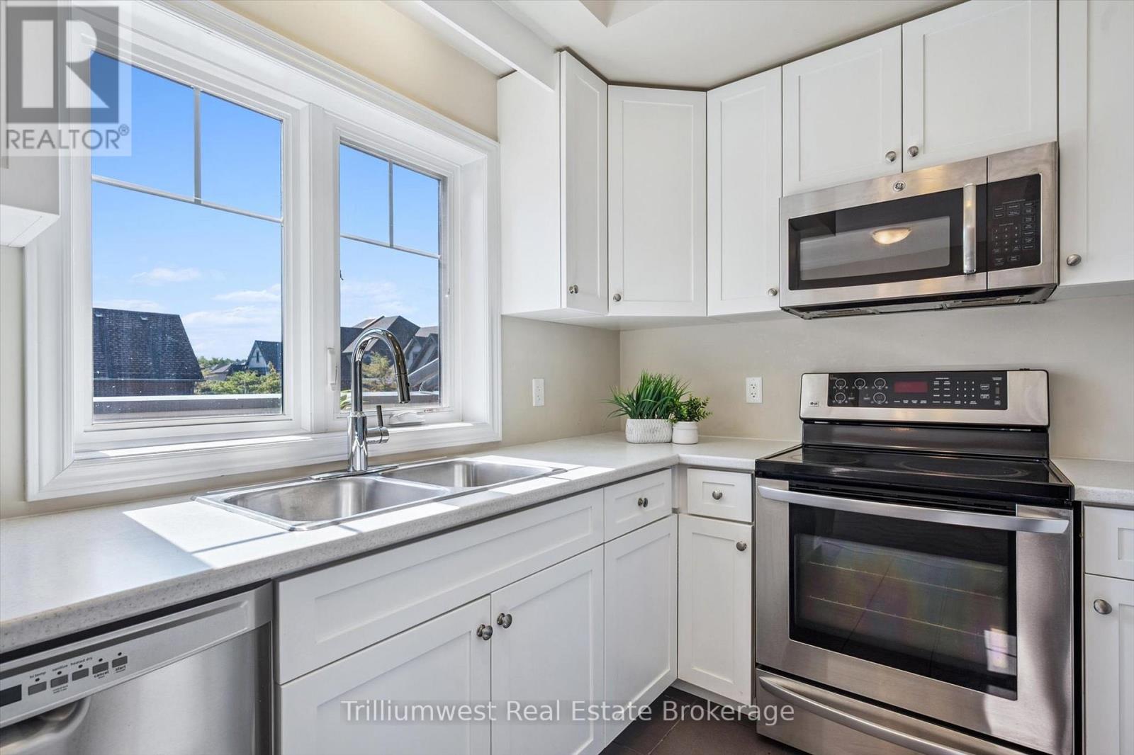 Welcome to 13-39 Kay Crescent, a rare find in Guelph's vibrant South End that offers the best of urban living with exceptional convenience. Located just moments from the Pergola Commons, this home provides unparalleled access to a wealth of amenities, including shopping, groceries, entertainment, and dining. Commuters will appreciate the easy access to Highway 401, making this the perfect blend of central location and accessibility. This stacked condo unit stands out with its flexible and generous parking, featuring one driveway spot and a covered garage with inside entry, plus visitor parking nearby-a true luxury for city living. Step inside to a bright and inviting open-concept main living level that is both functional and spacious. The layout is perfect for entertaining, with room for an extended dining table, a comfortable living area, and a well-appointed kitchen that all flow together seamlessly. Large windows bathe the space in natural light and offer picturesque views of the well-maintained common areas, complete with a gazebo, benches, and lush green space. A private balcony off the main living area provides a peaceful retreat for enjoying your morning coffee or evening relaxation. A convenient powder room completes this level. Upstairs, the bright and expansive primary bedroom is a true sanctuary. It features a striking accent wall, a spacious walk-in closet, and enough room for a king-sized bed and all your furniture. The second floor is designed for practicality, offering a good-sized second bedroom, a main bathroom with ample storage, and a dedicated utility room with a washer, dryer, hot water heater. This unit is a standout for its thoughtful design, premium parking, and incredible location. It's not just a home; it's a lifestyle waiting to be enjoyed. (id:64974)