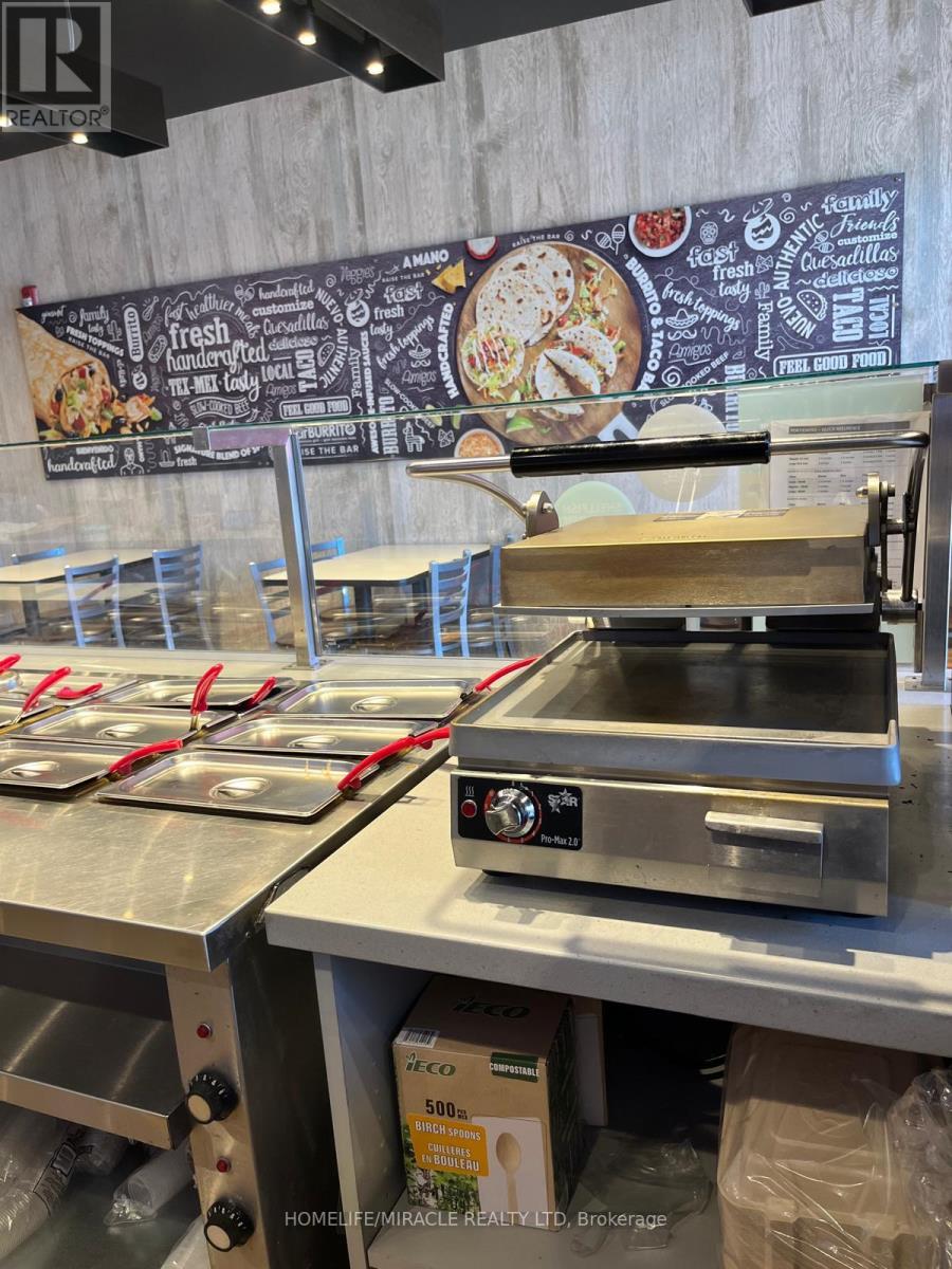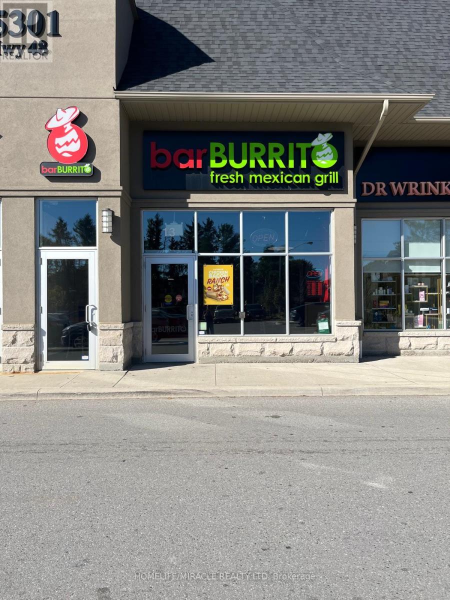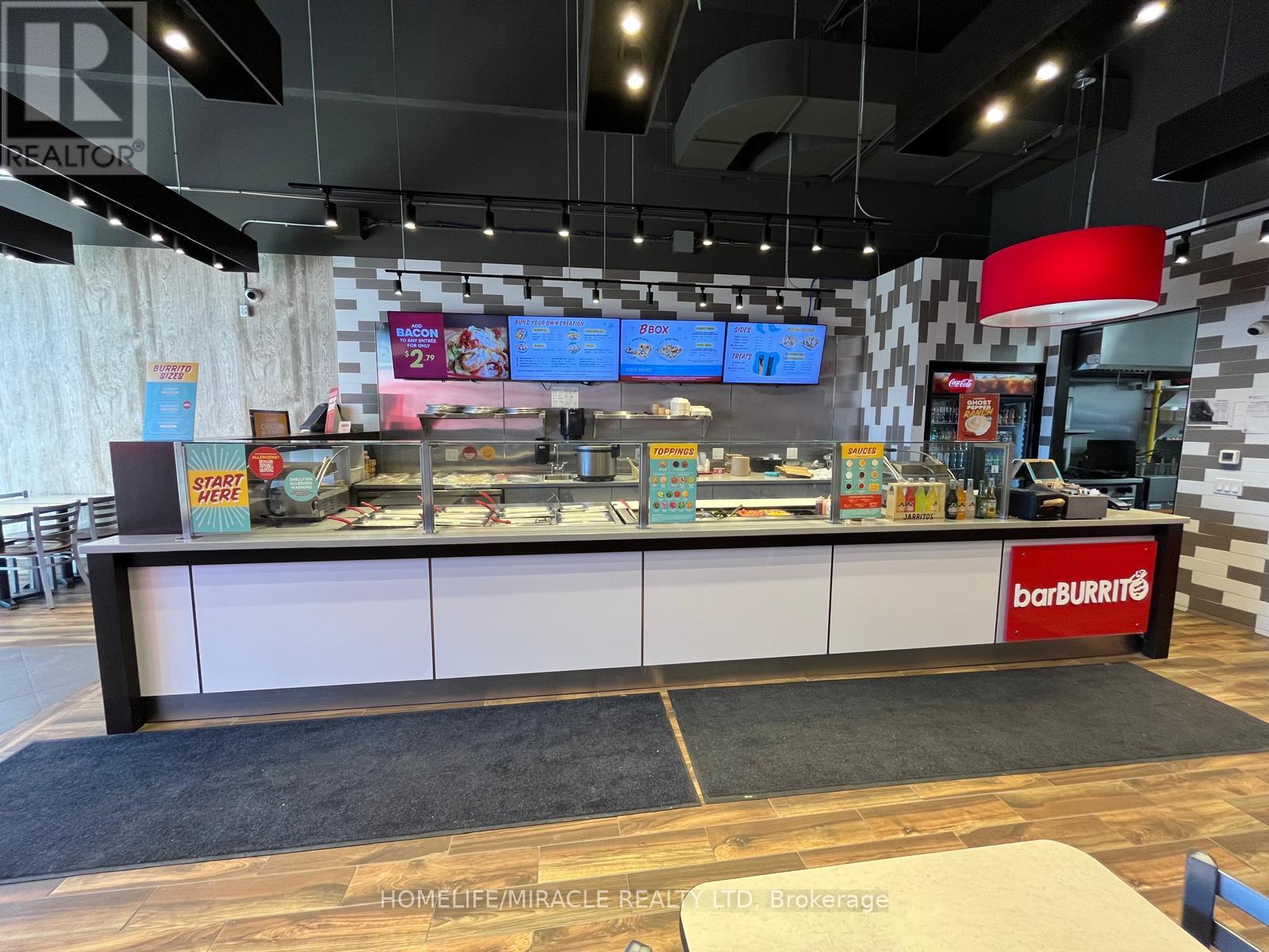 Welcome to an extremely affordable, Fully Equipped Turnkey business opportunity in a high-traffic Aurora Rd and Hwy 48 Intersection in the community of Ballantrae in York Region. This is a fantastic opportunity to own a fast-casual, well-known Brand Burrito franchise in a bustling AAA plaza. This store has steady sales and repeat customers and very good tourist traffic in the summer, making it a fantastic owner/operator business opportunity. Currently being operated with a hands-off ownership. This plaza has tons of visibility and parking, located right at the corner of Hwy 48 and Aurora Rd., which is the most suitable place for the local community as well as Highway traffic. This beautifully built-out Bar Burrito draws a big lunch and dinner crowd. All equipment is in excellent condition. Please do not go direct or speak to staff. Long Lease. Current lease has 6 more years and 2 X 5 Year Options To Renew * Very good opportunity for owner operator *Long-term Lease And Reasonable Rent. Good Sales And Still Growing. Ample Parking, Fast Food Menu, Easy Operation. (id:64974)