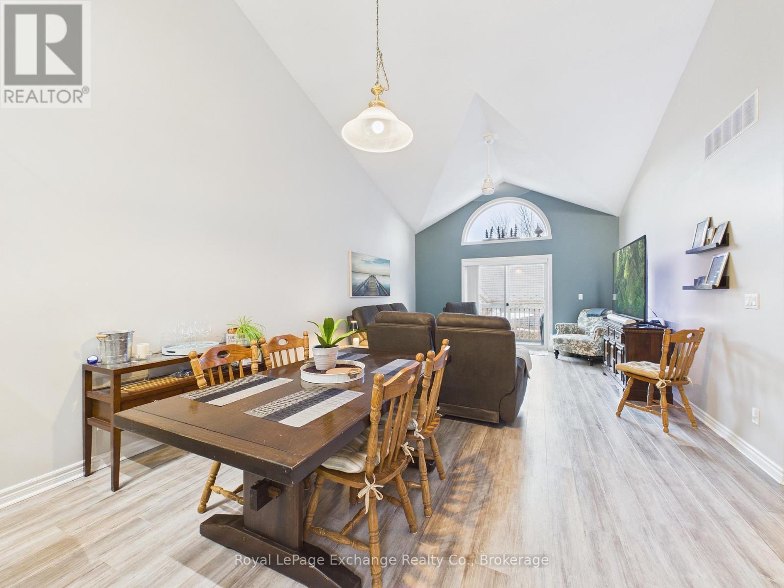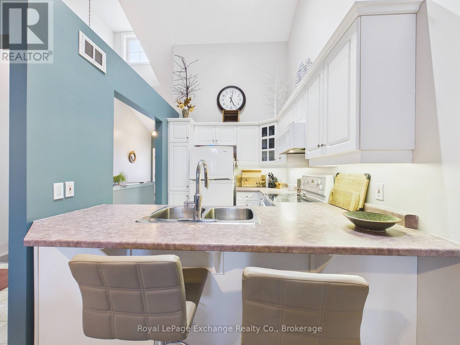 Welcome to Princes Grand Estate Condominiums, a desirable bungalow-style condo community. This well-maintained 2+1 bedroom, 2 bathroom unit offers a spacious and functional layout with plenty of room for comfortable living. The main floor features a bright kitchen and dining area with vaulted ceilings, creating an open and airy feel throughout the living space. The primary bedroom includes a 4-piece ensuite with his and hers walk through closets, while the additional bedroom is perfect for guests or can easily be used as a home office/den. The living room offers patio doors leading to a 12' x 5.6' elevated balcony, providing a great outdoor space to relax. The fully finished lower level expands your living space with a large family room complete with a pool table and walk-out patio, perfect for gatherings or recreation. You'll also find a third spacious bedroom, plenty of additional storage, and a bathroom rough-in ready for finishing, offering excellent potential for customization. Upgrades over the years include central air conditioning and natural gas furnace (2018), laminate flooring (2019) and electric water heater (2020). Located just steps from the downtown core of Kincardine, you'll be able to enjoy all the activities, shops, restaurants, and beautiful Lake Huron shoreline that the community has to offer, making this condo an ideal place to call home. (id:64974)