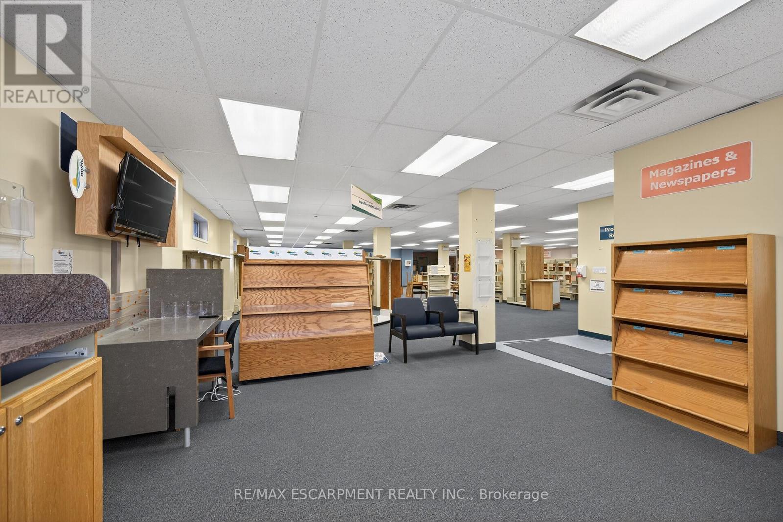 Endless opportunities in this great 5200 square foot one level commercial space in desirable high traffic area zoned Community Institutional (IC) and was previously the community library for many years. Well maintained building on a 75x132 ft lot with parking area in the rear. Commercial carpeting and lots of windows, natural gas forced air furnace plus central air (roof top units), 3 bathrooms (two public, one staff), and two extra framed in spaces, one with a sink - otherwise its completely open concept. Convenient municipal water and sewer. Permitted uses include day care, office, private club, school, training centre and more! (id:64974)