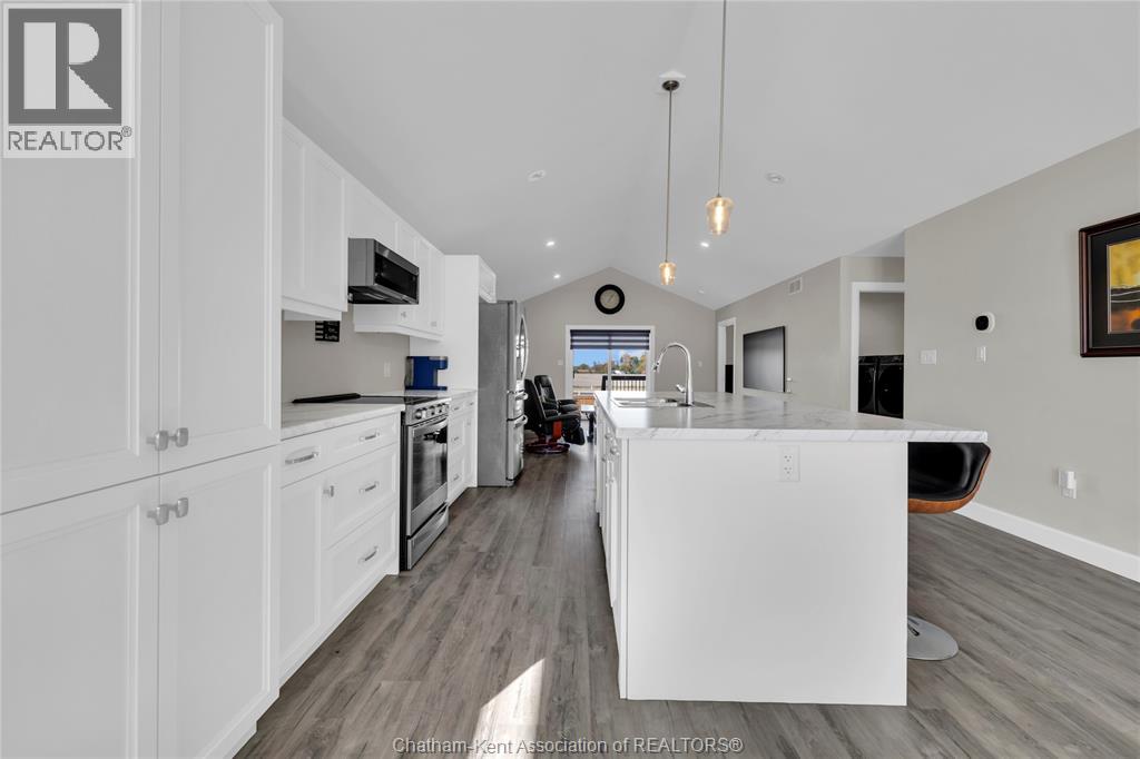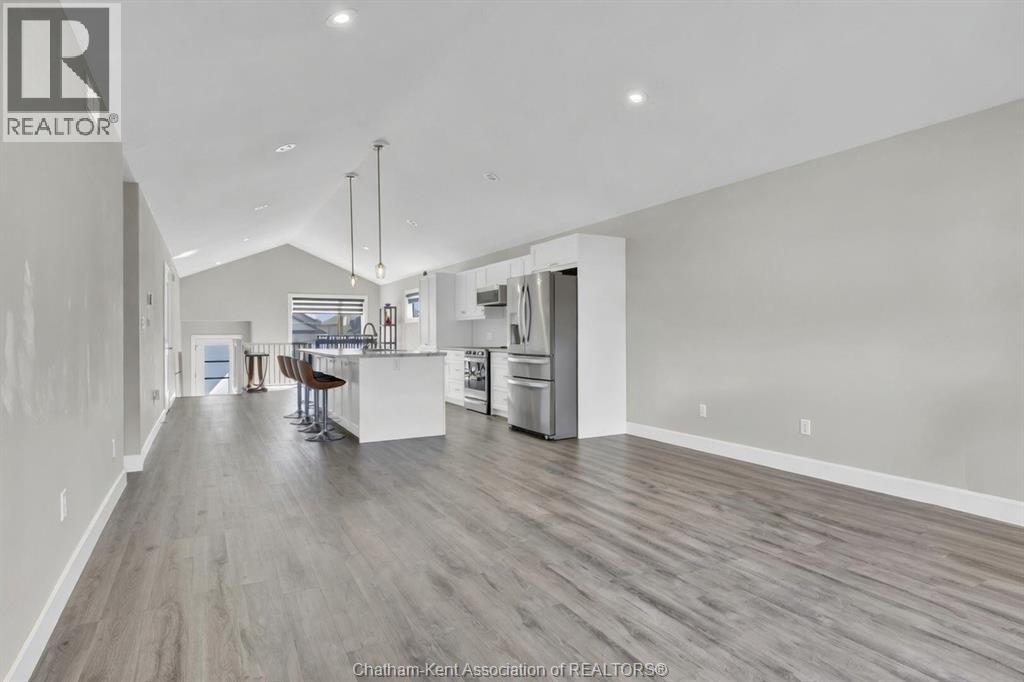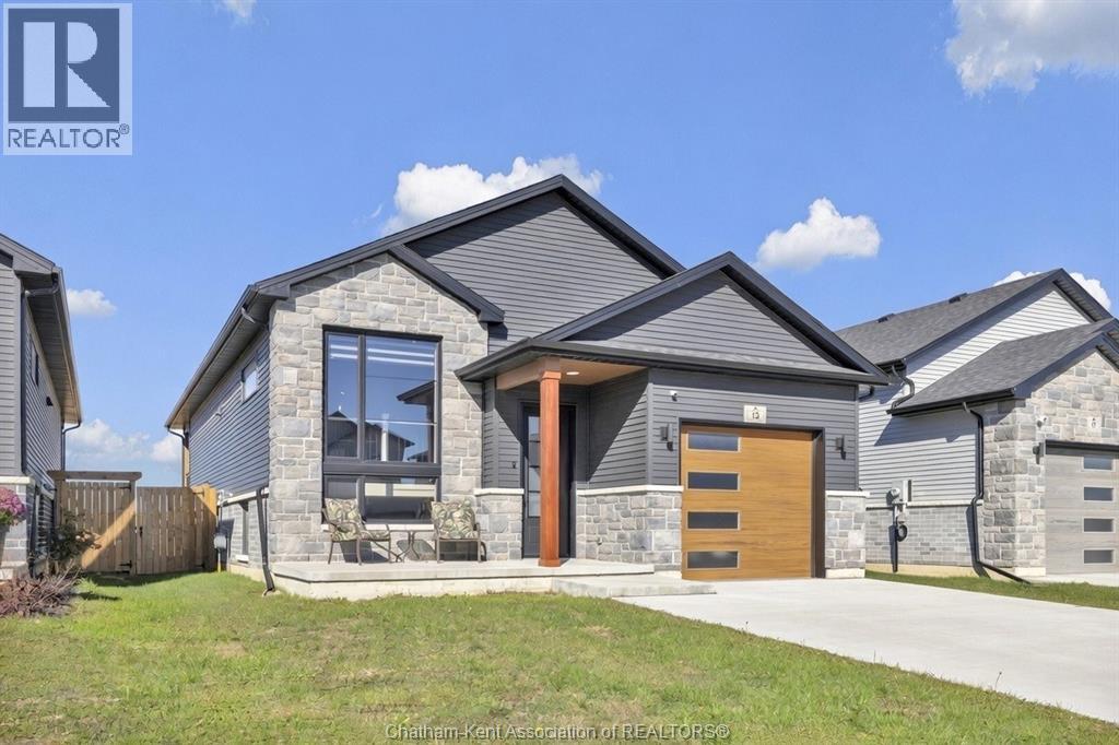 Located in The Landings, one of Chatham’s most desirable and family-friendly communities, 13 Baffin Way offers modern comfort, thoughtful design, and the assurance of Tarion warranty coverage until September 2030. Built in 2023, this contemporary raised ranch features an open concept main floor with cathedral ceilings and large windows that bring natural light into every room. The kitchen features a spacious center island, newer stainless steel appliances, soft-close cabinetry and seamlessly connects to the dining and living areas, creating an ideal setting for both everyday living and entertaining. The primary suite offers a walk-in closet and a private ensuite with a double vanity and a glass shower. A second bedroom and a full 4-piece bathroom provide versatility for guests, family, or a home office. The unfinished lower level presents exceptional potential to build equity - Featuring high ceilings, large windows that brighten the space, a roughed-in bathroom, and the opportunity to create two additional bedrooms, a full living area & a wet bar or kitchenette. Whether you want additional space, future rental potential, or long-term resale value, this lower level is a significant advantage. Outside, enjoy a fenced backyard and an attached 1.5-car garage. The home is located within a smaller and more exclusive subdivision that offers walking trails, green spaces, a neighbourhood park, and quiet streets with minimal traffic. It is a setting designed for families and anyone seeking a peaceful and connected lifestyle. The property is conveniently located near north side shopping, restaurants, schools, and provides quick access to Highway 40 and the 401. (id:64974)