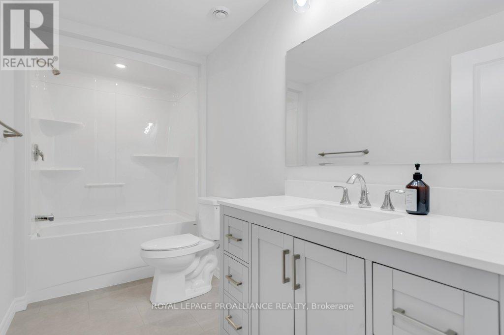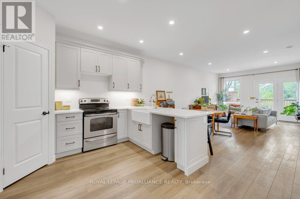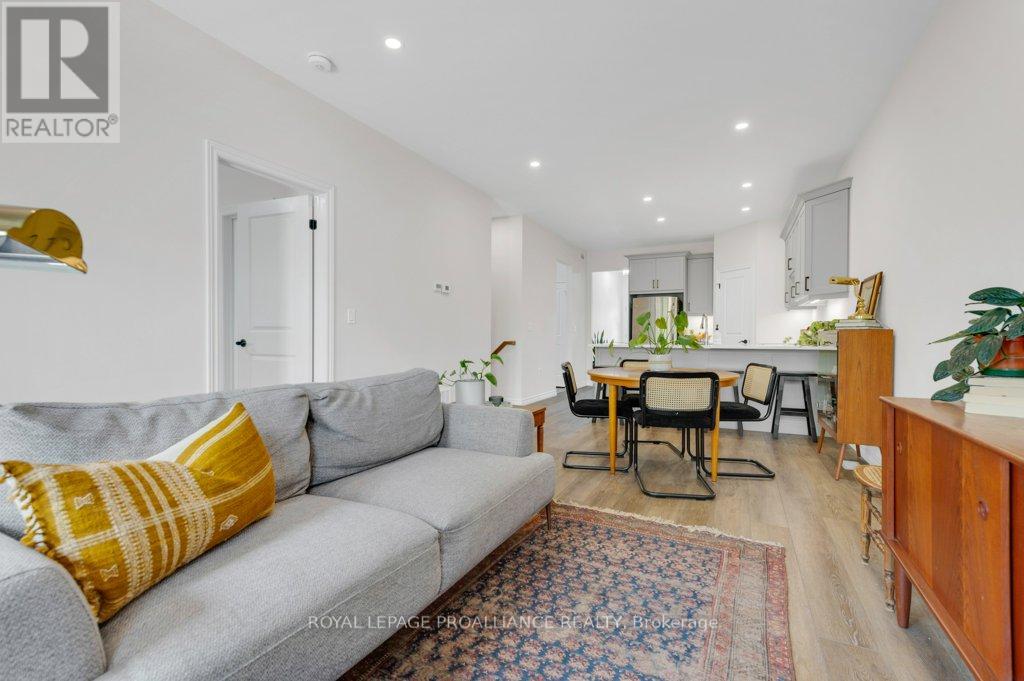 Nestled in the heart of the charming village of Stirling, this newly built town-home offers the perfect blend of modern comfort & peaceful living. Step inside to a bright, inviting open-concept layout that seamlessly connects the living, dining, and kitchen areas-ideal for entertaining or enjoying quiet evenings at home. large windows fill the space with natural light while offering tranquil views of the lush green space behind the property. The kitchen is thoughtfully designed for both function and style, featuring ample cabinetry, sleep countertops, a convenient pantry, and a layout that makes everyday cooking and entertaining effortless. The adjacent dining area provides the perfect setting for family meals or cozy gatherings, overlooking the beautifully fenced backyard and surrounding natural greenery. The main level offers two spacious bedrooms, including a private primary suite compete with its own well-appointed en-suite. The fully finished lower level adds even more living space with a third bedroom, making it ideal for guests, extended family, or a home office. With three bathrooms in total, the home provides comfort and convenience for both family and visitors. Additional features include main-floor laundry, a single-car garage with inside entry, and an HRV system that enhances air quality and energy efficiency. Step outside to enjoy summer evenings in the private fenced backyard, complete with a natural gas BBQ hookup and plenty of room for entertaining, pets or gardening. Located in a welcoming village known for its strong sense of community, excellent schools, scenic parks, and convenient local amenities, this beautiful town-home offers the best of modern living in a picturesque small-town setting. (id:64974)