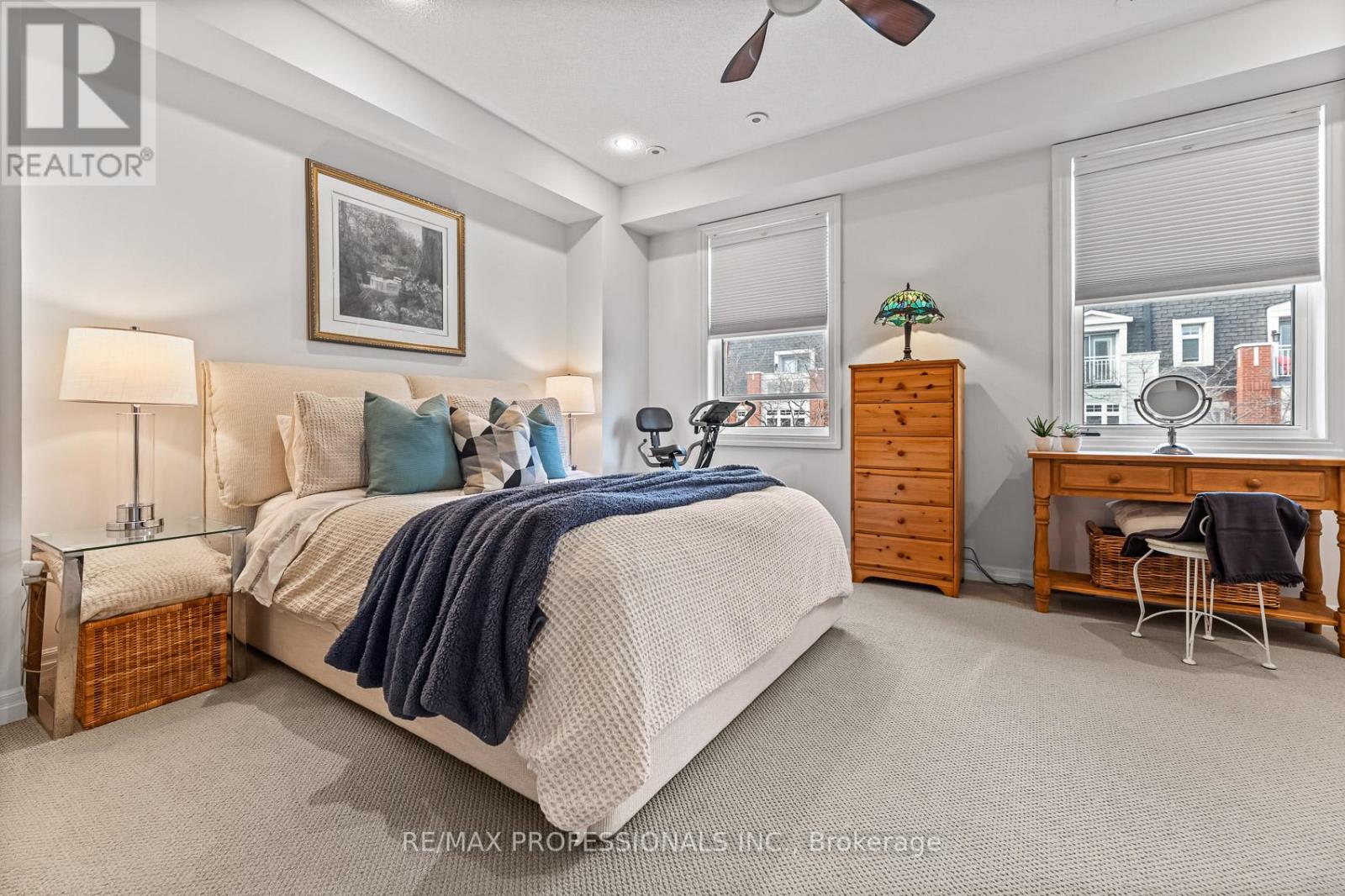 What a fantastic unit that can work well for those downsizing, first-time home buyers or those upsizing from a condo! As soon as you enter, you feel a sense of calmness. There is no end to the conveniences - grab a coffee and walk along the lake all year round, stroll downtown Port Credit to shop or dine, follow the bike paths down to the city or sit back and enjoy the coziness at home! There are 2 sizable bedrooms on the upper level - each with full ensuite bathrooms (Primary has wall to wall built-ins and a walk-in closet). The main level offers an eat-in kitchen with centre island, an abundance of counter space and storage that opens up to the living and dining room making the space great for entertaining. Walk out to the deck from the kitchen and enjoy additional outdoor living space with 2 gas hook-ups for both a BBQ and/or fire table. The ground level has an additional room with a full bathroom and storage (can be used as a bedroom/guest room, exercise room, at-home office, an additional entertainment space or combine all uses into one!), a mudroom with direct access to the 2-car garage and 2-car outdoor parking. Maintenance fees cover all exterior items (deck, roof, windows, eaves, landscaping, snow removal of public areas). A MUST SEE! (id:64974)