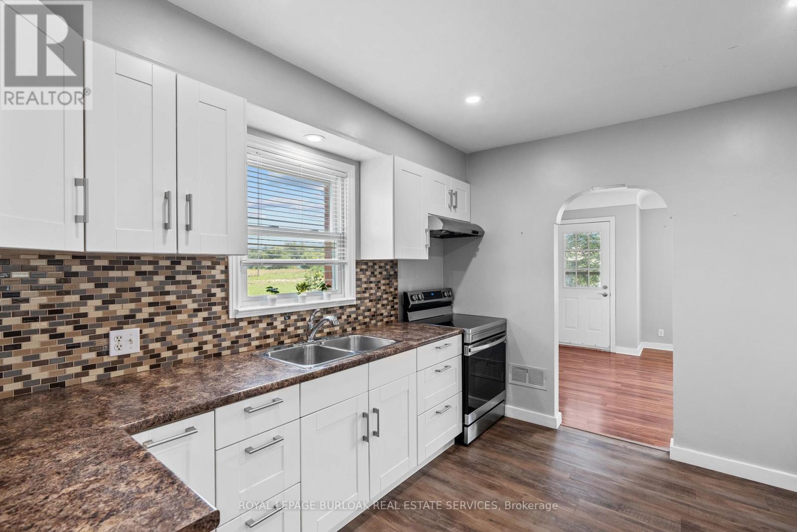 Sought after West Grimsby location, near QEW, Lake Ontario & Fifty Road/Costco shopping centre.This bright & recently updated 4 bedroom, 2 bathroom 2 storey house sits on a generous 80' x133.5' fenced in lot on a quiet dead-end street. With no rear neighbours and open views, the setting feels like the countryside while still enjoying municipal services and proximity to everything you need. Inside, there are 2 bedrooms and an office nook on the second level,another 2 bedrooms, a 4-pc bathroom, living room, dining room & kitchen on the main floor & an oversized family room in the finished basement with a large laundry/storage room and a 3-pc bathroom. Outdoor living is a highlight, with a large deck overlooking the private fenced backyard, perfect for entertaining, gardening, or relaxing under mature trees. An apple tree offers seasonal harvests, and the oversized detached garage has room for one car, a workbench &a separate area for a man-cave at the back of the garage. This house has something for everyone, it really is a must see! (id:64974)