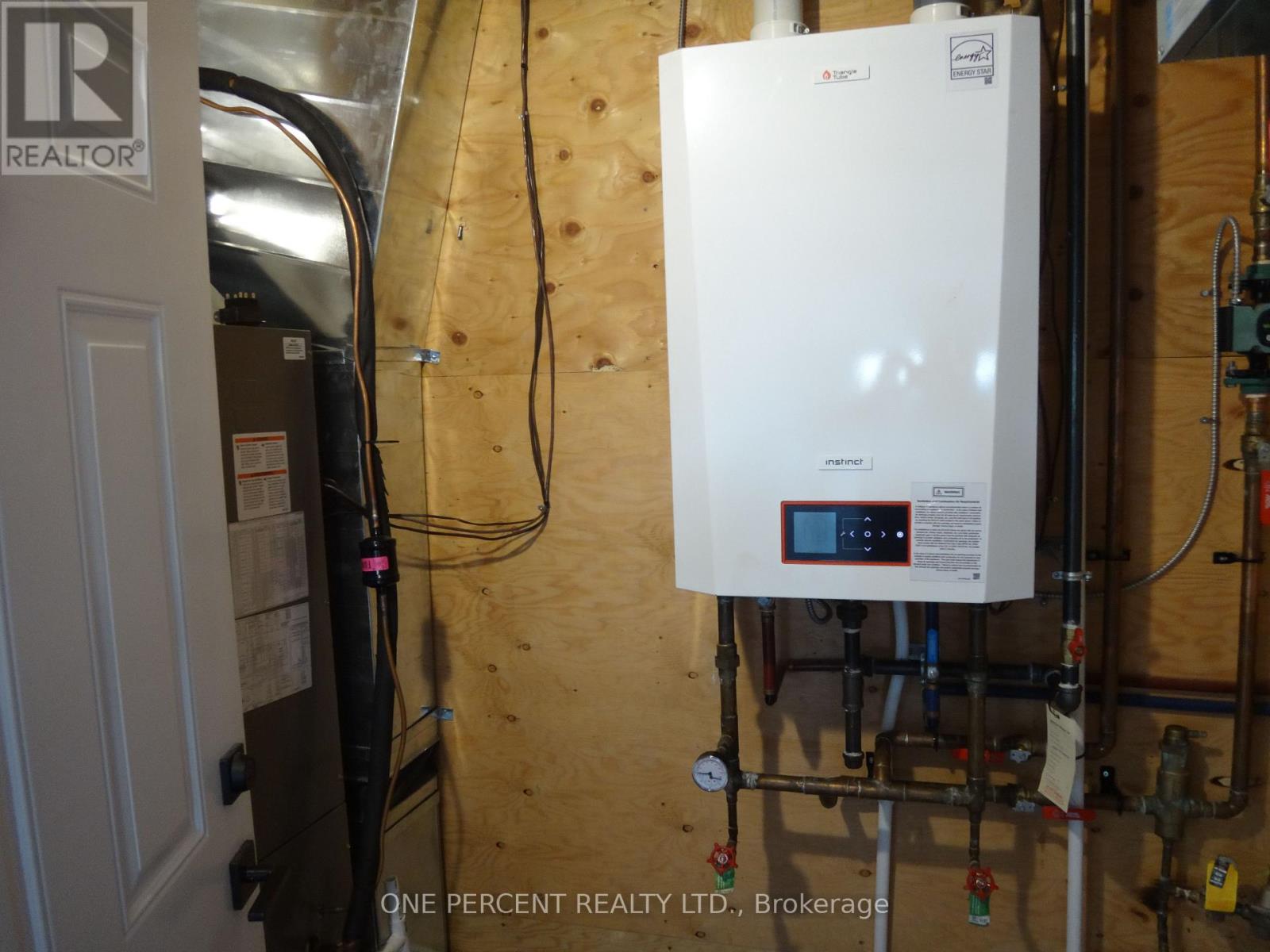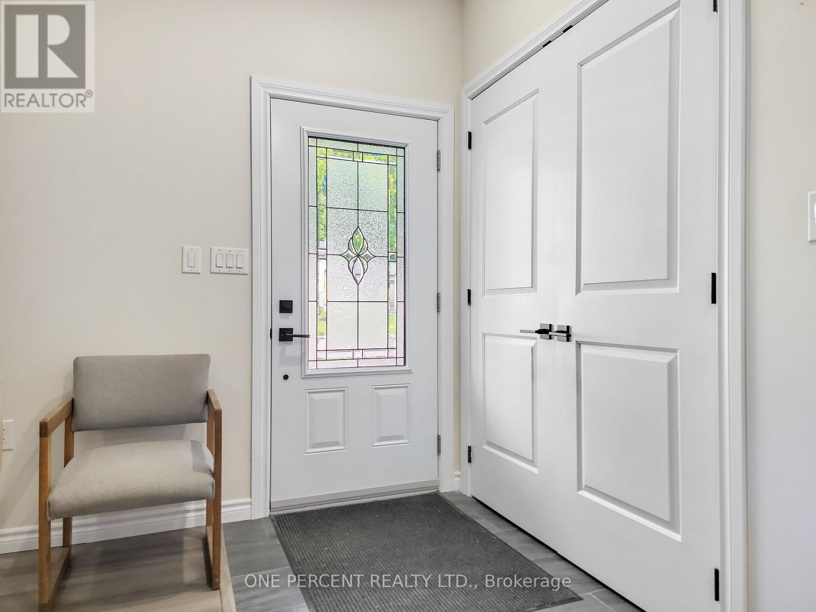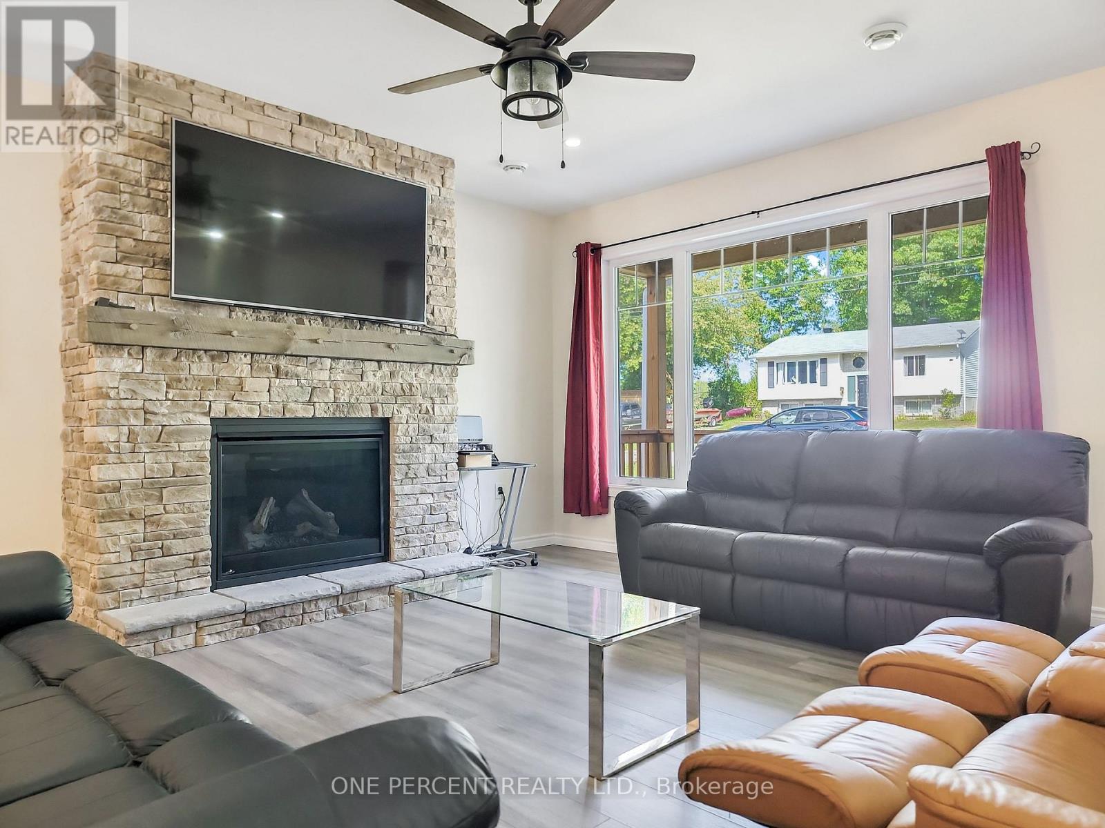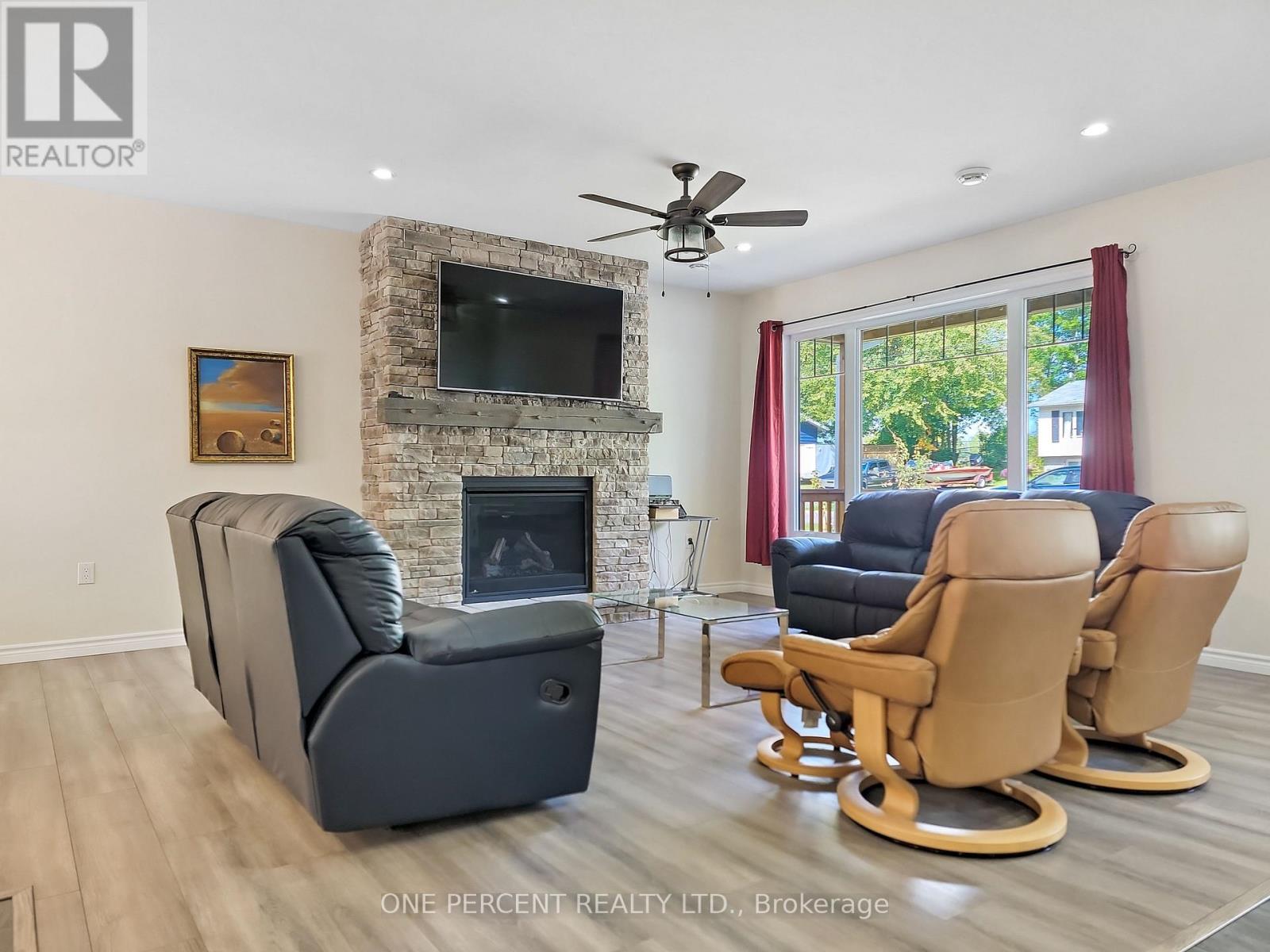 Welcome to this modern open-plan bungalow, built in 2020 with efficiency, low-maintenance, and luxury living in mind. High ceilings and an open layout fill the home with natural light, while sleek hard-surface flooring throughout (100% carpet-free) adds both style and practicality. The spacious living room, anchored by a cozy natural gas fireplace and accented with pot lights, creates the perfect gathering space. The modern kitchen features stainless steel appliances, soft-close drawers and cupboards, and a clean contemporary design. Three generous bedrooms include a primary suite with a walk-in closet and a private 3-piece ensuite, while a stylish 4-piece main bathroom ensures comfort for family and guests. A true highlight is the fully finished (very rare) 20'6 x 20'6 garage, making it functional year-round. Additional upgrades include a fully owned on-demand hot water heater (no rental bills and endless hot water), efficient natural gas in-floor heating for dust-free comfort, AC ducts built into the ceiling with upgraded insulation for more effective cooling, and an HRV system. Outside, enjoy a rear deck off the patio doors, an extra-wide paved driveway with ample parking, and the convenience of town water, sewer, garbage, and recycling services. This thoughtfully designed bungalow blends modern style, comfort, and practicality, offering the ideal one-level living solution in a truly low-maintenance package. (id:64974)