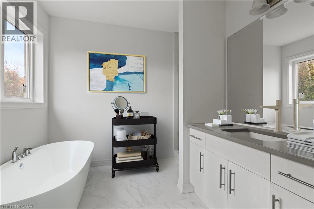Welcome to this stunning brand new 2-storey freehold townhome located in the prime West Hamilton Mountain. Offering approximately 1,500 sqft. of stylish, modern living space. This carpet-free home blends executive comfort with everyday convenience with NO condo or road fees! The main floor boasts 9ft ceilings, and an elegant oak staircase with matching railings that complement the pre-finished flooring. Upstairs, the spacious layout continues with bedroom-level laundry for ultimate convenience. The primary suite is a private retreat, complete with a luxurious 4-piece ensuite. Downstairs, your additional 600 sqft. unfinished basement comes with a rough-in for a future bathroom — perfect for a future rec room, home office, or guest suite. The home is covered under Tarion's Ontario New Home Warranty for your peace of mind. This move-in ready, carpet-free townhome offers everything you need — all with no condo or road fees! Fantastic location near schools, parks, shopping, and quick highway access — perfect for families, professionals, or investors. Multiple units and floor plans available. (id:64974)