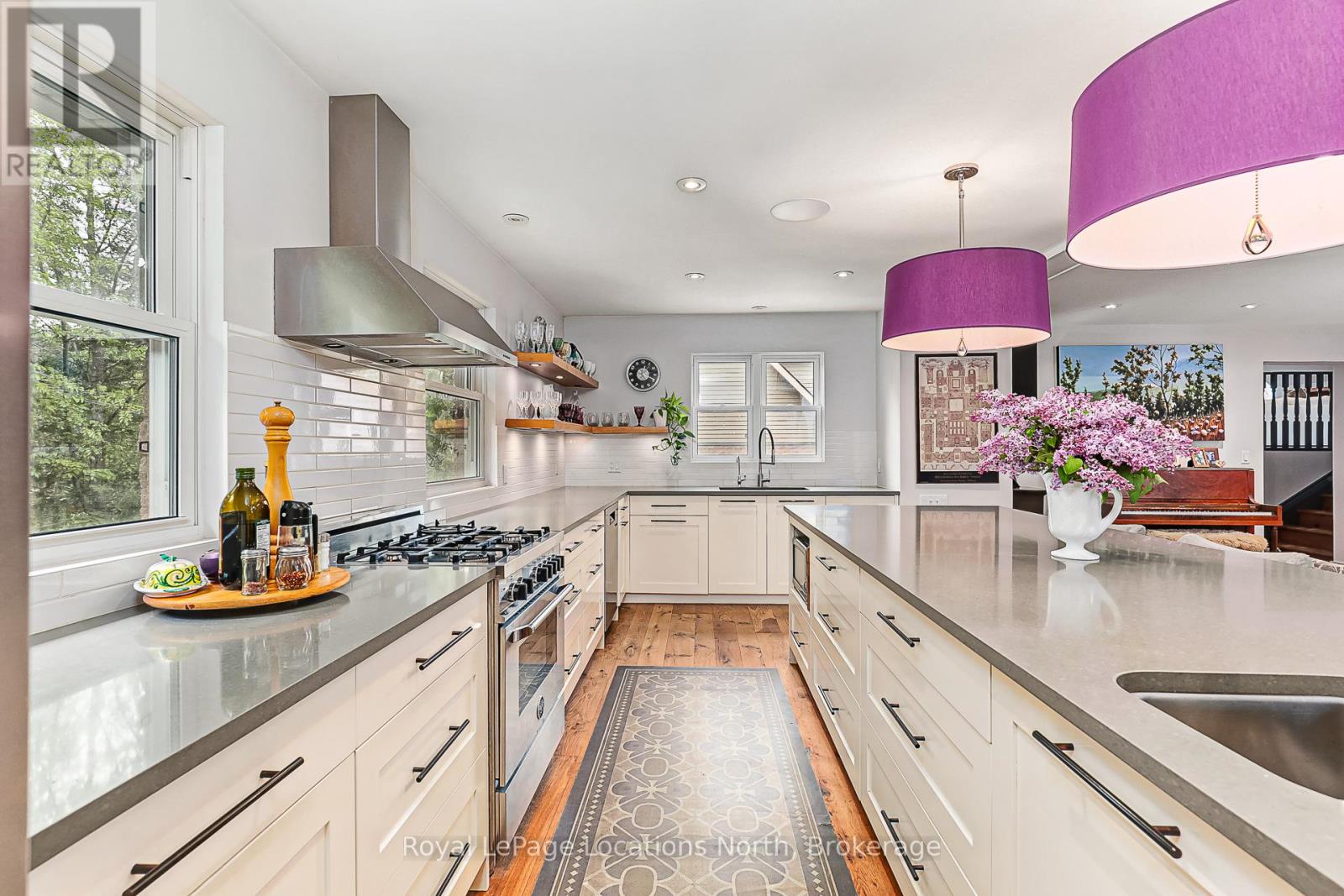 Your Dream Home Awaits in Prestigious Collingwoodlands. Discover the essence of refined country living in this truly exquisite 4-bedroom custom-built residence, nestled within the sought-after enclave of Collingwoodlands. Just minutes from the vibrant town of Collingwood & moments from Oslerbrook Golf Club, Osler Bluff Ski Club, & Blue Mountain Village, this exceptional property places you at the heart of Southern Georgian Bays most celebrated lifestyle & recreation. Crafted with timeless elegance & enduring quality, this home showcases superior craftsmanship, luxurious finishes & a design that seamlessly blends beauty with function. At its heart lies a gourmet chefs kitchen, complete with top-tier appliances, an expansive centre island, and fine detailing perfect for both sophisticated entertaining & everyday enjoyment. The gracious living room opens onto a covered porch, inviting you to begin your day with a coffee in hand, surrounded by natures tranquillity. A spacious dining room creates the perfect setting for memorable gatherings. The main-floor primary suite is a private retreat, featuring a spa-like 5-piece ensuite, walk-in closet, and direct access to a gorgeous 3 season sunroom , which flows out to the BBQ area & beautifully landscaped grounds. Upstairs, you'll find three beautifully appointed bedrooms, a 4-piece bathroom with a soaker tub. A charming loft-style family room is ideal for cozy movie nights or quiet reflection. The fully finished lower level offers exceptional versatility, with a second kitchen, pantry, home office, woodstove, & a spacious rec room/gym, with walk-out access to the heated double garage. Outdoors, relax in your private resort-like oasis, complete with a heated saltwater pool, detached double garage with loft & a heated attached garage with pool access. Professionally styled & lovingly maintained, this extraordinary home invites you to live a life of beauty, comfort & connection in one of Collingwood's most desirable enclaves. (id:64974)