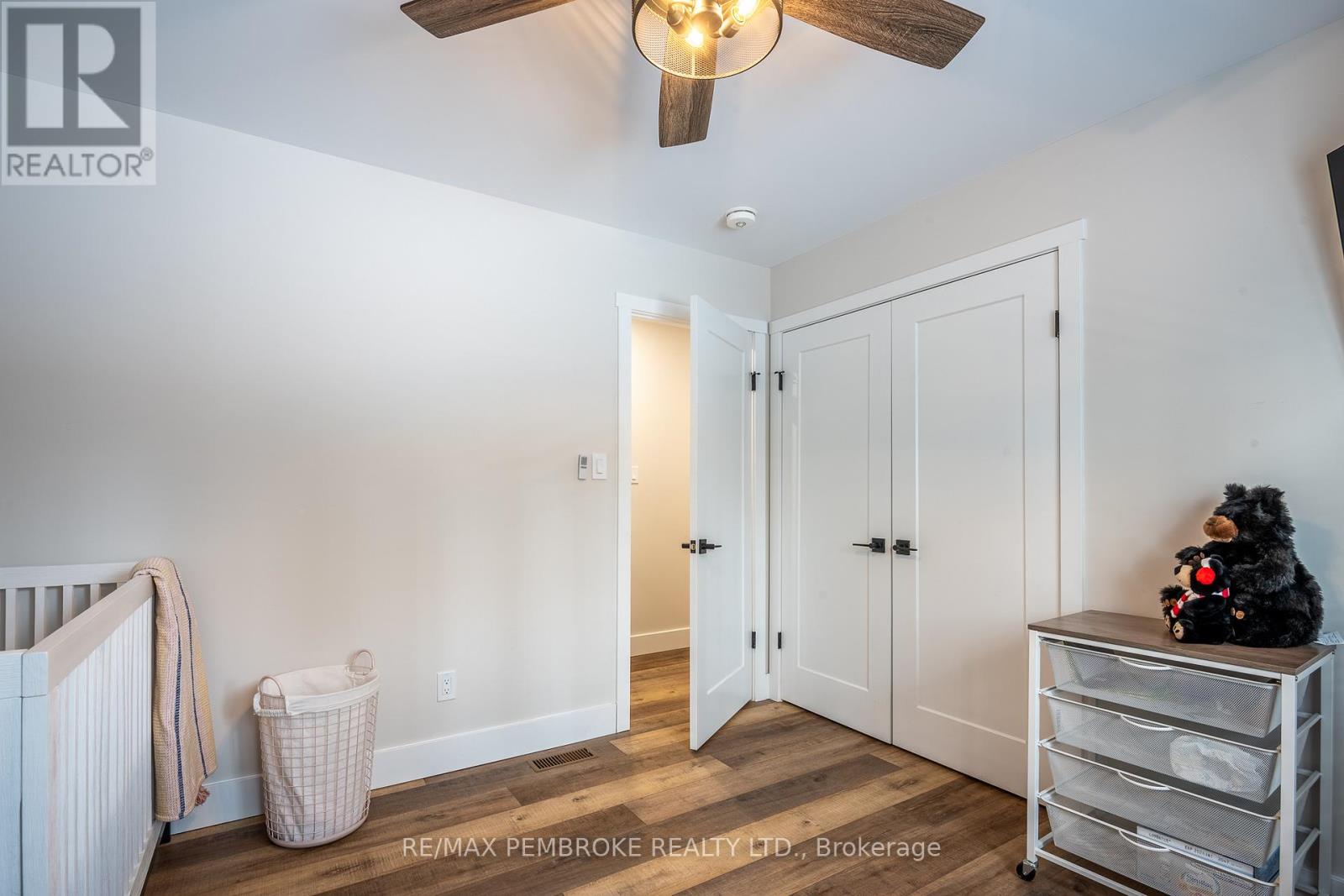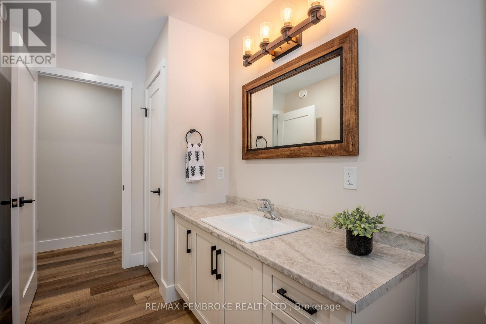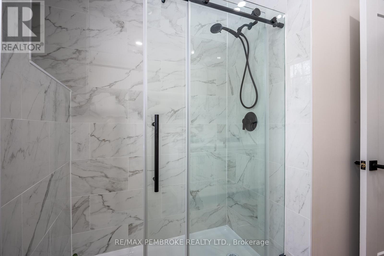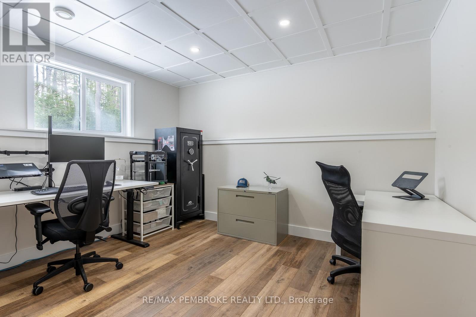 Beautifully appointed raised bungalow built by respected local builder, Dugan Hawkins, at 13 Rantz Road, where privacy, space, and convenience come together in one of Petawawa's most desirable upscale rural settings. Nestled on a 1.66-acre wooded lot, a peaceful retreat surrounded by nature while remaining close to town amenities. Outdoor enthusiasts will appreciate the quick drive to the boat launch at beautiful Black Bay on the Petawawa River. Vaulted ceilings, abundance of south-facing windows, patio doors all provide for great amounts of natural light to pour through the main living spaces. At the heart of the home is a remarkably spacious kitchen, it's U-shaped layout offers extensive modern cabinetry and miles of granite countertops, the long peninsula with overhang provides the perfect gathering place for casual meals, morning coffee, or conversation while meals are prepared. All four bedrooms offer comfortable proportions and a sense of space, ensuring everyone has room to unwind. Primary suite easily accommodates a king-size bed, features a walk-in closet along with a well-appointed 3-piece ensuite with shower. Fully finished lower level features a spacious recroom, anchored by a cozy wood stove and offers endless possibilities for relaxation & entertaining. Two of the four generously sized bedrooms are located on this level, including one currently serving as an ideal home office. Newly completed third bathroom showcases a striking glass-enclosed tile shower with elegant, spa-inspired finishes. Step outside to the expansive 16'x30' deck, accessed directly from the dining room, perfect for alfresco dining or relaxing while overlooking the tranquil wooded backyard and the lush green lawn with irrigation system. Attached 28'x30' garage is a standout feature-fully insulated and heated with its own propane furnace, creating a comfortable year-round workshop or hobby space. Grown-up Toy parking is plentiful as the driveway extends beyond the rear of garage! (id:64974)