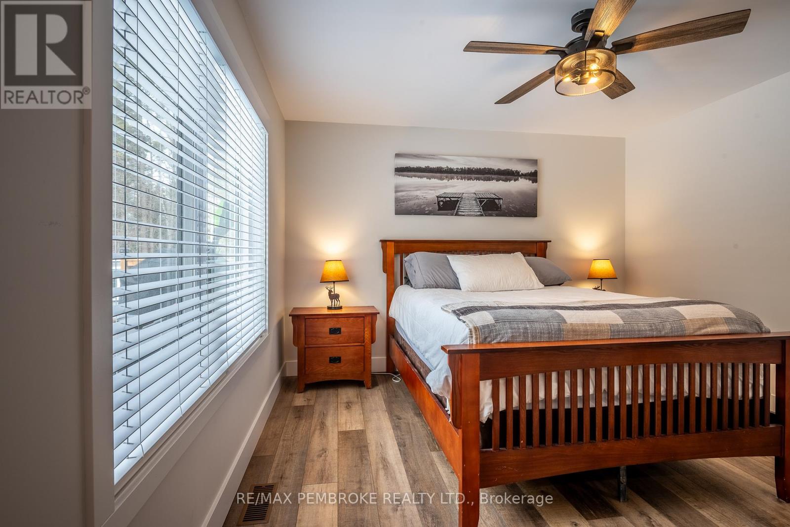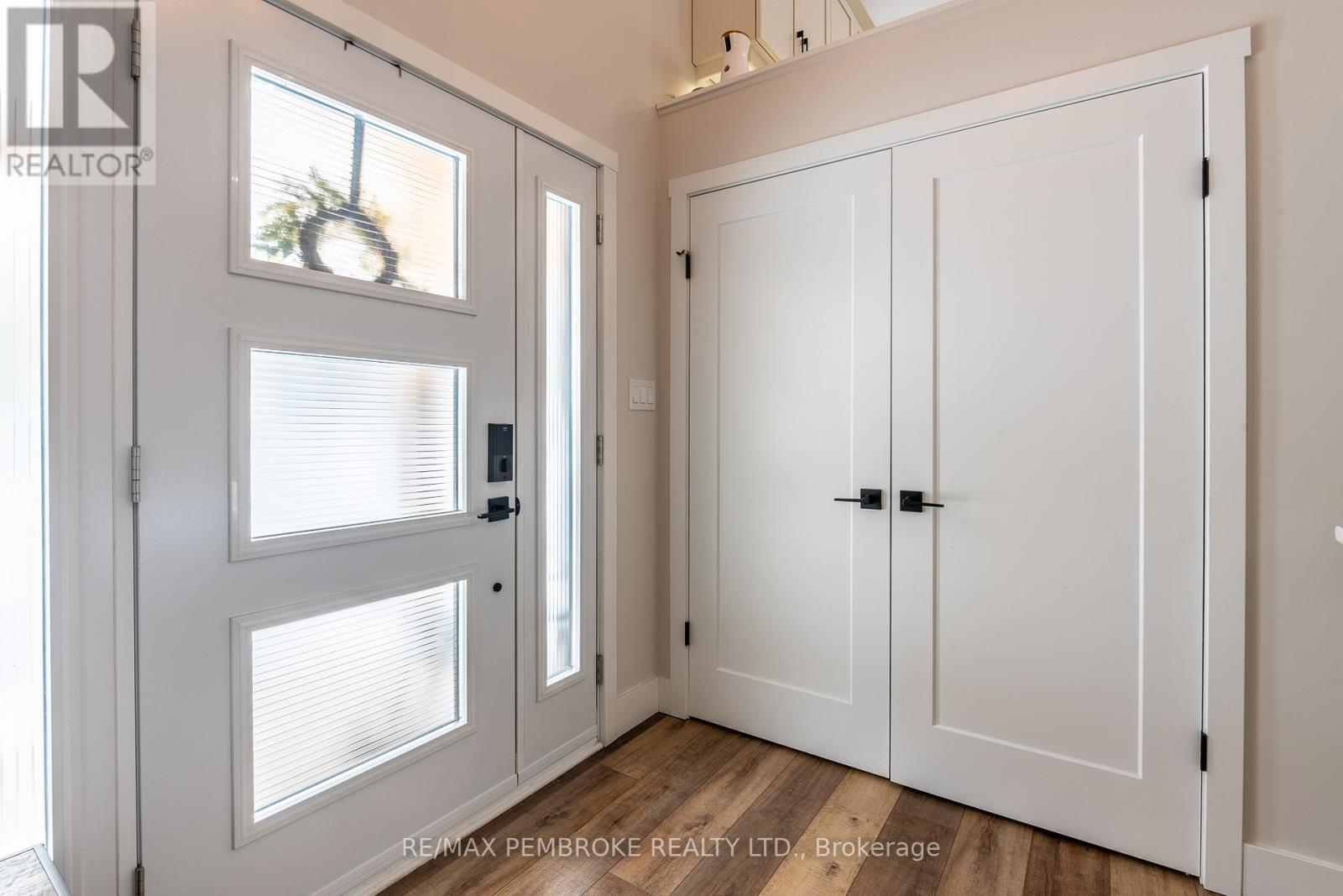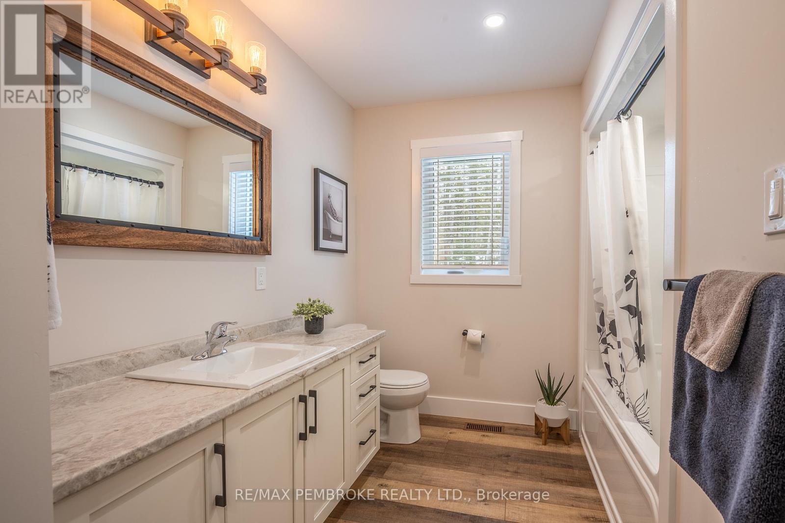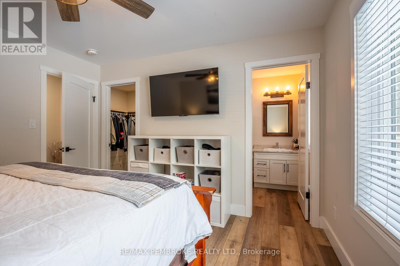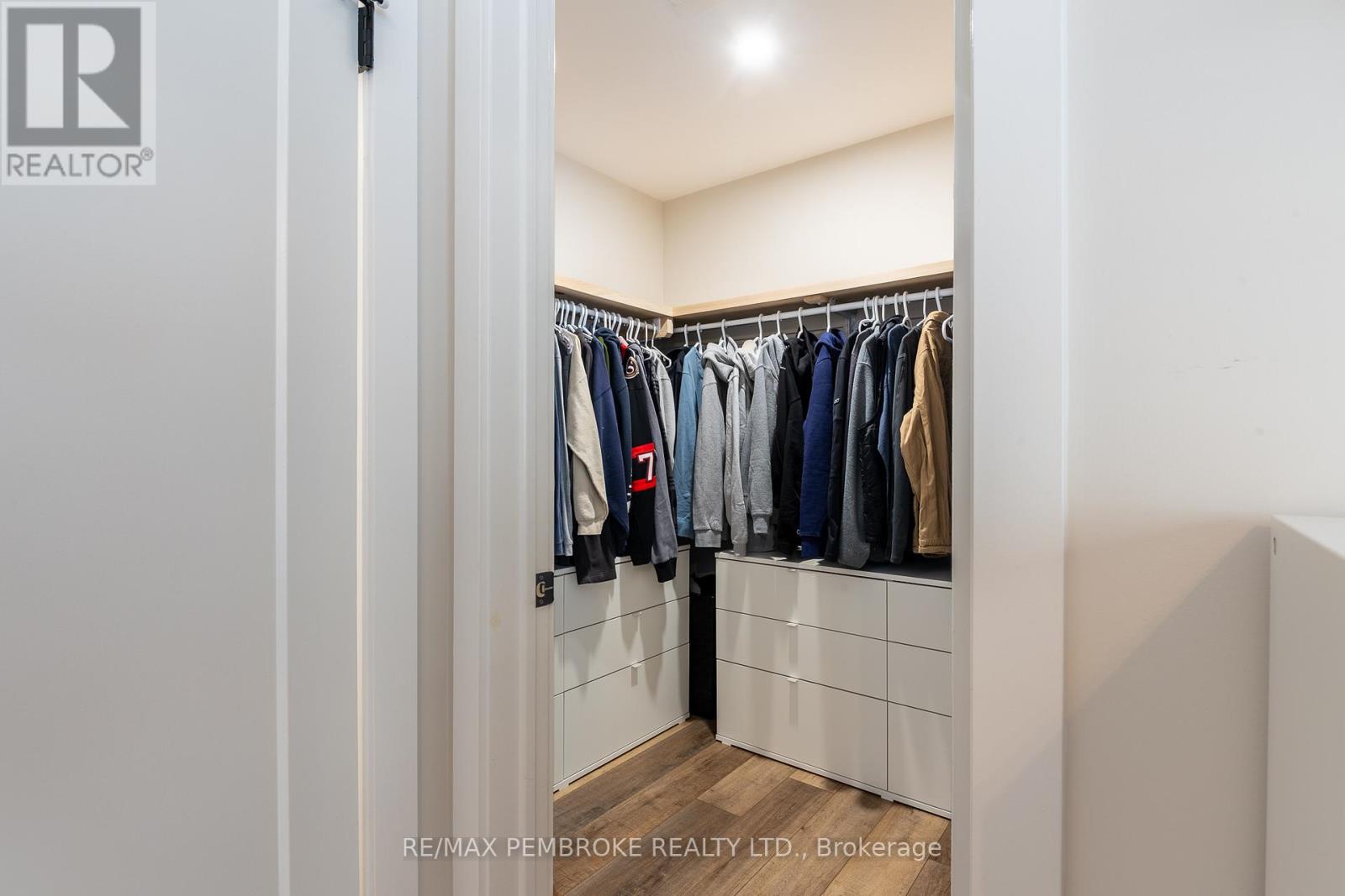 Beautifully appointed raised bungalow built by respected local builder, Dugan Hawkins, at 13 Rantz Road, where privacy, space, and convenience come together in one of Petawawa's most desirable upscale rural settings. Nestled on a 1.66-acre wooded lot, a peaceful retreat surrounded by nature while remaining close to town amenities. Outdoor enthusiasts will appreciate the quick drive to the boat launch at beautiful Black Bay on the Petawawa River. Vaulted ceilings, abundance of south-facing windows, patio doors all provide for great amounts of natural light to pour through the main living spaces. At the heart of the home is a remarkably spacious kitchen, it's U-shaped layout offers extensive modern cabinetry and miles of granite countertops, the long peninsula with overhang provides the perfect gathering place for casual meals, morning coffee, or conversation while meals are prepared. All four bedrooms offer comfortable proportions and a sense of space, ensuring everyone has room to unwind. Primary suite easily accommodates a king-size bed, features a walk-in closet along with a well-appointed 3-piece ensuite with shower. Fully finished lower level features a spacious recroom, anchored by a cozy wood stove and offers endless possibilities for relaxation & entertaining. Two of the four generously sized bedrooms are located on this level, including one currently serving as an ideal home office. Newly completed third bathroom showcases a striking glass-enclosed tile shower with elegant, spa-inspired finishes. Step outside to the expansive 16'x30' deck, accessed directly from the dining room, perfect for alfresco dining or relaxing while overlooking the tranquil wooded backyard and the lush green lawn with irrigation system. Attached 28'x30' garage is a standout feature-fully insulated and heated with its own propane furnace, creating a comfortable year-round workshop or hobby space. Grown-up Toy parking is plentiful as the driveway extends beyond the rear of garage! (id:64974)