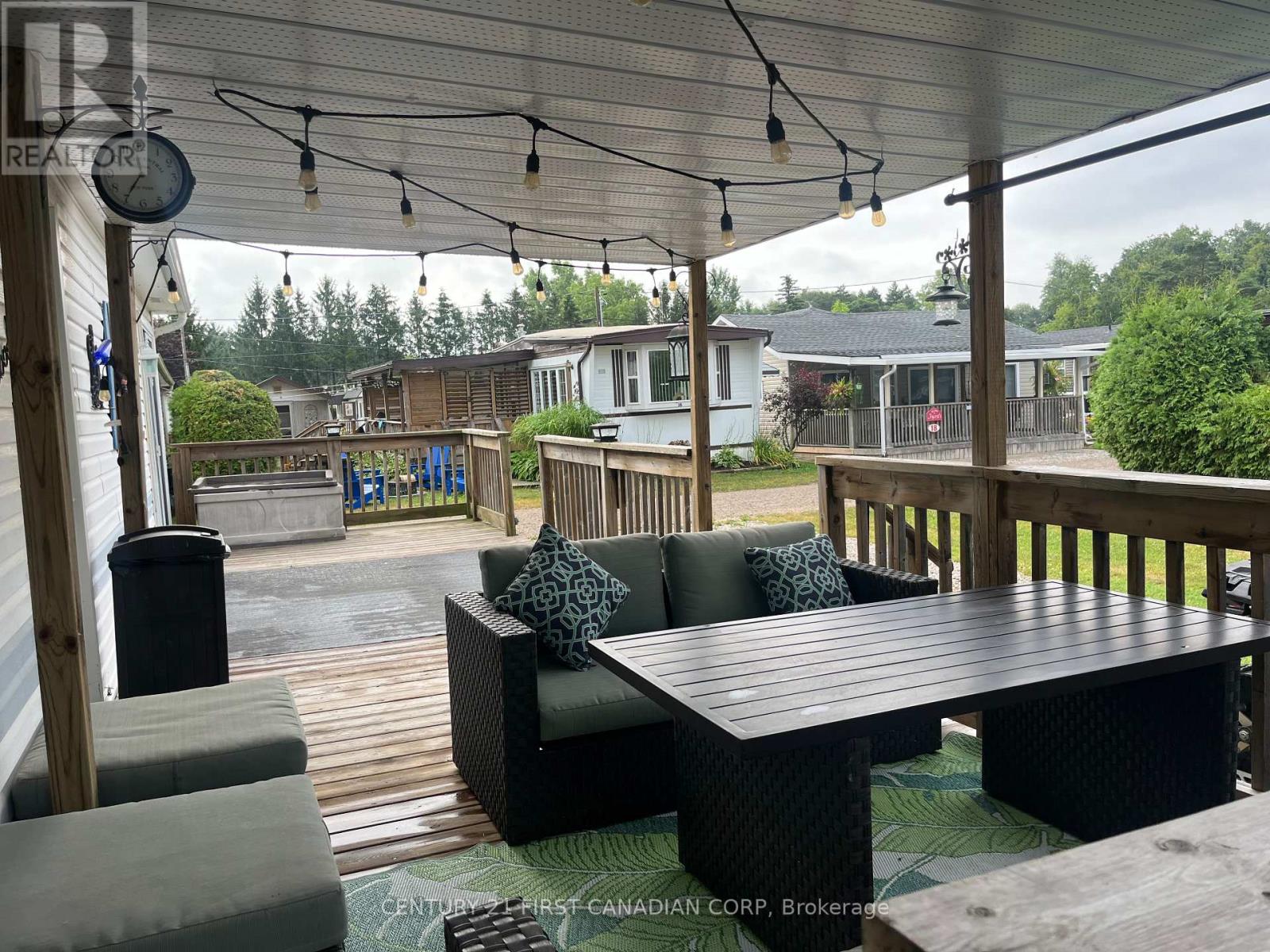 Dreaming of a beachside getaway or the perfect spot to relax in retirement? Location is key and this gem is just minutes from Grand Bend and Bayfield, offering an affordable escape only steps from a beautiful private beach. This 2-bedroom property is located in a resident-owned community providing mobile home and park model sites and services combining comfort, convenience, and a friendly atmosphere. Inside, you'll love the open-concept family room and kitchenette with bright windows, fresh paint, new flooring, and updated cabinets and countertops. Carpet-free and thoughtfully designed with plenty of storage and a full bathroom. Step outside to enjoy the large deck partially covered for shade and open to the sun for relaxing afternoons. The property also features a storage shed, firepit area, and ample parking. Currently used as a 3-season retreat, year-round use is possible. Seasonal Fee: $2002.46 | Water Fee: $70 (seasonal) | Taxes: $173.06 (2025 ) | Annual Septic Upgrade: $1,500/year for 8 years (3 years paid). Bonus move in ready with all furniture included. (id:64974)