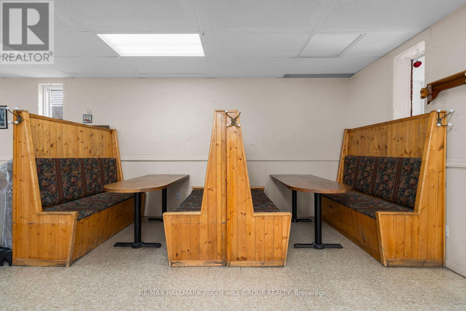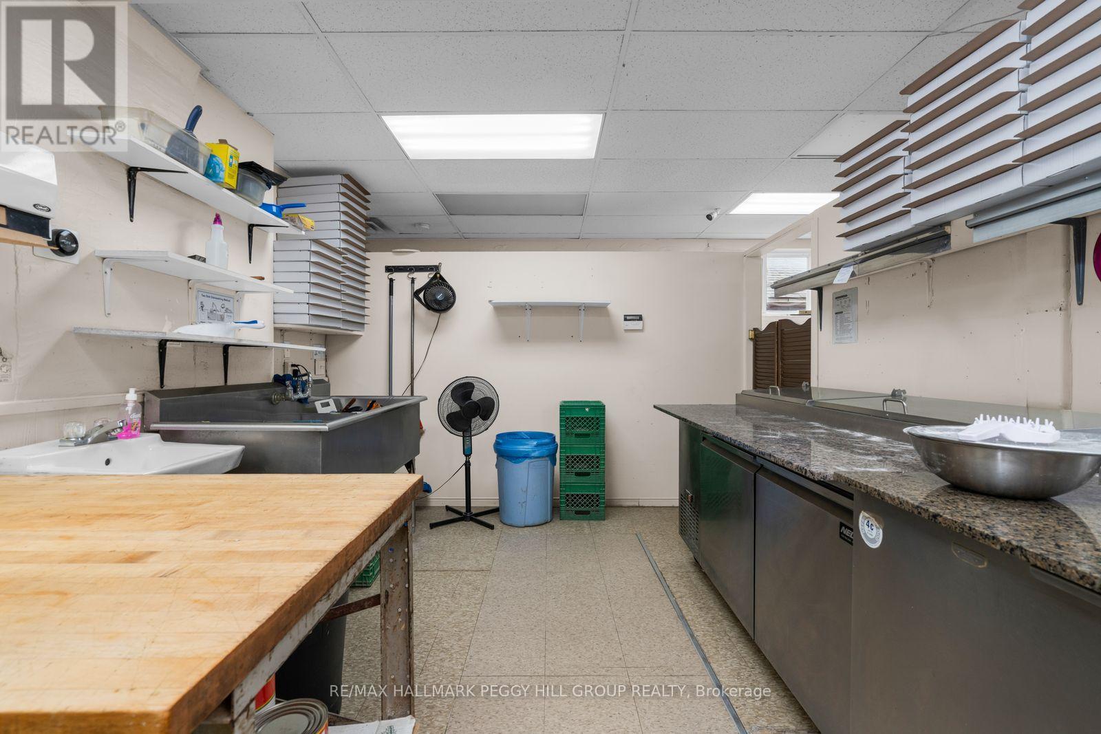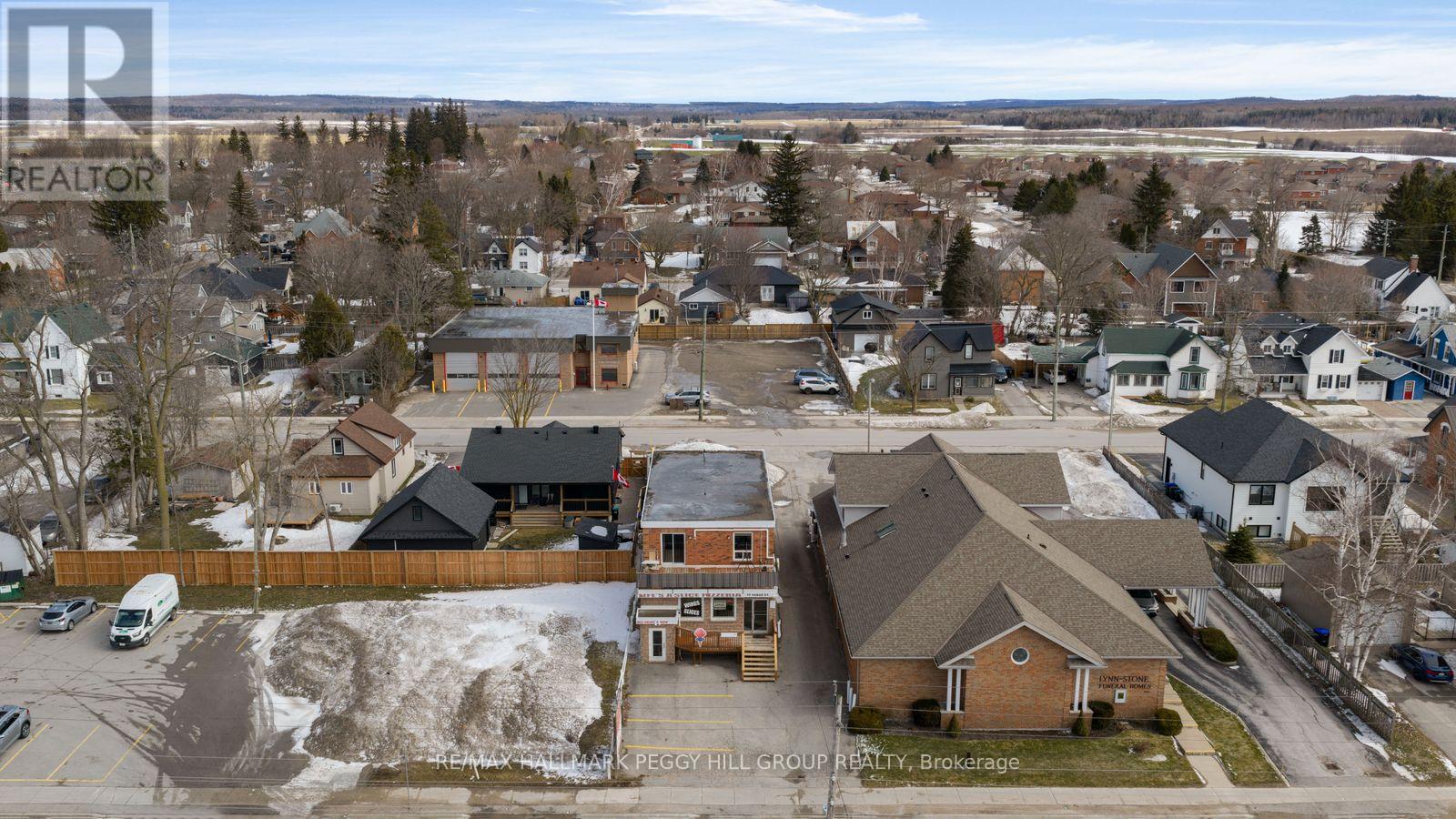 FLEXIBLE MIXED-USE BUILDING WITH DOWNTOWN EXPOSURE, FULLY EQUIPPED COMMERCIAL SPACE, & UPPER LIVING QUARTERS! Positioned in the heart of downtown Elmvale, this mixed-use commercial building presents a strategic opportunity for investors and business owners seeking visibility, flexibility, and rental potential in a prominent downtown location. Set along a well-travelled corridor, this property benefits from steady local traffic, seasonal cottage country flow, and two-street access. CG zoning opens the door to a range of permitted uses, including restaurant or take-out, bakeshop, retail, personal service, office, clinic, and more. The main level, previously operated as a successful pizza shop, features a commercial kitchen with included equipment, multiple dining areas with generous seating space, and two washrooms. Upstairs, spacious residential quarters with two bedrooms, one full bathroom, and a private deck create flexibility for owner occupancy or future rental use. A finished basement adds even more usable space with a den, office area, extensive storage, and two bathrooms, while parking for 12 vehicles, three hot water tanks, multiple furnaces, and 400 amp service further strengthen the long-term value of the property. This is a smart downtown Elmvale opportunity for investors and business owners seeking a well-positioned property with commercial presence and residential versatility. (id:64974)