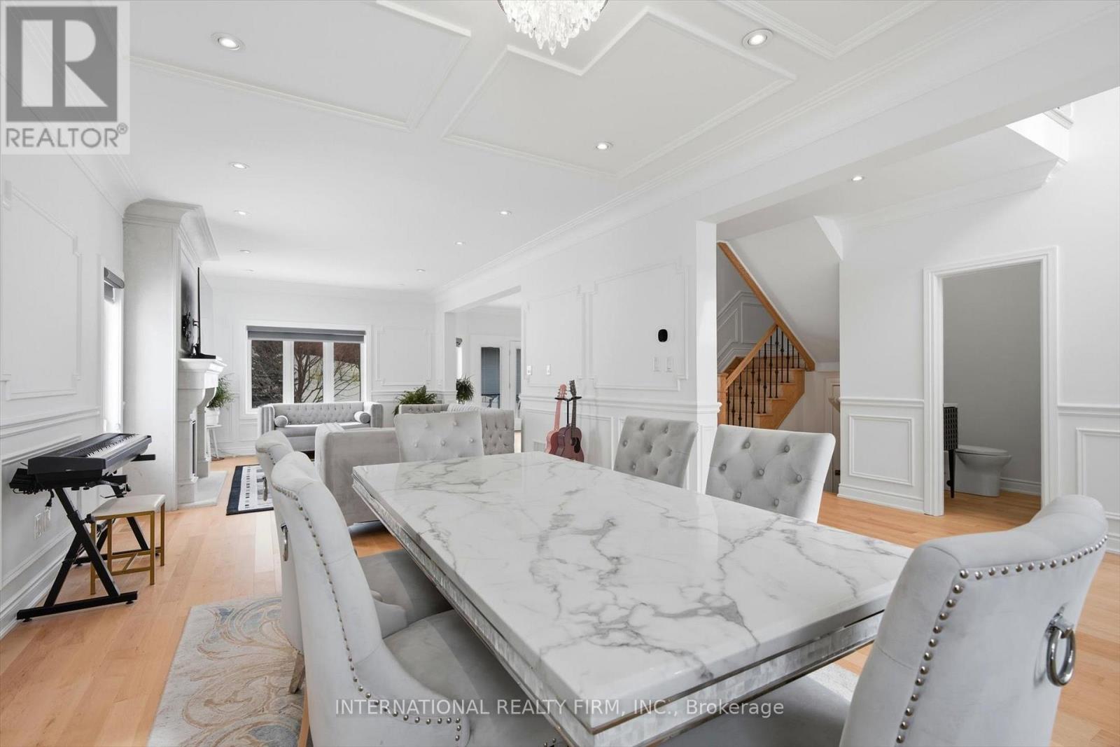 Extraordinary executive estate, gracefully set on approximately 1.5 acres of impeccably landscaped grounds. A rare offering, this distinguished two-storey residence masterfully blends timeless architectural elegance with refined modern luxury. From the moment you enter, you are greeted by naturally bright space, soaring 9-foot ceilings, rich hardwood flooring (2025) throughout, and exquisite detailing including crown moulding, multiple fireplaces, and custom wrought-iron railings. Designed for both grand entertaining and everyday comfort, the chef's kitchen (2025) is a true showpiece, appointed with premium B/I stainless steel appliances, central workstation, boiling water tap and offering seamless access to a spectacular multi-tiered deck-an idyllic setting for alfresco dining, sophisticated gatherings, or serene moments of privacy. The primary suite is a luxurious private retreat, featuring a newly renovated (2025) five-piece spa-inspired ensuite and an expansive walk-in closet. Adding exceptional value and versatility, the fully self-contained approximately 1,550 sq. ft. 2-bedroom suite offers full kitchen, dining, living, family room with fireplace, a 5-piece bath with in-floor heating , and a two-way access elevator-ideal for a completely independent in-law suite-perfect for multigenerational living or extended guest accommodations without compromise. An elevator provides effortless access between levels, enhancing both convenience and accessibility. Outdoors, the fenced backyard unfolds as a private expansive green space, offering tranquility and seclusion in a prestigious estate setting. This is luxury living at its absolute finest. (id:64974)