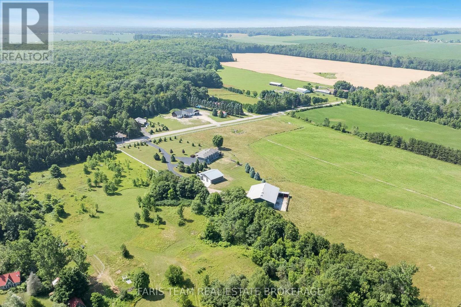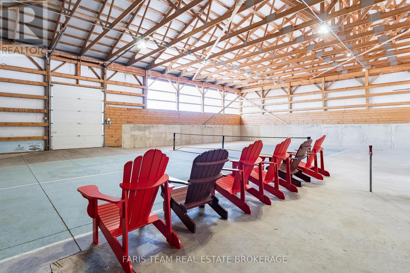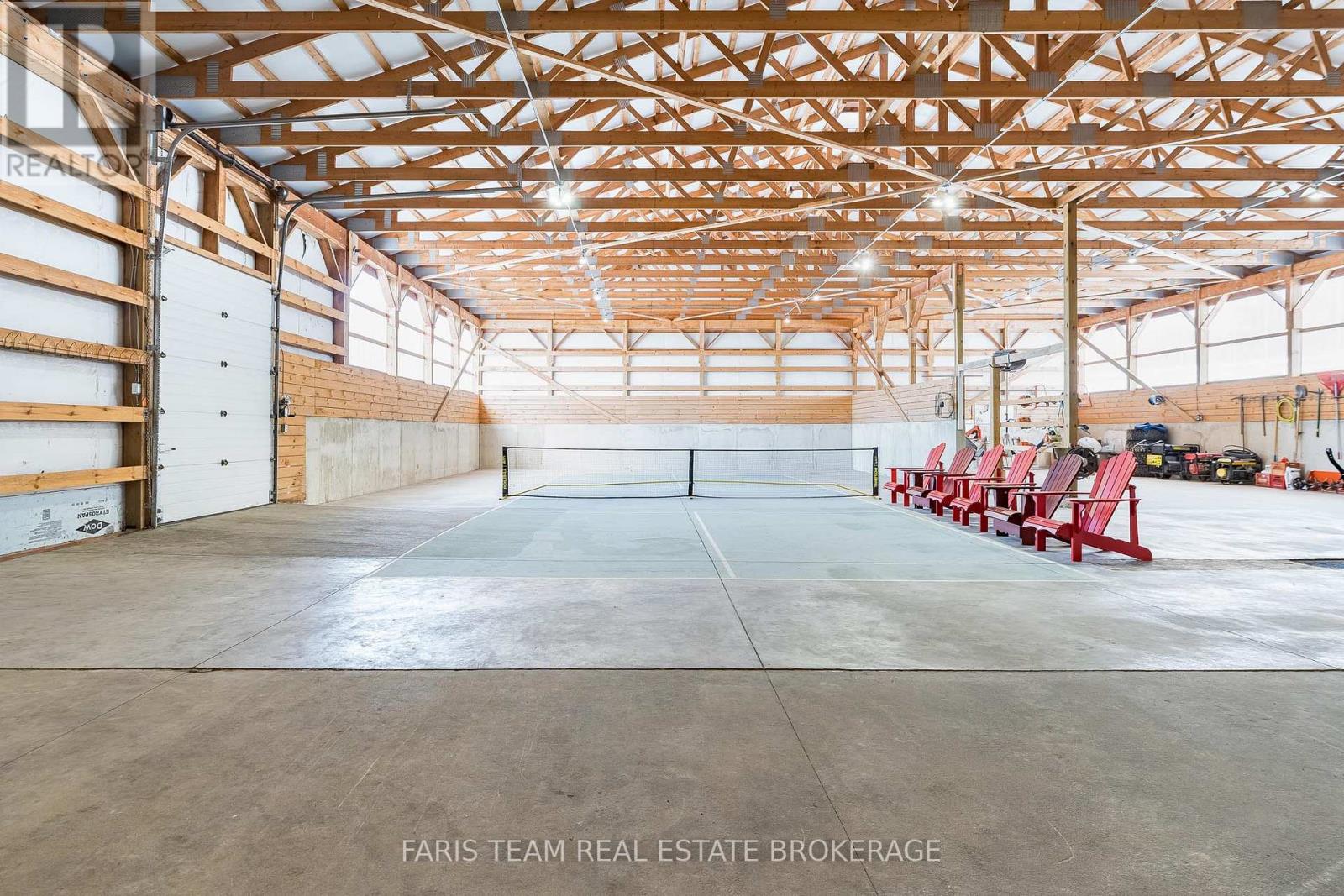 Top 5 Reasons You Will Love This Home: 1) Escape the limitations of the city with this 40-acre private compound in Tiny, offering a scale of infrastructure and lifestyle that is nearly impossible to replicate in today's market. Beyond the gated entry lies a meticulously designed "Live-Work-Play" ecosystem, with unrivaled amenities including a private indoor pickleball court for year-round play and a secluded, rustic log cabin tucked into 3 acres of scenic woodland, surrounded by a dredged pond, perfect for a luxury guest retreat or Airbnb 2) Featuring approximately 2,000 square feet of climate-controlled shop space and toy box, this property includes two massive, engineered, and heated outbuildings (60' x 80' and 40' x 50'), providing substantial space for vehicles, marine fleets, or a home-based enterprise 3) From the sunroom wet bar to the private motocross track, pond-side guest cabin, and 28 acres of arable land, this is a multi-generational playground designed for those who value privacy and recreation 4) Considering current Ontario construction costs for specialized shops and custom luxury homes, this estate represents a multi-million dollar savings in both cost and the typical permitting and construction timeline, alongside zoning that allows for a secondary dwelling, making this an ideal multi-generational family compound or luxury rental investment 5) Enjoy 40-acres of prestige with exceptionally low carrying costs, thanks to optimized agricultural and rural zoning, and a tax bill of only approximately $3,660 per year. (id:64974)