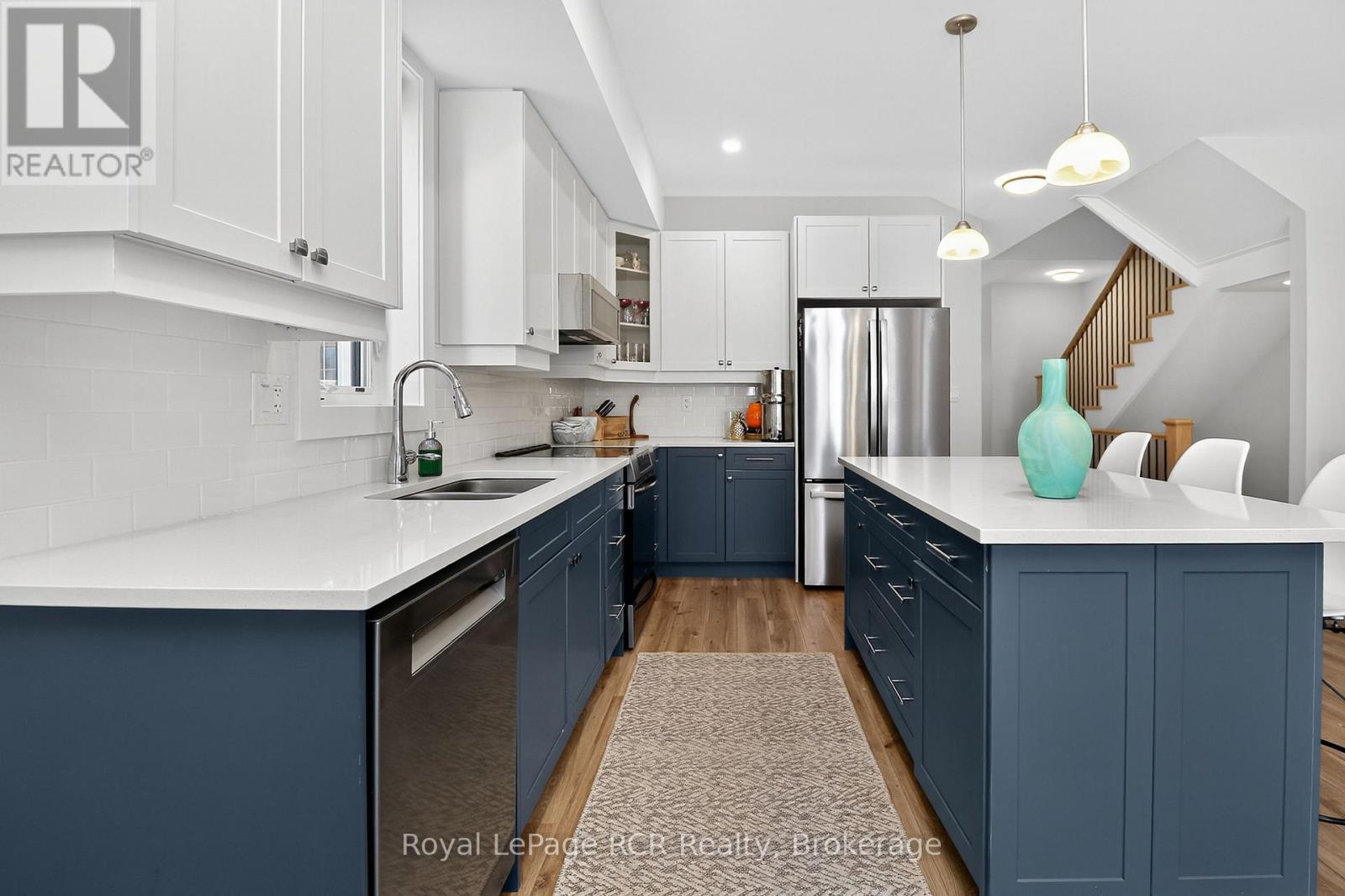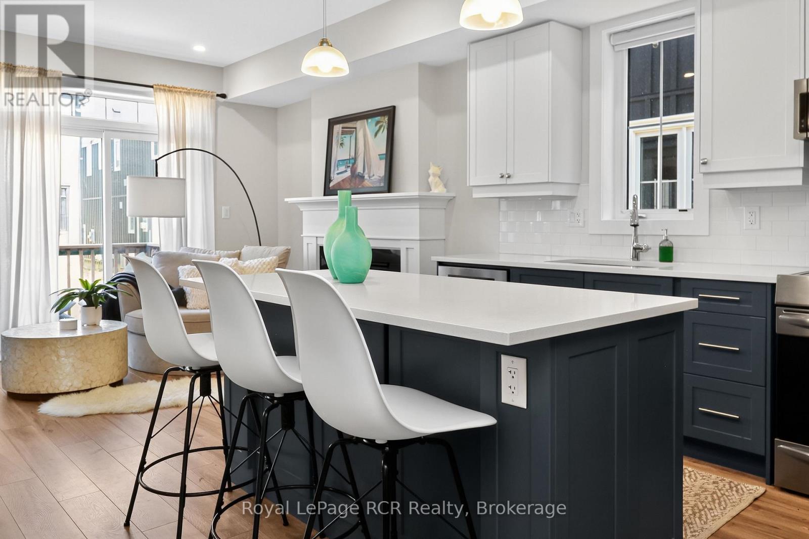 Welcome to refined four-season living in the highly desirable Windfall community! This beautifully upgraded 3-bedroom, 3.5-bath semi-detached home (Mowet model, built in 2022) offers over $22,000 in premium builder upgrades and a seamless blend of style, comfort, and functionality. Step inside to a bright, open-concept main floor designed for modern living. The stunning gourmet kitchen is the heart of the home, featuring high-end stainless steel appliances, a striking two-tone design, quartz countertops, and an oversized sit-up island-perfect for gathering and entertaining. The spacious living and dining areas are filled with natural light, anchored by a cozy gas fireplace, and offer a walkout to the backyard for easy indoor-outdoor living. Upstairs, the generous primary retreat is your private escape, complete with a walk-in closet and a spa-inspired ensuite boasting double sinks, a glass shower, and a relaxing soaker tub. Two additional bedrooms, a full bathroom, and the convenience of upper-level laundry complete this thoughtfully designed level. The fully finished lower level extends your living space with a bright and versatile family room, plenty of windows, and an additional 3-piece bath-ideal for guests, a media room, or a home office. Enjoy exclusive access to The Shed, Windfall's sought-after amenity centre, featuring a community hall, heated outdoor spa pools, fitness room, and sauna. Located just steps to scenic trails, ski lifts at Blue Mountain, and only minutes to the Village and downtown Collingwood, this home offers the ultimate four-season lifestyle. (id:64974)