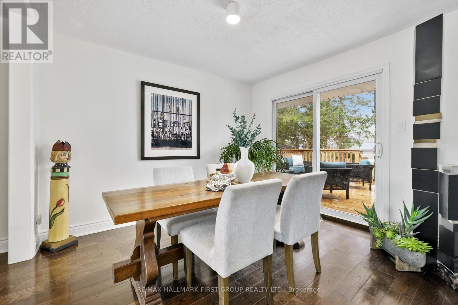 Situated in the desirable hamlet of Grafton, this charming and meticulously maintained bungalow has been thoughtfully designed with comfort and serenity in mind. An accessible and bright front entrance sets the tone for the home's inviting interior. The living room features a timeless design, with a large front window and a carpet-free layout that flows seamlessly into the dining room. This space is ideal for hosting family gatherings and entertaining, complete with a walkout that extends your living area outdoors, creating the perfect setting for alfresco dining. The well-appointed kitchen is both functional and inviting, offering matching appliances, a large window over the double sink, and ample cabinet space for everyday living. The main level includes a sun-soaked primary bedroom, a full bathroom, and a second bedroom, offering comfortable, convenient living. The lower level adds versatility with a cozy recreation room featuring a stove-style fireplace, a spacious guest bedroom with an office nook, a finished laundry room, and ample storage. Plans are available for an additional bathroom, allowing you to further customize the space to suit your needs. Outdoors, the property unfolds into a private natural retreat. A sprawling deck is surrounded by raised garden beds and perennial gardens, with mature greenery, including many species of old-growth trees, creating a peaceful, established setting. A tranquil pond and a well-flowing seasonal creek enhance the landscape, offering a picturesque backdrop and a true connection to nature, while ample green space provides room to relax or entertain. Located just moments from local amenities, close to schools and churches, and down the road from St Anne's, this home also offers easy access to Highway 401 and Highway 2, making it an ideal place to put down roots in a peaceful yet connected community. (id:64974)