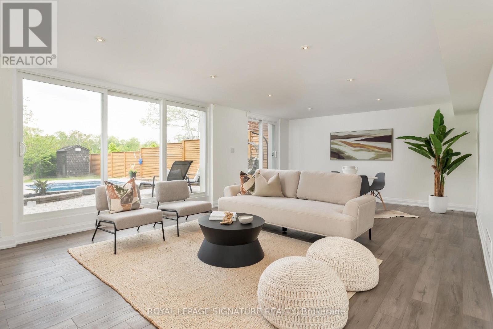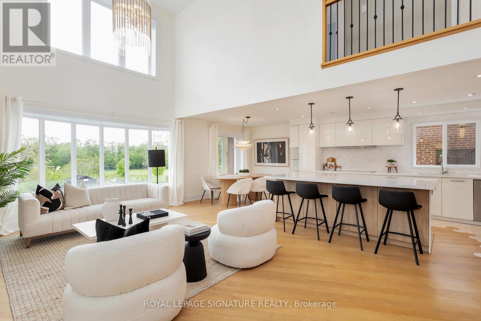 Life's better on Saturn! Why settle for ordinary when you can have a house that is out of this world? This 5 bed, 5 bath custom built home is perfectly situated on a 74 X164 lot backing on to green space,with a solar heated, salt water swimming pool, turfed Playground, and 2 outdoor patios with composite flooring, all surrounded by greenery and privacy (and a cherry tree that you can pick right from your patio seat!). Indoors you will be greeted by a nearly 19ft ceiling in the great room. Windows on every wall ensure this space is sun drenched. The kitchen is a custom German Leicht build, with smart storage solutions, and possesses a steam oven and In sinkerator. Diagonally laid hardwood playfully transitions to a modern hexagon tile in the kitchen. Gas and electric heated fireplaces will keep you warm in the winter months, but if that's not enough, the home has a Sauna with health-benefitting infrared or traditional rock heating. A main floor bedroom with ensuite is perfect for anyone with mobility issues or for guest. Upstairs, the primary bedroom is tucked away on its own floor. The Garage offers two parking spots, epoxy floor & EV Charger. W/O Basement, 3 under deck storage. So much more! 20 minutes to DT core, 10 minutes to Pearson International Airport. W/in coveted St Clements Catchment area. Walk to Etobicoke Farmers Market! (id:64974)