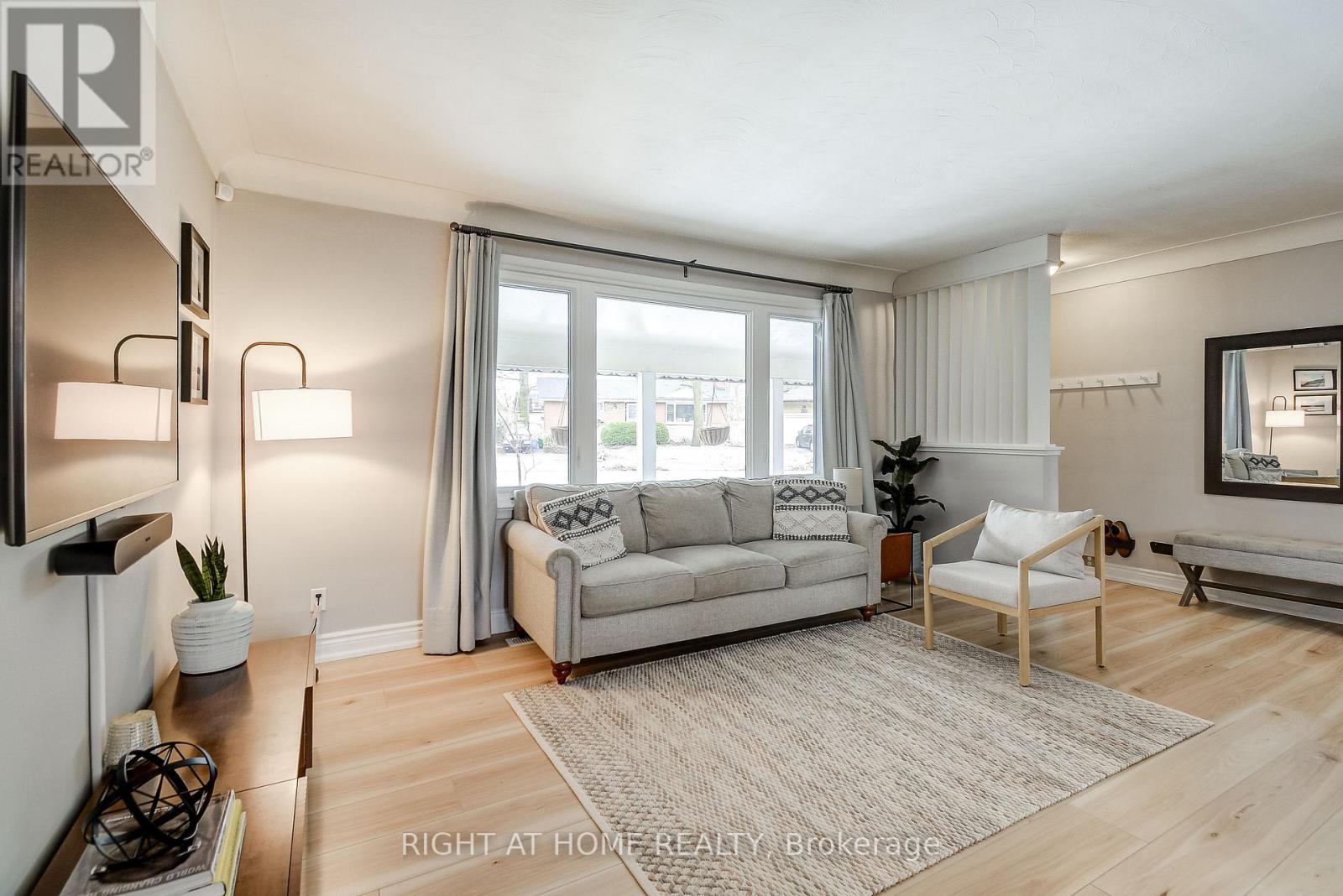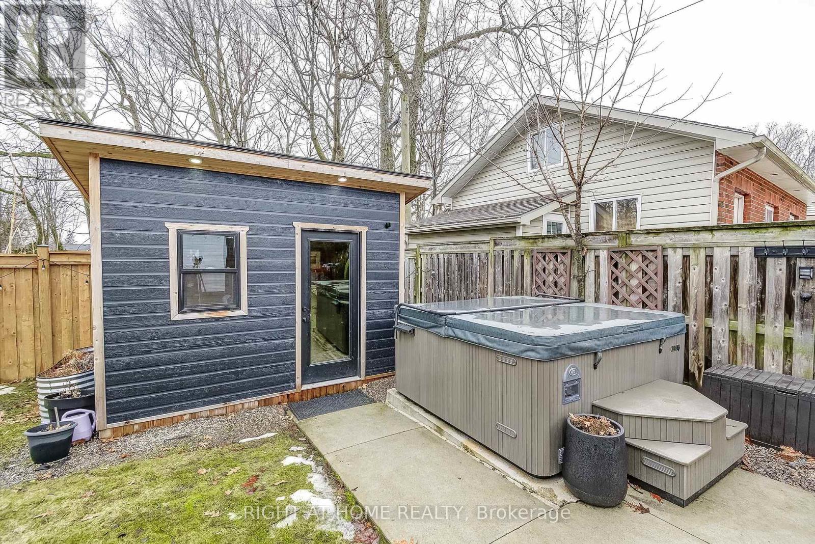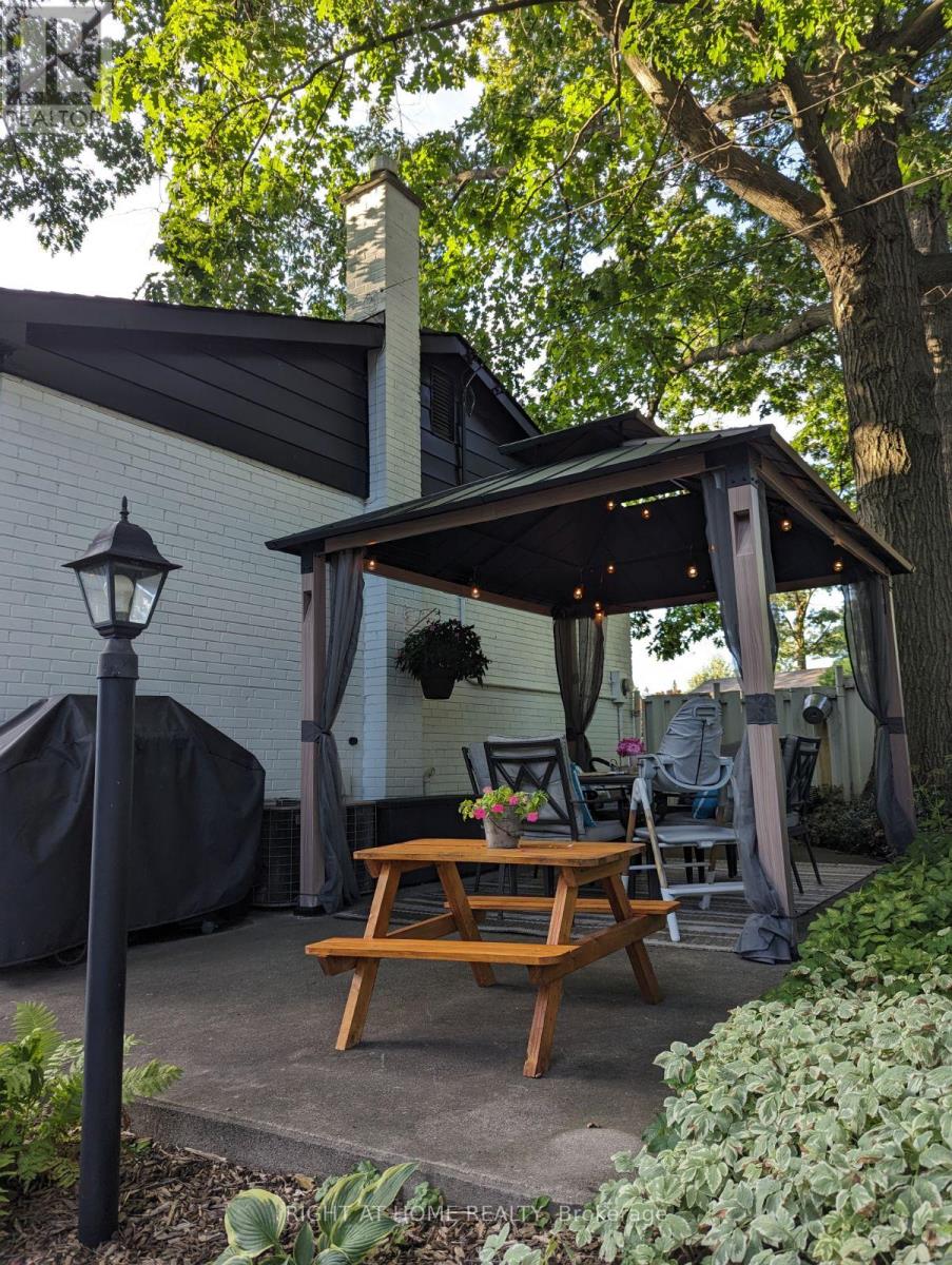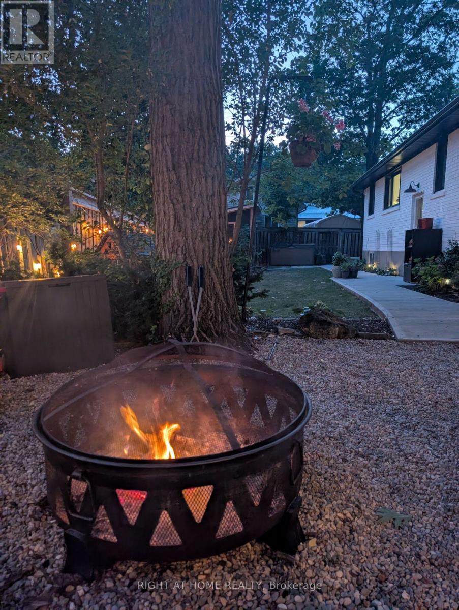 Welcome to 1300 Princeton Crescent-a beautifully updated bungalow on an expansive corner lot in Burlington's sought-after Mountainside neighbourhood. Surrounded by tall mature oak trees, the property offers a private, cottage-like backyard retreat just minutes from parks, schools, highways, & the Burlington GO. Thoughtfully updated throughout, the stunning kitchen renovated in 2023 anchors the main level, featuring shaker-style cabinetry with crown moulding & under-cabinet lighting, Zellige-inspired ceramic subway tile, quartz countertops, an oversized undermount sink with accessories, matte black fixtures, and a breakfast bar overlooking the tree-lined backyard.The main floor offers three bedrooms and an updated 4-piece bathroom ('25). The finished basement expands the living space with a large rec room, 4th BR, 3-pc Bath, and generous storage. Recent upgrades include luxury vinyl plank flooring throughout; all new main floor windows including 3 large canopy windows ('2023); furnace ('24); Electrolux washer & dryer ('25); foundation waterproofing with sump pump (2018- 17 Years left on 25 yr warranty); sewer drain replacement with backwater valve ('20); roof shingles, roof sheathing & eavestroughs ('22); repaved driveway ('22); and backyard concrete walkway ('20).The fully fenced backyard is designed for outdoor living and entertaining, featuring a Muskoka-inspired fire pit area, covered gazebo, & concrete pad with electrical waiting to install your hot tub. A rare 86 sq. ft. fully insulated 4-season garden office/studio constructed in 2023 and finished in western red cedar with space heater and built-in air conditioning offers the perfect space for a home office, studio, or quiet retreat & even has a kids rock wall on one side! Lush perennial gardens, an in-ground irrigation system, and a private double driveway with parking for up to 6 cars complete this exceptional property. A rare opportunity to enjoy peaceful, cottage-inspired living in the heart of the city. (id:64974)