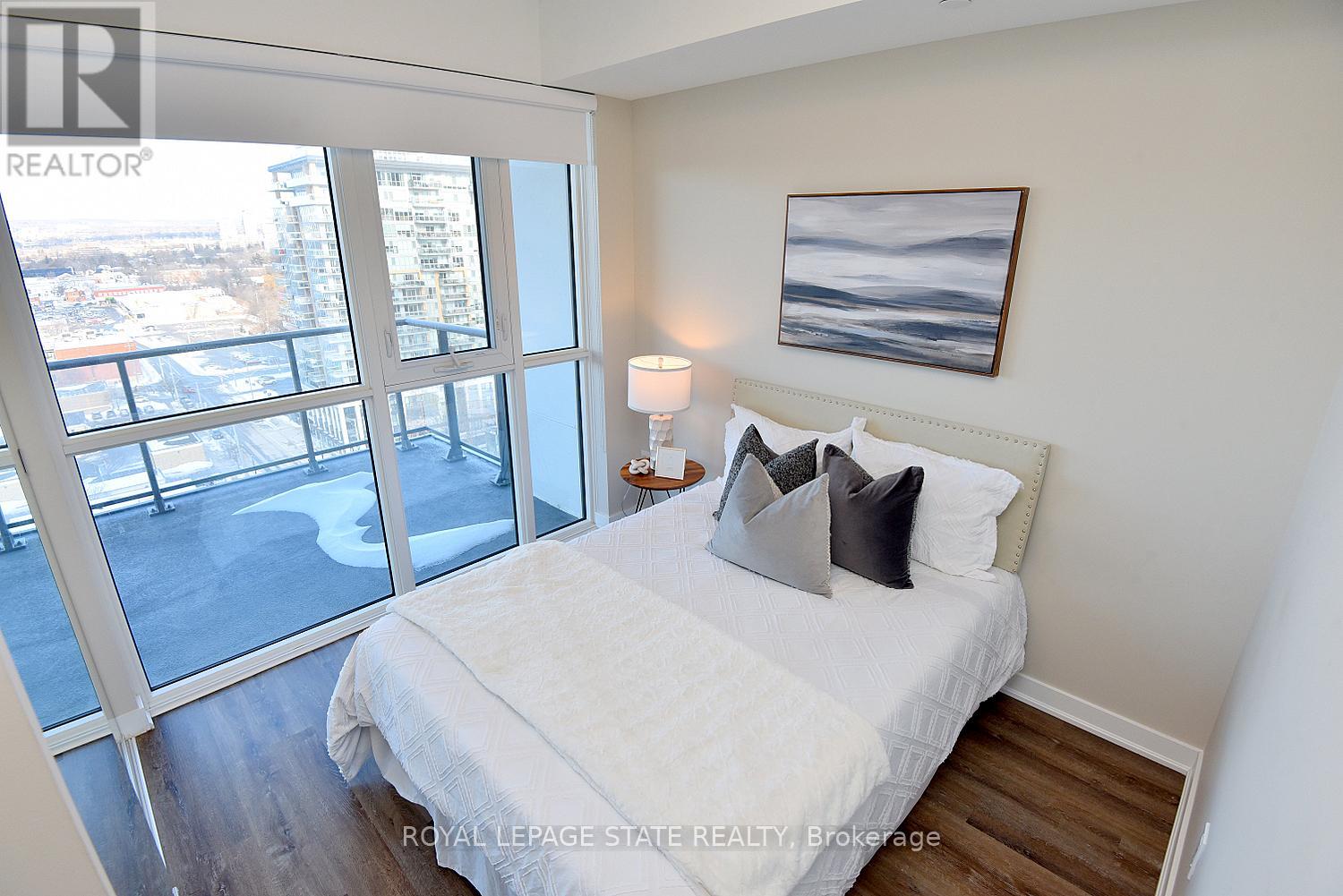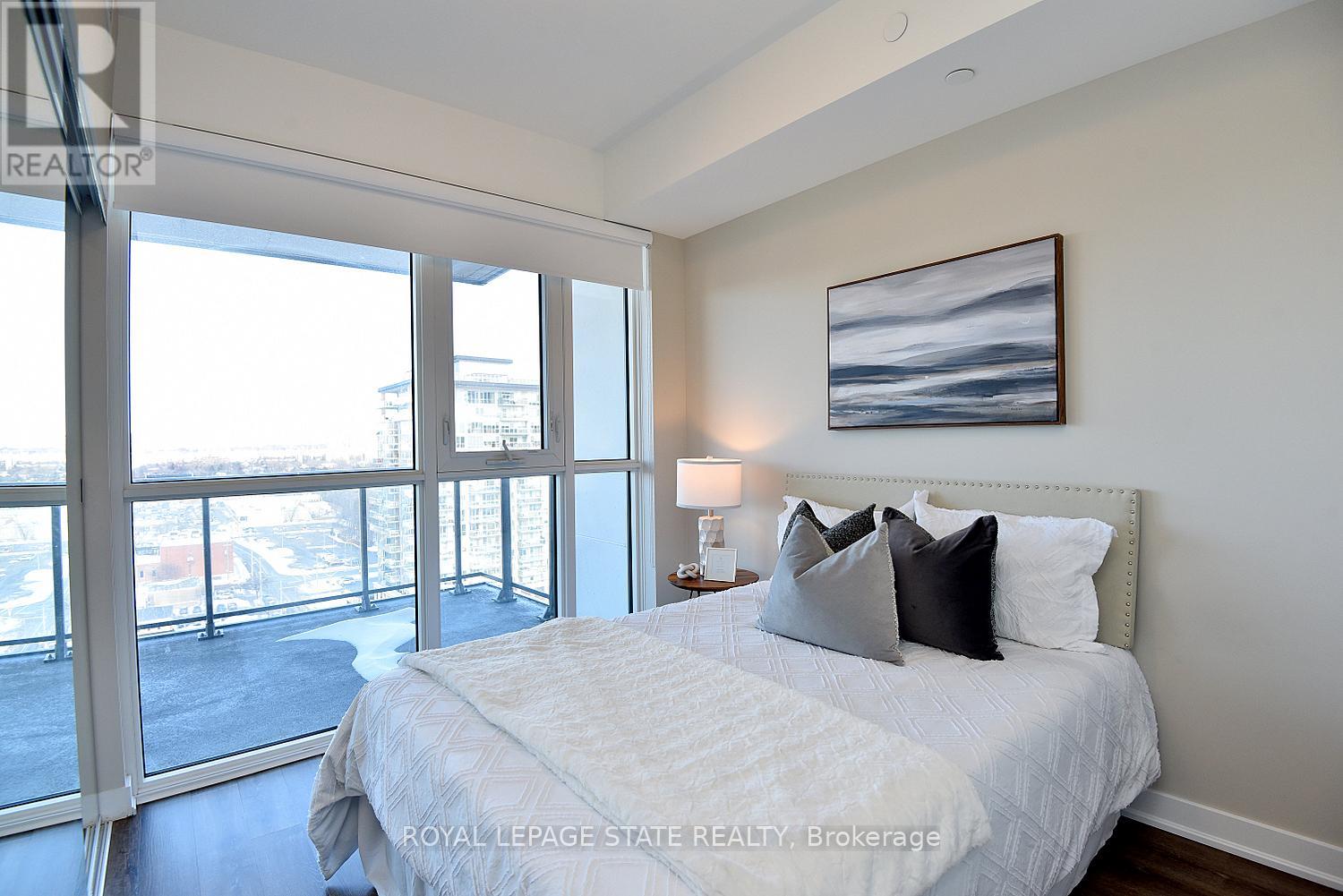 A unique opportunity awaits you at the Gallery Condos & Lofts in the heart of downtown Burlington! This 2-Bedroom, 2-full Bath 814 sq ft Sofia model has many features including Designer series wide-plank laminate Floors, a gorgeous Kitchen with Euro-style, 2 tone Cabinets, soft close doors/drawers, Stainless Steel Appliances, Quartz Countertop & under-mount double Sink! Sliding doors lead to a 160 sq ft covered Balcony with north exposure and breathtaking Views of the Escarpment! The spacious primary Bedroom enjoys a stylish Ensuite with glass door shower and handy, private, in-suite Laundry! The sundrenched second Bedroom has floor to ceiling Windows, with captivating views, and is located right next to the main 4-piece Bathroom with deep soaker tub! You will appreciate the 24-hour Concierge and the 14,000 sq ft of indoor and outdoor amenity space, featuring a Party room, Lounge, Games area, indoor Pool, Fitness studio, indoor/outdoor Yoga studio, indoor Bike storage area, Guest suite, and a Rooftop Terrace with BBQ stations and Lounge seating with Scenic views of Lake Ontario! This contemporary 22-storey building is located across from Burlington's City Hall and has easy access to Spencer Smith Park, Retail spaces, Restaurants, Shops, Public transit and the QEW. A storage Locker and underground Parking spot completes the package! Put this one on your "must see" list! (id:64974)