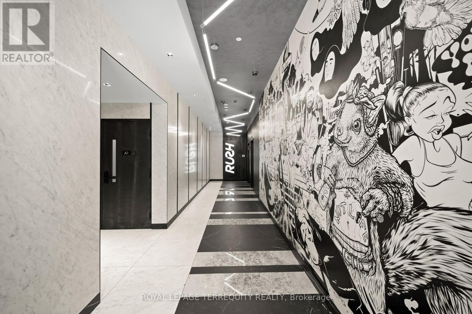 Welcome to Rush Condos - in the heart of Queen St West and Graffiti Alley, Toronto's ultimate playground for art, culture, and nightlife. This 3 + den, 2 bath suite blends style and functionality. The open-concept living and dining area is spacious and flooded with natural light from floor-to-ceiling windows, opening onto a balcony perfect for morning coffee or soaking up the sun. The kitchen is designed for effortless entertaining, featuring a custom center island, built-in appliances, and ample storage. The primary bedroom offers a spa-inspired 3-piece ensuite and floor-to-ceiling windows. Two additional bedrooms are generously sized, with closets, and one has a private balcony showcasing epic Downtown TO views. Den is perfectly sized for your WFH setup/creative studio. Amenities are next-level: 24-hour concierge, fitness centre, indoor rock climbing, outdoor terrace, party room, yoga studio, pet spa, and more - all in a small boutique building, so no long elevator waits, just style and convenience at your doorstep. With a walk score of 100/100/99, everything is literally at your doorstep. Hop on the TTC, grab a latte at a local café/bakery, stroll to St. Andrew's Playground Park, hit the best restaurants & bistros - Toronto's best is all within your reach. (id:64974)