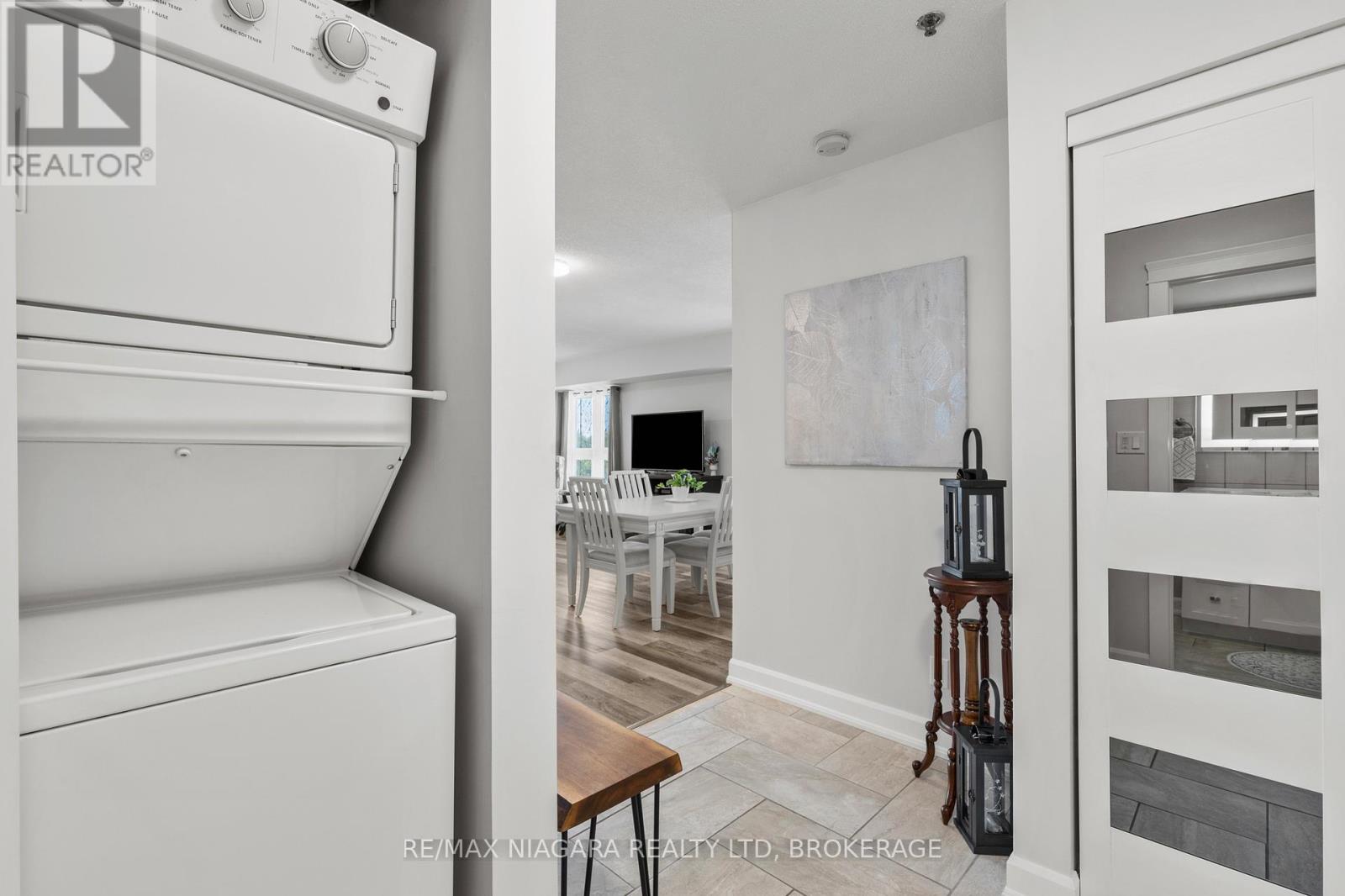 Seaway Pointe Condo in Welland on the Canal! Fully updated two bedroom corner unit in the desirable Seaway Pointe waterfront condo building right on the old Welland Canal with walking paths and a dock to use for non-motorized water sports! Walk downtown, to the market, restaurants or music events held along the Canal. Nothing to do but move in and enjoy! All doors, trim, flooring has been replaced in this unit along with a completely renovated full kitchen with stone counters, classic farm sink, soft close cupboards and drawers, kitchen pantry, undercounter lighting, high end appliances and large 12" x 24" tile floors that run from the kitchen through the foyer and into the 4 piece bathroom, which has a jetted tub with lights and music to relax in as well as an upgraded bidet, stone counter and vanity with tile floors. Modern lights with fans throughout the unit have been upgraded as well. The principle bedroom is very spacious with large window and closet with a second bedroom with large close and window as well. The kitchen, eating area and living area are all open and full of light with all the windows and access to the covered balcony to enjoy all year long! This unit has one underground parking spot in a prime location near the elevator. This condo has a large party room with full kitchen and lots of activities organized every month. This is a prime location with close proximity to every thing you need with the Hospital nearby and easy highway access. This is easy living at it's finest! (id:64974)