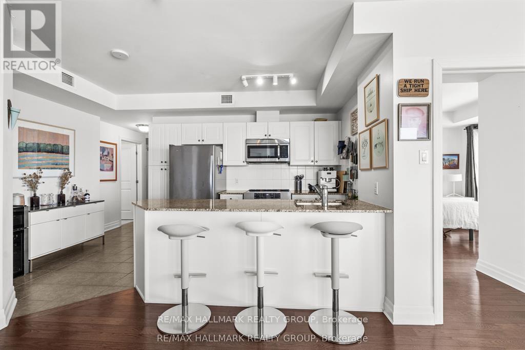Welcome to La Tiffani II @ 90 Landry Street. STUNNING, 2 bedroom/2 FULL bath CORNER unit in trendy Beechwood Village, minutes away to the downtown core and in close proximity to transit, restaurants/cafes, shopping & the River! This beautiful condo features an open concept design & boasts unbelievable panoramic views from all rooms via the floor to ceiling windows. Well designed & upgraded throughout. Open-concept kitchen with granite countertops, high-end Stainless Steel appliances (including induction range) & an abundance of cupboard/cabinet space, all open to the living room - perfect for entertaining! Beautiful gleaming hardwood flooring throughout. The Primary Bedroom features a luxurious 4 piece en-suite bath with granite countertop and a large closet. Main bathroom off front entrance boasts a beautiful shower with glass door and granite countertop. 1 heated underground parking space (with EV charger installed) and storage locker included! Available June 1st. (id:64974)