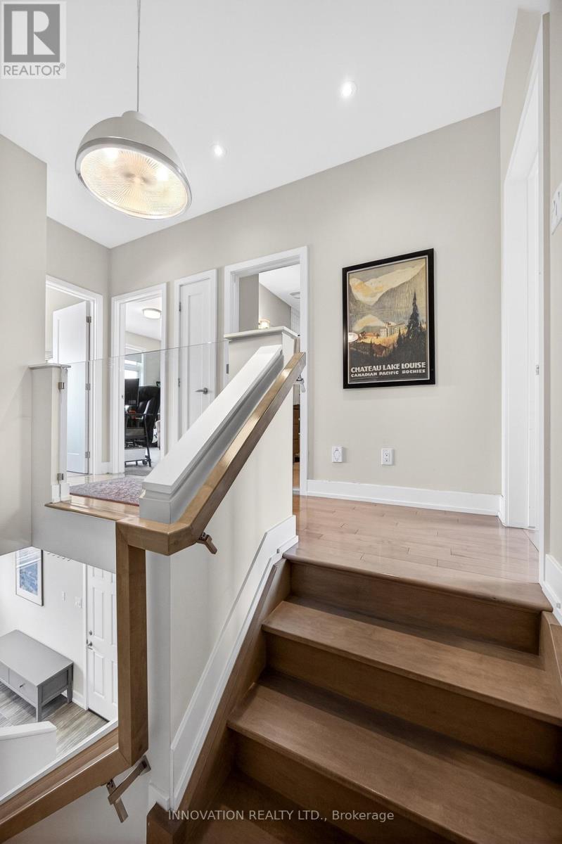 Perfectly located in one of Ottawa's most convenient neighbourhoods, this stunning semi-detached home offers exceptional access to everything you need. Walk to the LRT and VIA Rail station for an easy commute downtown or out of the city, enjoy quick access to Highway 417, and be just minutes from Trainyards, St. Laurent, shops, restaurants, parks, schools, and hospitals. Built in 2015, this stylish home features 3 bedrooms, 2.5 bathrooms, a finished basement, and an attached single-car garage-ideal for parking, extra storage, bikes, and seasonal items. The bright main floor is filled with natural light from oversized windows and showcases 9-foot ceilings and elegant hardwood flooring. At the heart of the home is a beautiful gourmet kitchen with granite counters, a large centre island with breakfast bar, walk-in pantry, and abundant storage. A striking hardwood staircase with contemporary glass rail accents adds a sophisticated architectural touch and leads to the upper level. Upstairs, the spacious primary suite is a true retreat, offering abundant natural light, his-and-her walk-in closets, and a spa-inspired ensuite with double sinks and a walk-in shower. Two additional bedrooms and a well-appointed 4-piece bathroom provide plenty of space for family or guests. The finished basement expands the living space with a cozy family room centred around a gas fireplace, plus ample storage. Outside, the private backyard is perfect for relaxing or entertaining, featuring a deck and low-maintenance landscaped gardens. Enjoy the perfect balance of style, comfort, and convenience in a location that puts Ottawa at your doorstep. (id:64974)