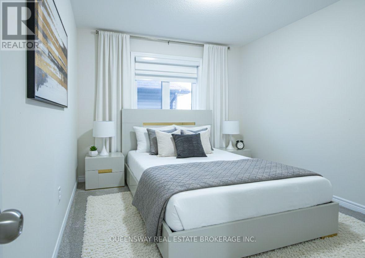 Make a statement the moment you arrive. Step into a grand, sun-filled foyer with soaring ceilings and a striking 7-ft chandelier set within an impressive 20-ft entrance-an unforgettable first impression that sets the tone for this open and elegant home. This nearly new, custom-built detached residence offers Tarion warranty remaining and sits on a rare oversized pie-shaped lot, providing exceptional outdoor potential. The main floor features high ceilings throughout and an upgraded kitchen complete with quartz countertops, extended cabinetry, stainless steel appliances, a custom appliance garage, and a stylish accent slat wall-flowing seamlessly into the main living space, ideal for both everyday living and entertaining. Upstairs, enjoy a spacious family room that can easily convert to an additional bedroom, along with a well-appointed primary suite featuring a walk-in closet and a 4-pc ensuite. Premium wide-plank flooring on the main level, a double-car garage, and a sought-after family-friendly neighbourhood close to Highways 401 & 403, shopping, and daily conveniences complete the package. A rare combination of modern design, premium lot size, and thoughtful upgrades-this is the kind of home buyers wait for. (id:64974)