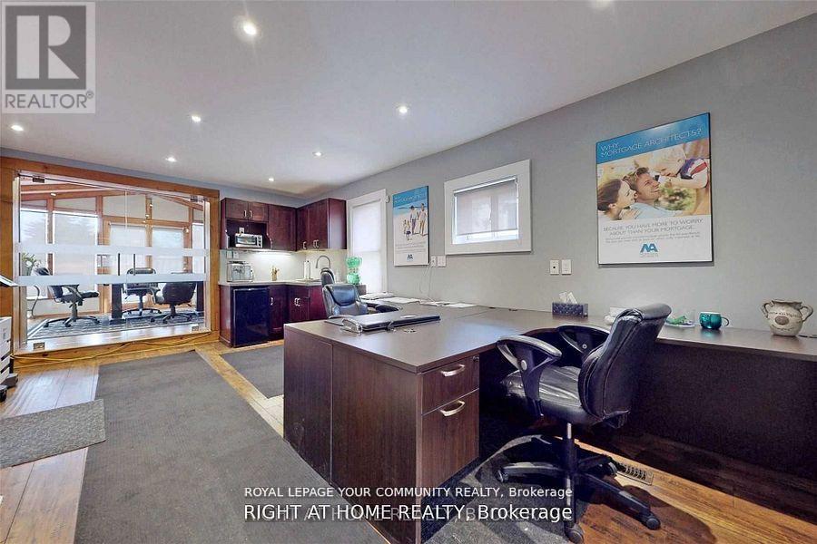 Extraordinary opportunity located right in the heart of King City, a truly exceptional 53 x 200 ft developable lot that is bursting with potential and ready to shape the future of the King City Core! Currently operating as a professional office, this charming property boasts a well-designed layout, including 5-6 offices, a reception area, a spacious boardroom, a kitchen, 2 bathrooms, and a convenient kitchenette. The expansive lot features ample parking for 8-10 vehicles, with room for expansion to accommodate even more. This property is ideal for a variety of professional uses such as medical practices, law firms, accounting offices, engineering firms, or real estate agencies. It also holds the potential to be converted into a residential property to suit your vision. Strategically located just steps from the Keele and King Road intersection, this property offers excellent visibility, signage opportunities, and proximity to public transit, ensuring convenience for clients and employees alike. The full basement provides additional storage, while three separate entrances offer flexibility for multi-use configurations. With no heritage designation, the property allows for future development or expansion without restrictions, making it a truly valuable investment. Whether you're looking to renovate for your business needs, convert into a residence, or develop for future growth, the possibilities are endless.**EXTRAS** Existing furniture is available for tenant use. Don't miss your chance to own a prime piece of King City's thriving core (id:64974)