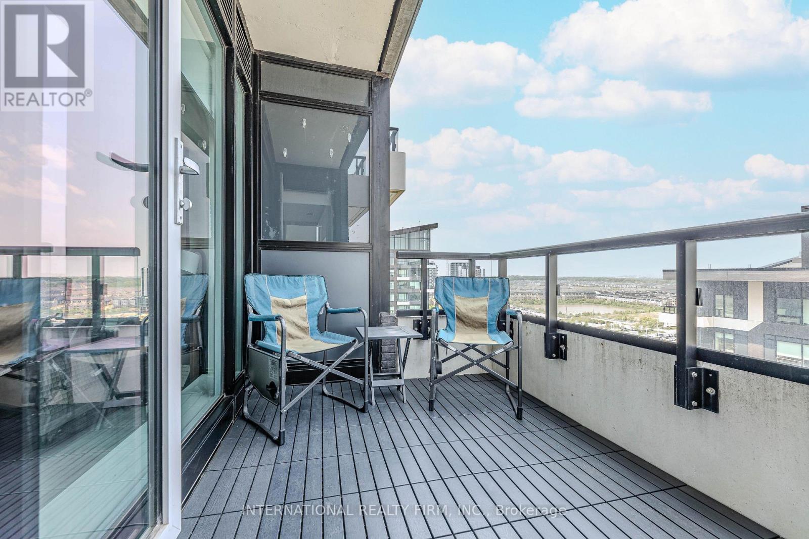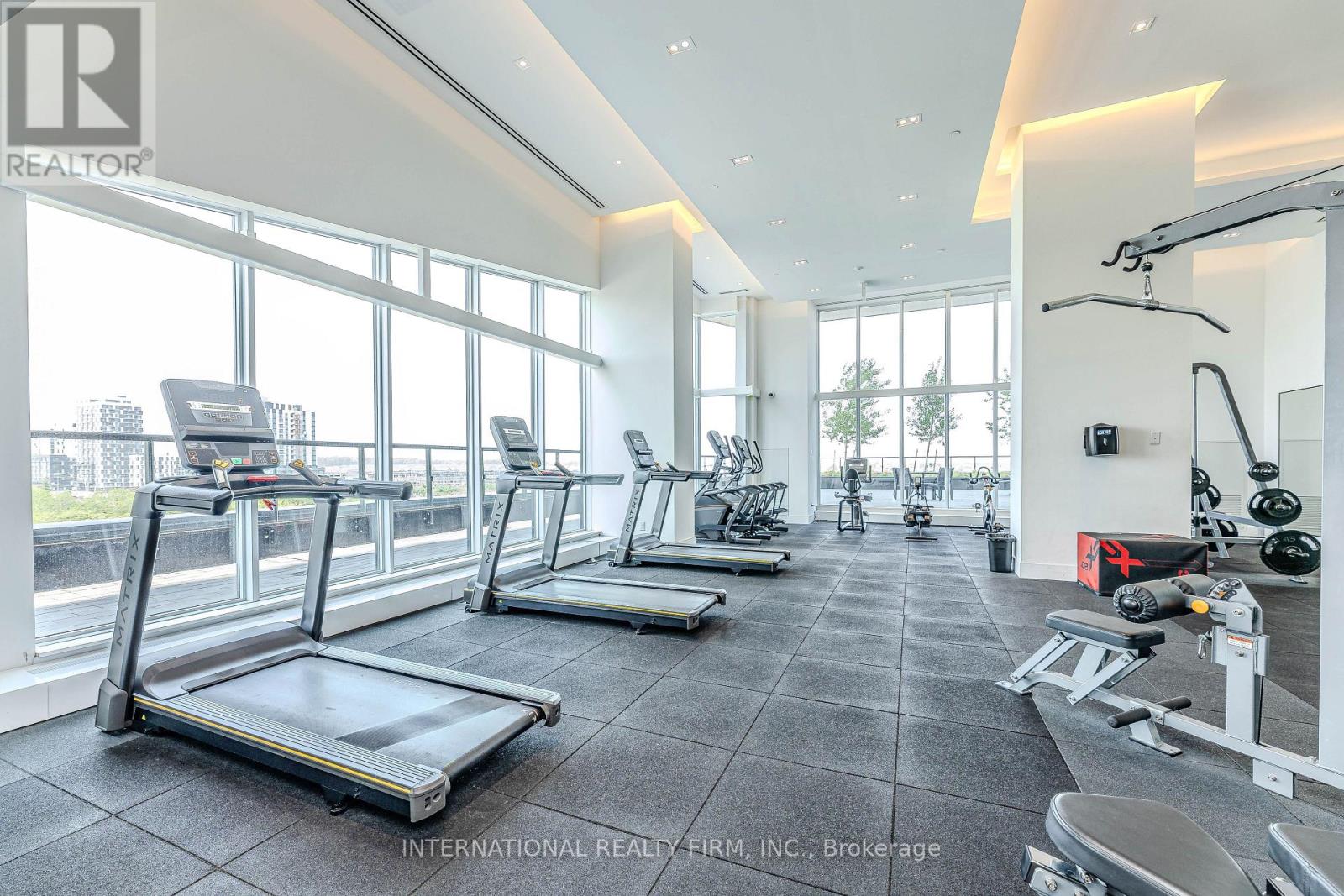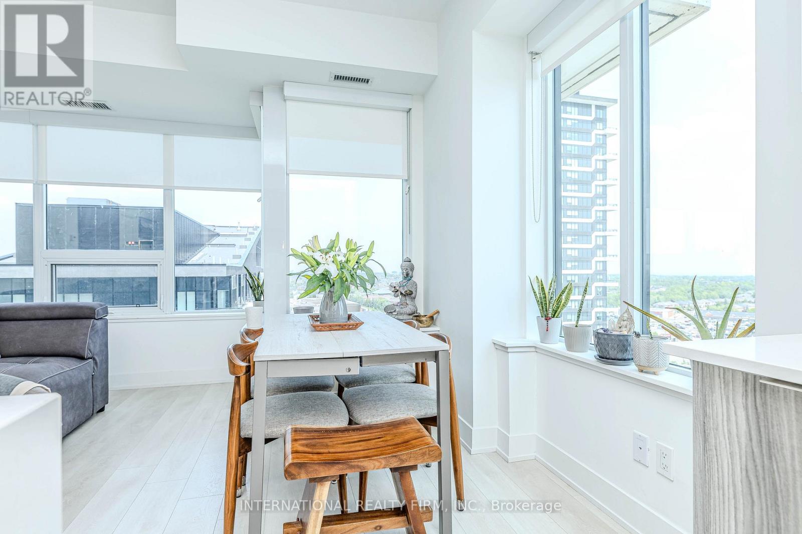 Welcome to this stunning southeast corner unit in the highly sought-after Uptown Core Oakville location! This highly desirable floor plan offers 854 sqft of living space, plus a 62 sqft balcony. Featuring two split bedrooms and two bathrooms, the unit boasts 9' smooth ceilings, pot lights, and wide laminate flooring throughout. Open-concept modern kitchen and living/dining space. The kitchen has been beautifully upgraded with granite countertops, a center island, a stylish backsplash, and sleek stainless steel appliances with an integrated dishwasher, and a fridge. The master bedroom comes with a 3-piece ensuite and a spacious closet. Enjoy the convenience of in-suite laundry, along with one parking space and one locker. With large windows and a balcony, this home is open, bright, and offers unobstructed southeast views. Enjoy the luxury of 24-hour concierge service and access to fantastic amenities, including the Chef's Table, a wine-tasting space perfect for entertaining in a high-end atmosphere, a state-of-the-art fitness center, an outdoor pool, a Pilates room overlooking the garden & patio, a zen space, a ping-pong room, and a theater. This prime location is just steps away from Walmart, Superstore, LCBO, banks, shopping stores, and restaurants. Top-ranked schools are nearby, and it's conveniently located close to Hwy403/410, Go Transit, 5 minutes from Sheridan College, and just a 20-minute drive to UTM. (id:64974)