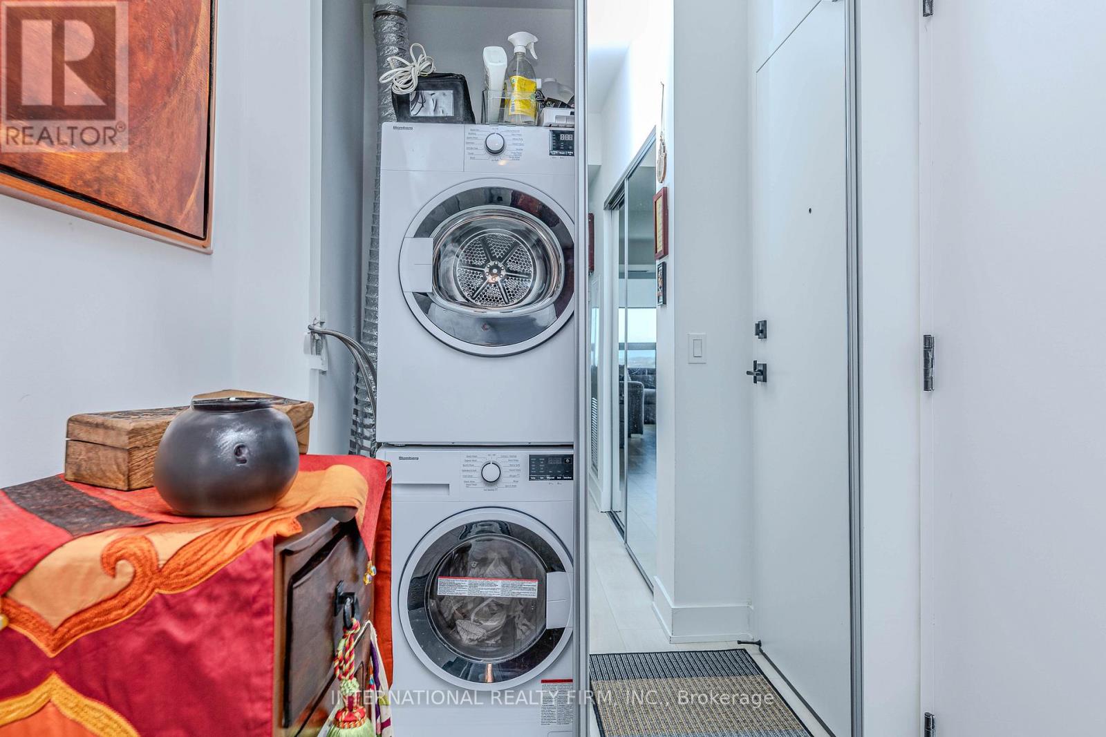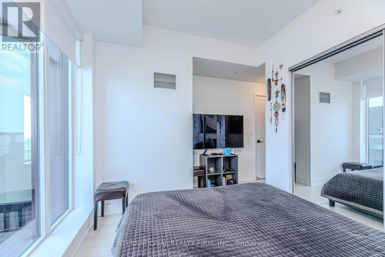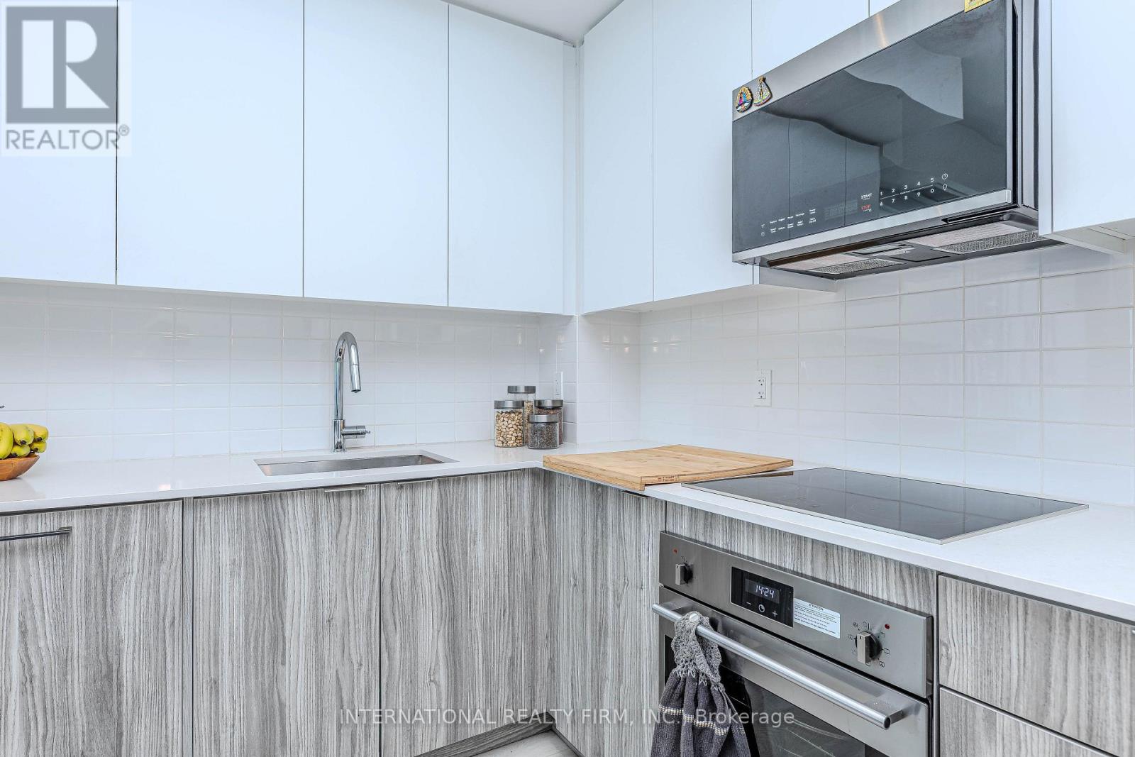 Welcome to this stunning southeast corner unit in the highly sought-after Uptown Core Oakville location! This highly desirable floor plan offers 854 sqft of living space, plus a 62 sqft balcony. Featuring two split bedrooms and two bathrooms, the unit boasts 9' smooth ceilings, pot lights, and wide laminate flooring throughout. Open-concept modern kitchen and living/dining space. The kitchen has been beautifully upgraded with granite countertops, a center island, a stylish backsplash, and sleek stainless steel appliances with an integrated dishwasher, and a fridge. The master bedroom comes with a 3-piece ensuite and a spacious closet. Enjoy the convenience of in-suite laundry, along with one parking space and one locker. With large windows and a balcony, this home is open, bright, and offers unobstructed southeast views. Enjoy the luxury of 24-hour concierge service and access to fantastic amenities, including the Chef's Table, a wine-tasting space perfect for entertaining in a high-end atmosphere, a state-of-the-art fitness center, an outdoor pool, a Pilates room overlooking the garden & patio, a zen space, a ping-pong room, and a theater. This prime location is just steps away from Walmart, Superstore, LCBO, banks, shopping stores, and restaurants. Top-ranked schools are nearby, and it's conveniently located close to Hwy403/410, Go Transit, 5 minutes from Sheridan College, and just a 20-minute drive to UTM. (id:64974)