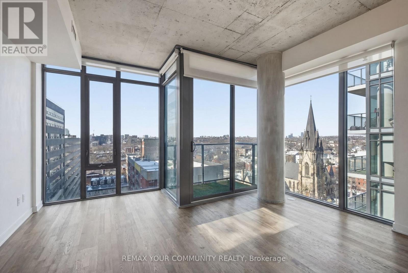 Welcome to this stylish 1 bedroom, 1 bathroom suite in one of downtown Toronto's most sought-after locations at King and Bathurst. Featuring floor-to-ceiling windows and exposed concrete ceilings, this condo unit offers a "loft-style" feel with modern character throughout. The functional layout is complemented by not one, but two private balconies. The main balcony showcases unobstructed northwest views, offering incredible natural light and stunning sunsets. Located in a fantastic building in the heart of King West, you're steps to top restaurants, cafés, transit, and everything downtown living has to offer. A rare opportunity to own a bright, character-filled condo in an unbeatable location. (id:64974)