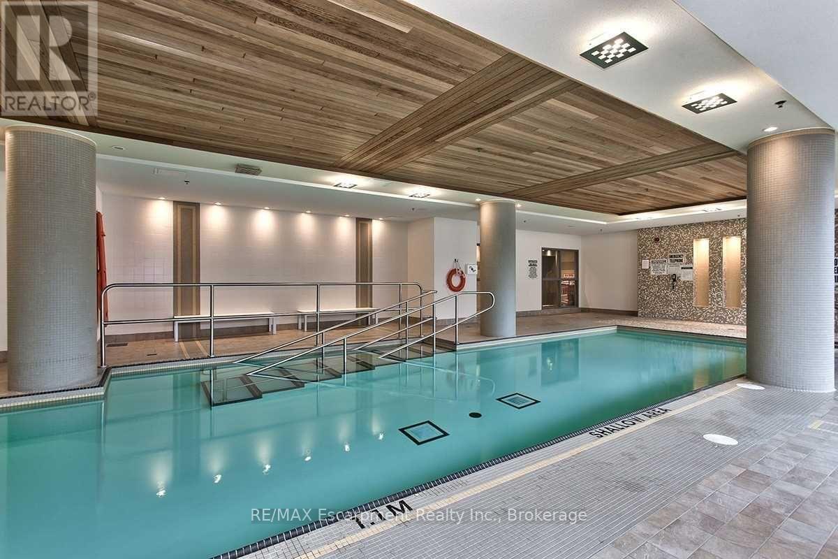 Welcome to Condo #1309 at 1055 Southdown Rd, a beautifully designed one-bedroom suite with a den with double doors. The kitchen boasts stainless steel appliances, granite countertops, ample cabinetry, and a breakfast bar spacious enough for three stools. The primary bedroom is carpeted and features a large sliding mirror door closet, additional coat closet, and floor-to-ceiling windows that flood the space with natural light and black-out blinds. A den with glass French doors provides the perfect office setup. The semi-ensuite 4-piece bathroom includes a separate glass-enclosed shower, bathtub, and vanity with storage. Enjoy hardwood floors in the living and dining area, large windows with southeast exposure and window coverings, and access to a 124 sq ft balcony with stunning views of Lake Ontario and the Toronto skyline. This unit is situated in the charming community of Clarkson Village, known for it's unique small businesses and fantastic restaurants, all just a short walk away. The location is ideal, with the Clarkson GO station only a three-minute walk from your door. A large grocery store, pharmacy, and LCBO are also conveniently located just a ten-minute walk away. The building features a range of amenities, including an indoor pool, exercise room, party room, theatre, and 24-hour concierge service for enhanced security. (id:64974)