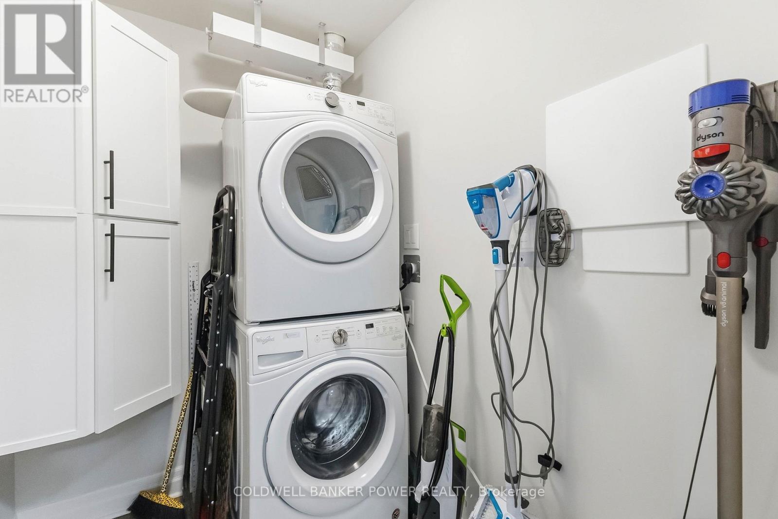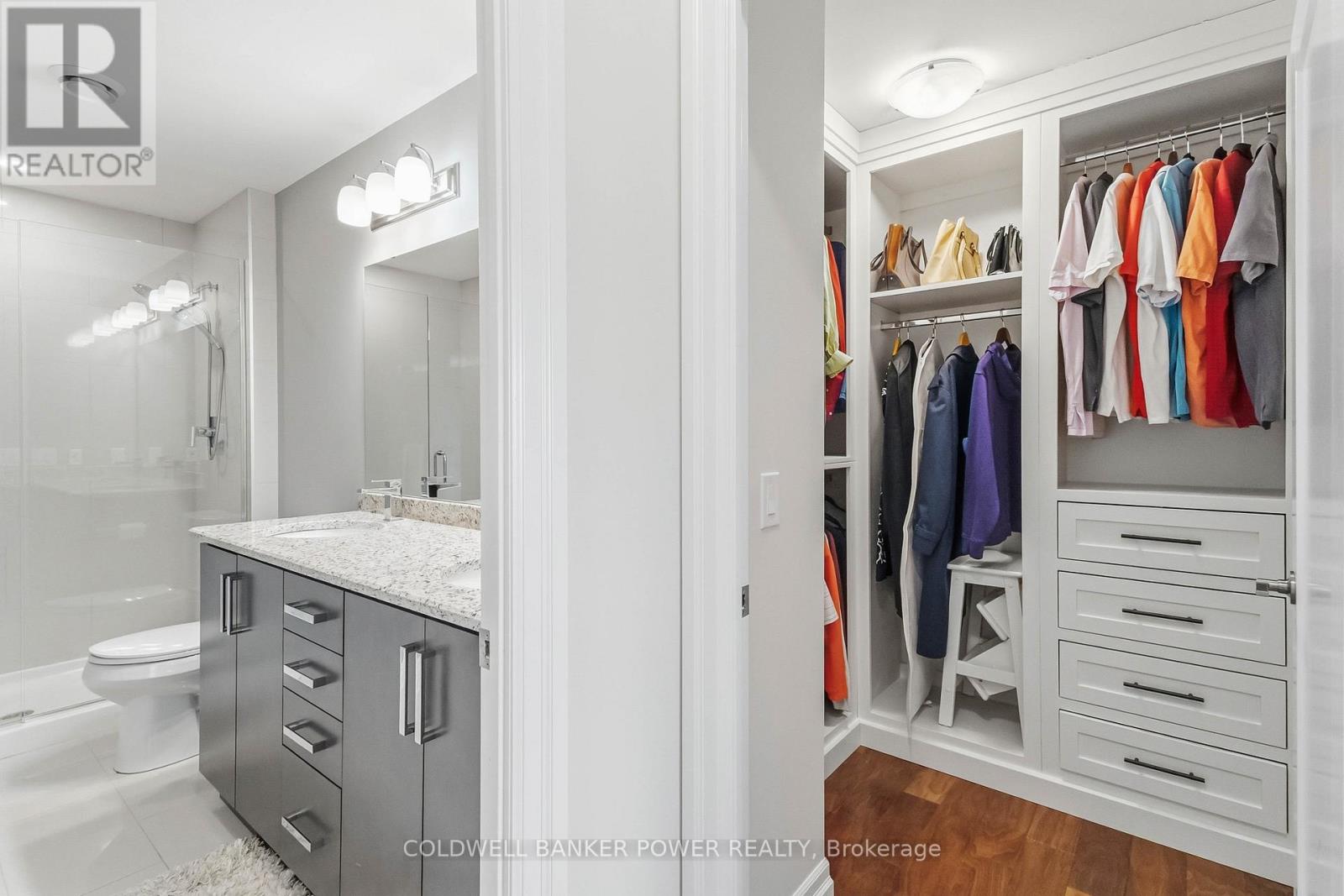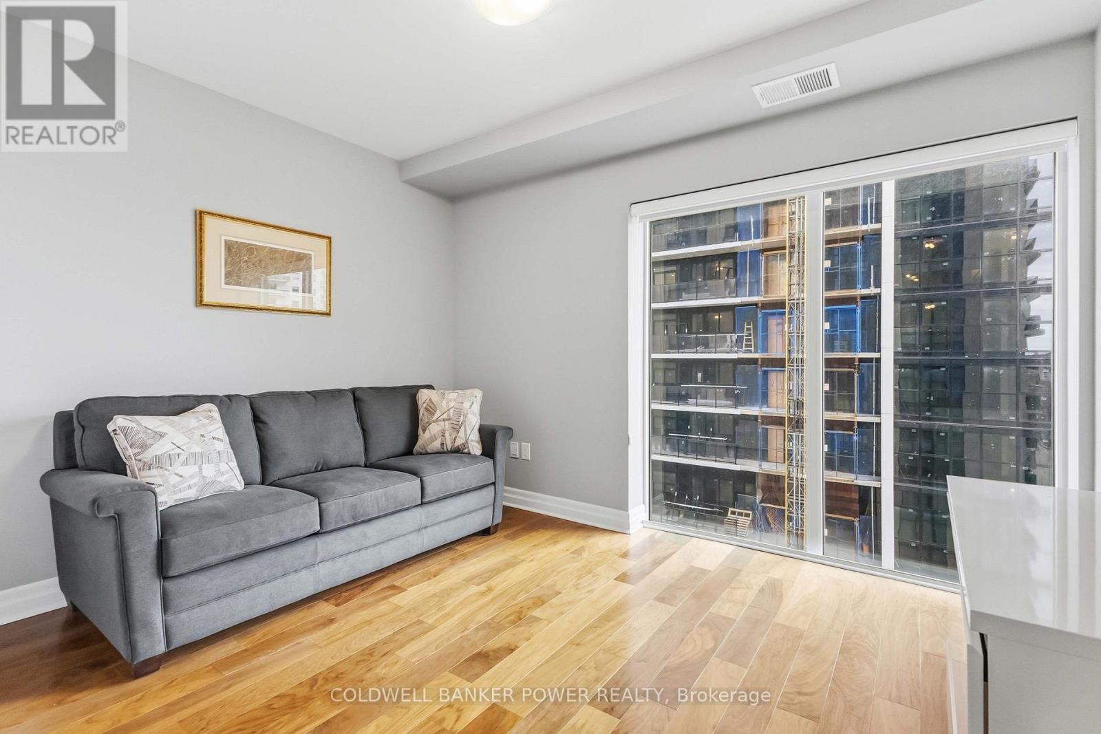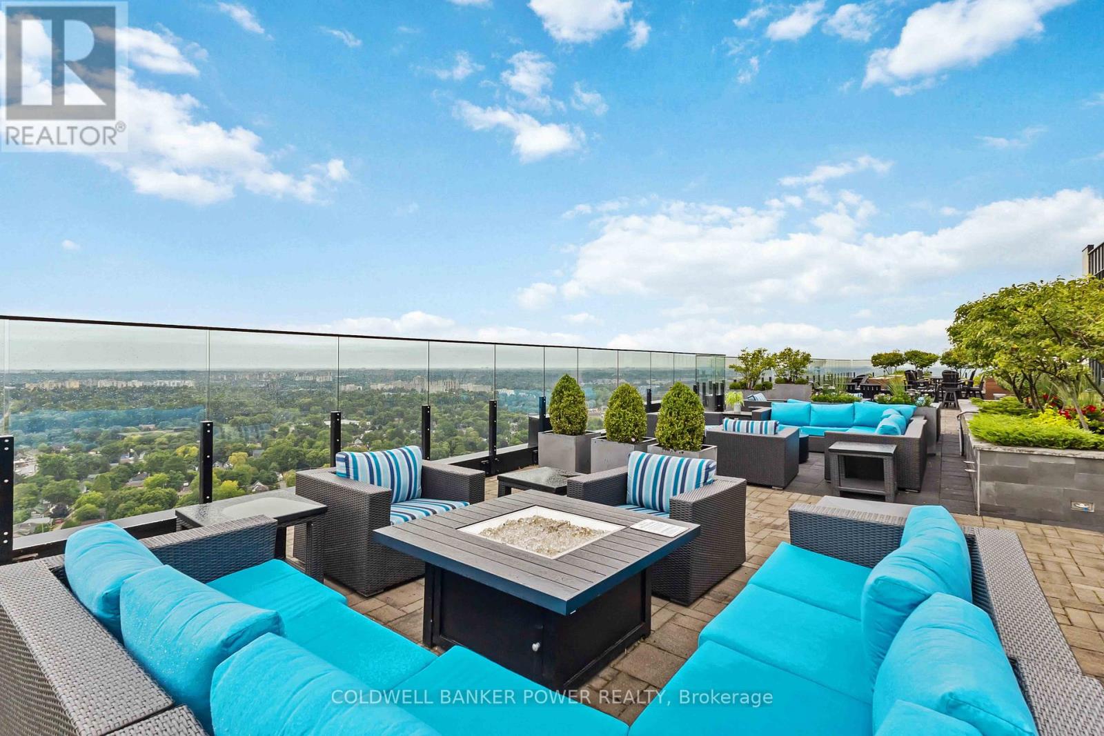 Welcome to Azure Condominiums, one of downtown London's premier luxury high-rise communities. Offering 1,615 sq. ft. of interior living space plus a 135 sq. ft. private balcony, the Madison 2H model provides the size and layout many buyers look for but rarely find in condo living. Located on the 13th floor, Suite 1309 features 2 bedrooms, a den, and 2 full bathrooms, all arranged within a highly functional floor plan designed for both everyday living and entertaining. The open living and dining space feels bright and welcoming, complemented by hardwood flooring throughout with no carpet. Extensive custom cabinetry has been thoughtfully added throughout the unit, including the dining area, hallway closet, pantry, and primary bedroom closet, maximizing storage while maintaining a clean built-in look. Just off the kitchen, a custom feature wall with a built-in wine display fridge creates a striking focal point that guests will notice right away. The den offers excellent flexibility, serving as a home office while also functioning as guest space thanks to a custom Murphy bed that allows the room to easily convert when needed. Practical features continue with 2 underground parking spaces, both equipped with EV chargers capable of fast charging and conveniently located close to the building entrance and elevators. The unit also includes a convenient and large private storage locker located on the same floor. Condo fees include heating, cooling, water, and hot water, leaving owners responsible only for personal hydro. Azure residents enjoy exceptional amenities including a 29th floor rooftop terrace with BBQs and gas fire pits, fitness centre, golf simulator, social lounge, billiards room, library, and guest suite. All of this is located in the heart of downtown London, just steps from restaurants, entertainment, parks, and major employers. A fantastic opportunity to enjoy over 1,600 sq. ft. of upgraded condo living in one of the city's most sought-after buildings. (id:64974)
