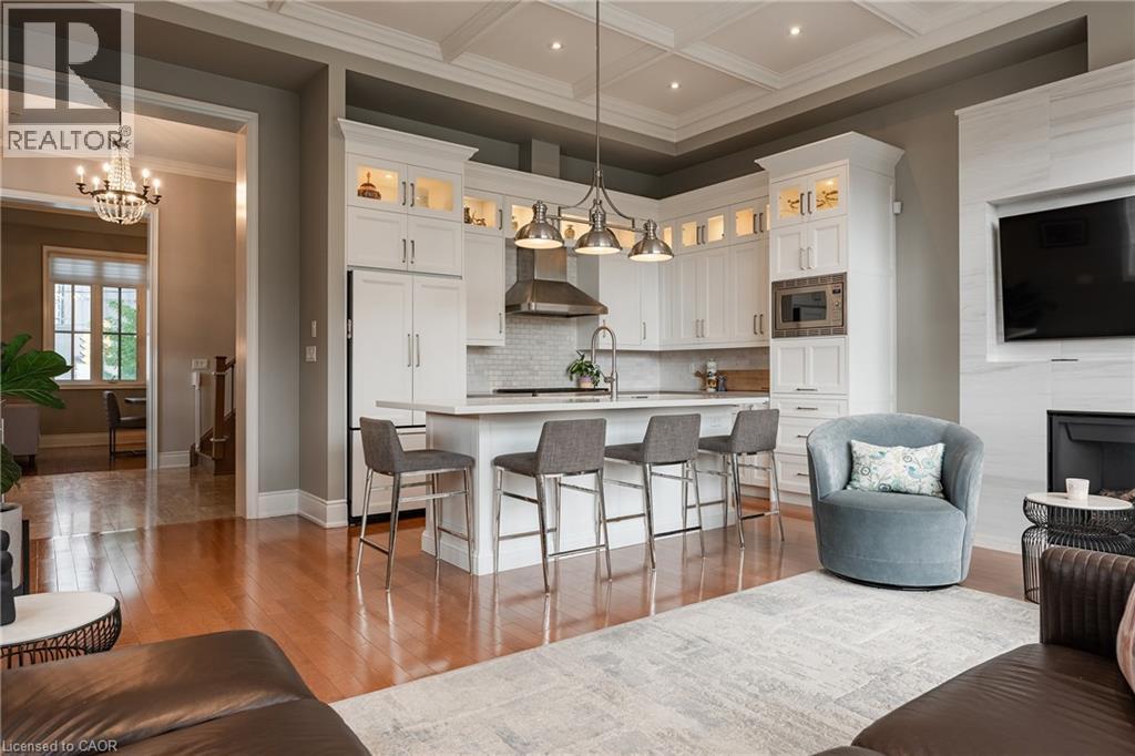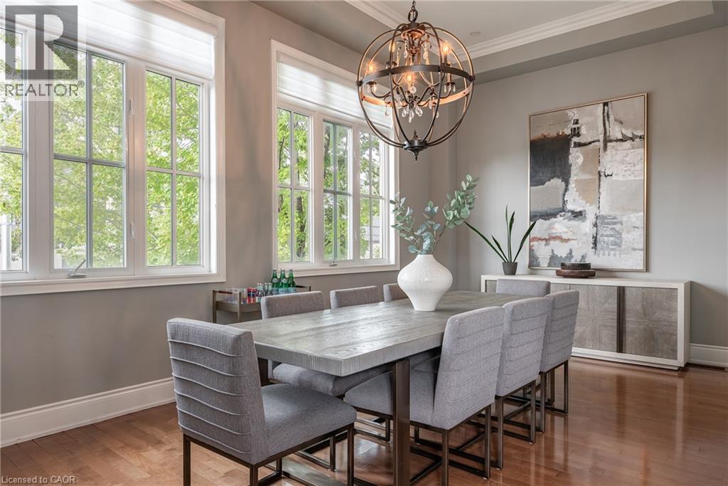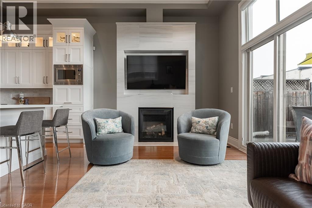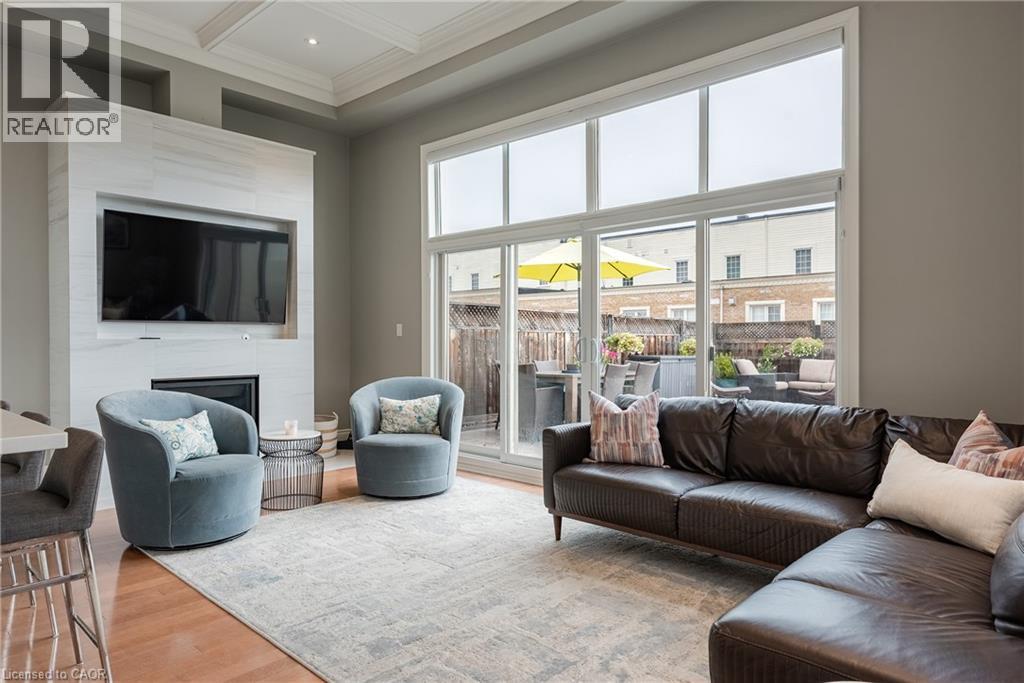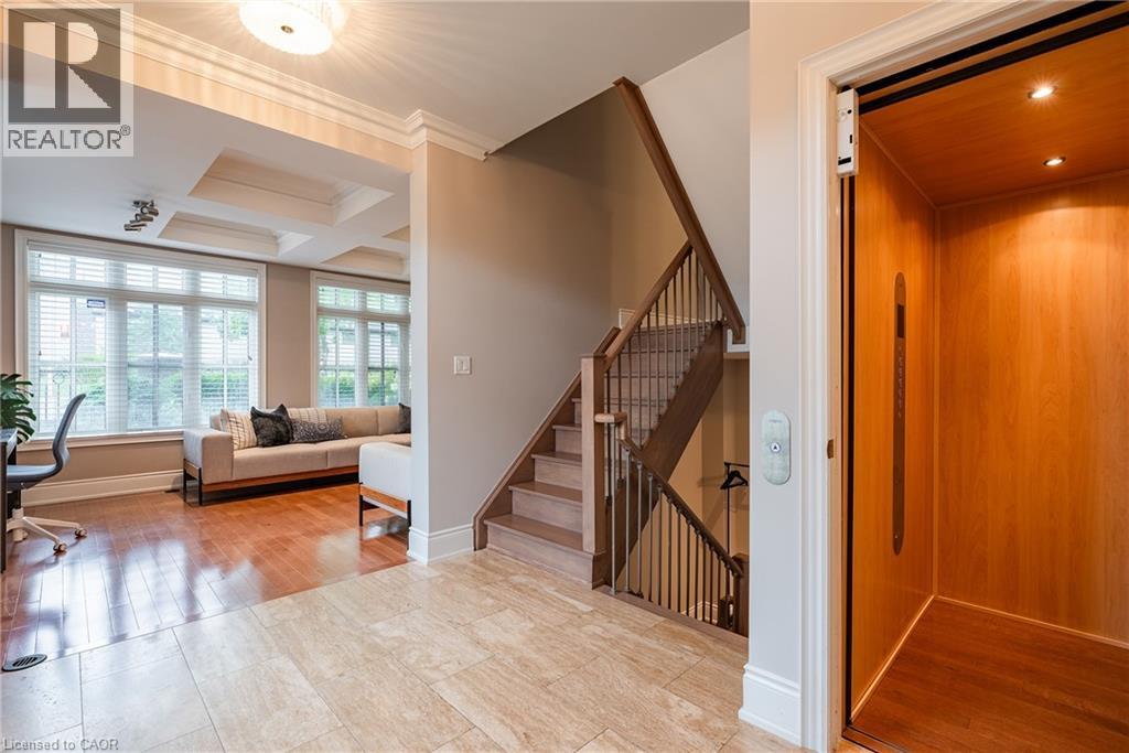 NEW, MASSIVE PRICE REDUCTION! Welcome to Village West a boutique enclave of upscale freehold townhomes set in Oakvilles downtown core. This rare end-unit feels more like a New York loft than a traditional townhouse. With soaring 12’ CEILINGS and loaded with huge windows throughout, the interior is defined by its sense of volume, openness and sunlight. Where every room feels generous in scale and effortlessly connected. From the moment you step inside, you’ll notice the proportions: expansive principal rooms, wide hallways, tall door thresholds, and wide staircases with oversized landings. The dining room is truly grand, while the adjoining kitchen and family room are framed by a dramatic, sky-high coffered ceiling. The kitchen has been FULLY RENOVATED, featuring high-end appliances, sleek finishes, and a layout designed for both everyday living and entertaining. Hardwood flooring runs throughout the home, complemented by TWO FIREPLACES and the convenience of a private ELEVATOR to every level. The double-car garage is oversized, providing not only secure parking but also ample room for storage. On the main level, a flexible office/sitting room overlooks the landscaped front and side gardens, where mature plantings and trees create privacy and a lush green outlook. On the third level, two very large bedrooms, each with its own ensuite, are generously proportioned making them a flexible space for various needs. The outdoor living is equally impressive. A 650 sq ft SOUTH FACING TERRACE offers a private retreat with enough room to entertain on a large scale or simply unwind in peace. The lower level extends the living space even further, perfect for a home gym, office, media room, or whatever suits your needs best. Village West is as practical as it is refined. This enclave is beautifully maintained, with a welcoming atmosphere and neighbours who take pride in their homes. Desirable location just steps to downtown Oakvilles shops, dining and the lakefront parks. (id:64974)