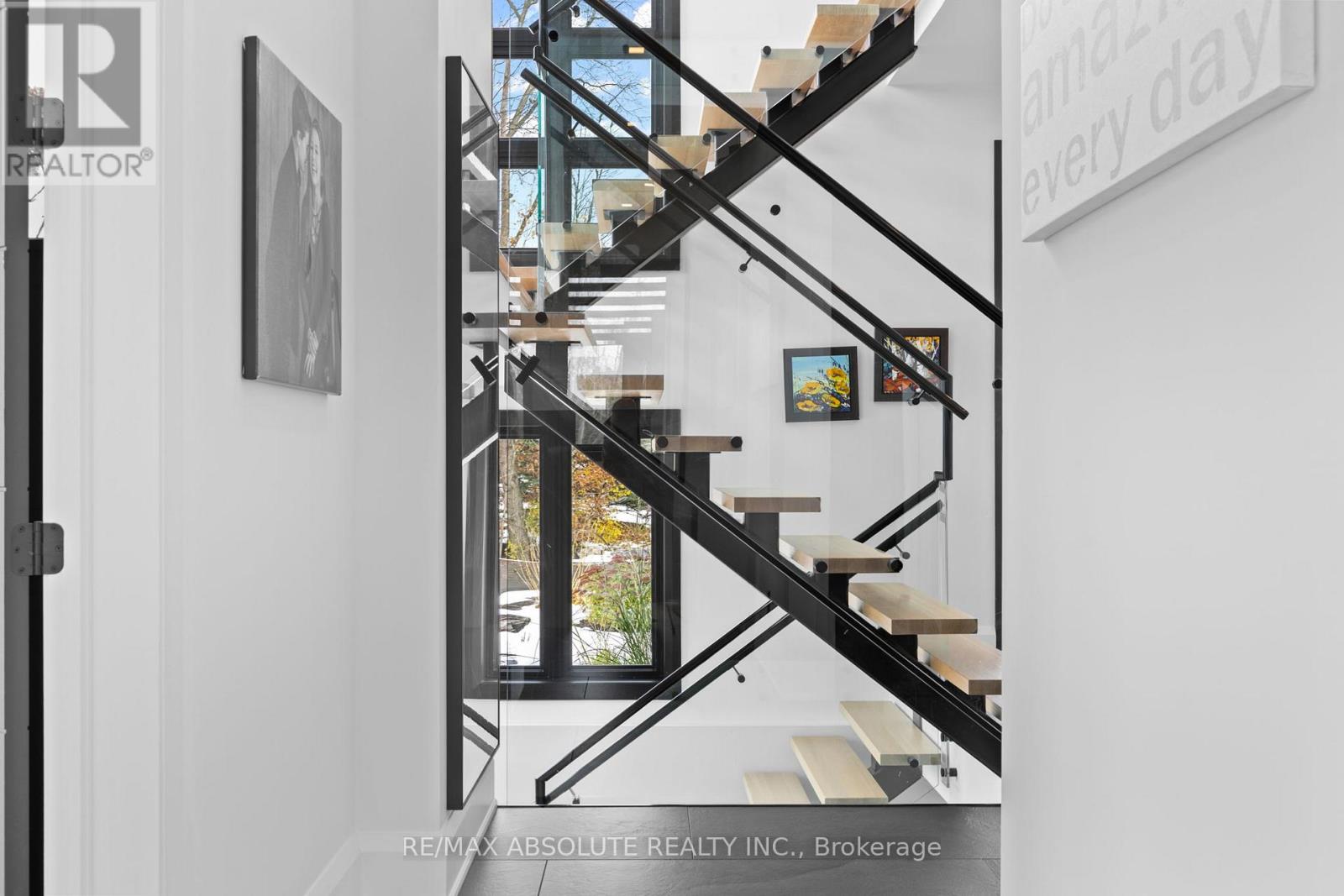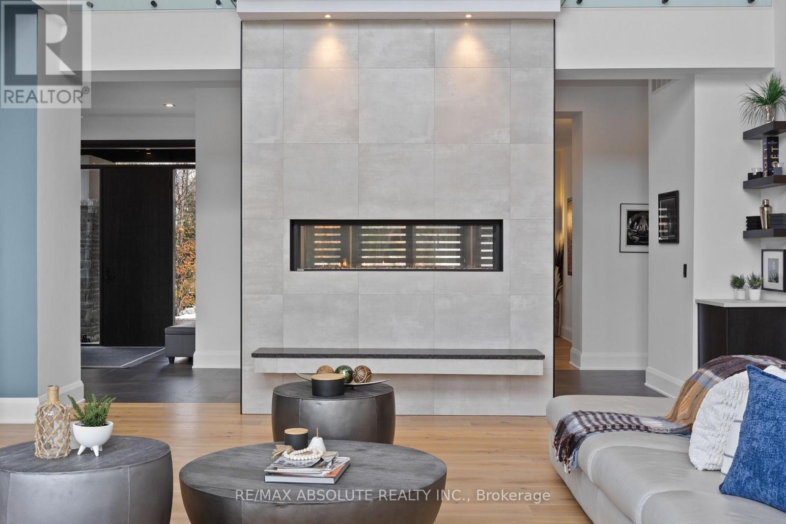 BREATHTAKING private family retreat awaits! This is the ideal urban escape situated on over 2 acres in one of Ottawa's most beautiful estate communities! The circular PAVED driveway guides you towards a residence that demands attention! Strategically situated, professional landscaped, stone & stucco surround PLUS the gorgeous mature trees provide a memorable first tranquil impression! In floor heat can be found in the separate garage- an enthusiasts dream! Spanning approximately 7000 square feet of finished space, this home represents the pinnacle of modern luxury! The thoughtful floor plan offers meticulous craftsmanship, floor to ceiling windows, a 2 story GREAT room, 10 foot ceilings on the main & 9 on the upper & lower level & 8"oak hardwood. The Deslaurier kitchen was designed for both style & function, it offers TOP of the line Chef's appliances, everything on your DREAM WISH list & more INCLUDING the most amazing walk in pantry you have seen! The oversized patio doors allow for seamless indoor/outdoor living & guide you to the AMAZING outdoor living area! The 2 sided fireplace allows dining to become an experience in the formal dining room! PLENTY of enviable designs throughout including the mudroom & laundry room (2 washer & 2 dryers)! This home offers 2 primaries- 1 on the main & one of the 2nd! 5 bedrooms, 4 ensuites PLUS 2 powder rooms & a MAIN floor office! The glass used within the home enhances the feeling of spaciousness throughout especially on the staircase & the landing! The 2nd floor primary retreat offers a fireplace, private balcony, INCREDIBLE walk in closet & a SUPER LUX 5 piece ensuite. ALL baths offer heated floors. The FULLY finished WALKOUT lower level is an absolute masterpiece with OVER 2000 SF of finished space, glass walls in the gym & the large open area is SURE to impress! 200 amp, 20Kw Generator, Top of the line water filtration system, auto lighting & window blind system controlled through the Lutron app. NO expense spared! (id:64974)