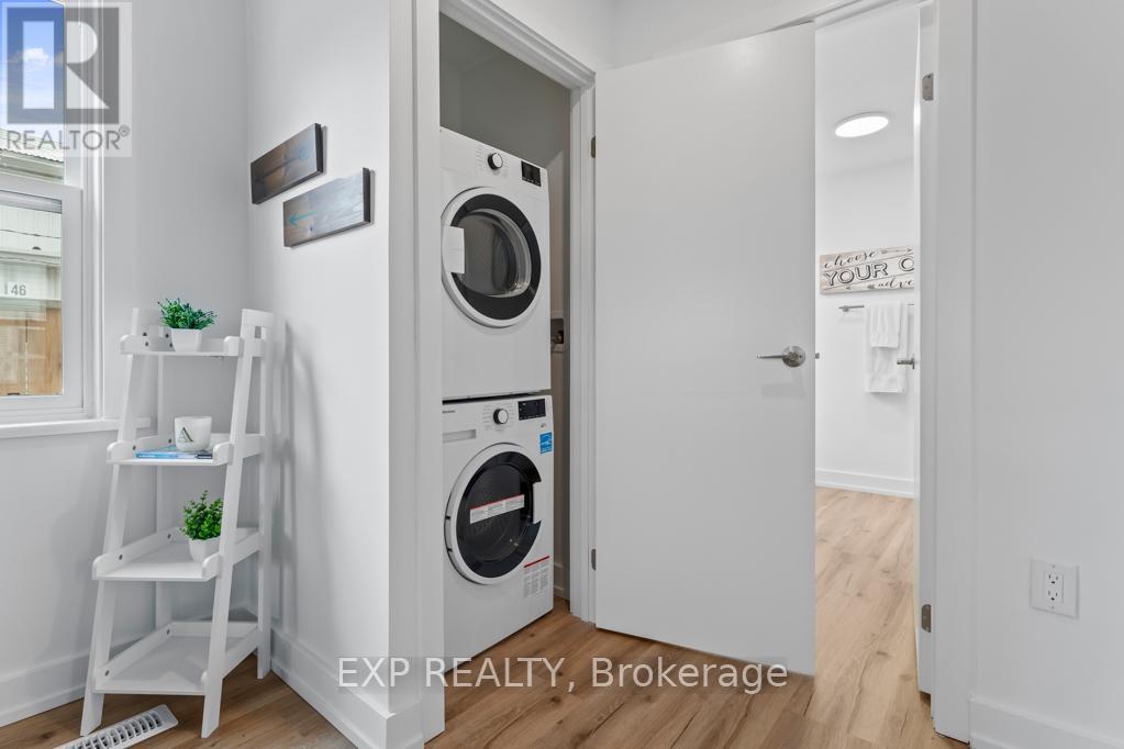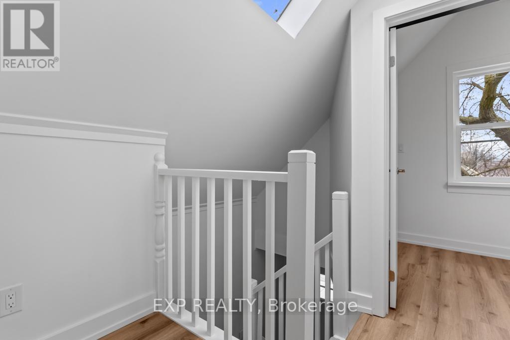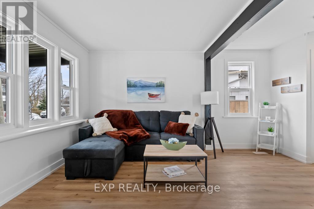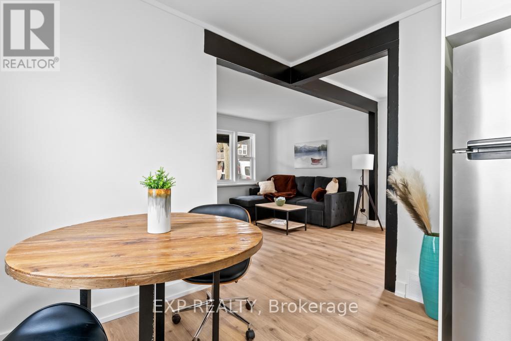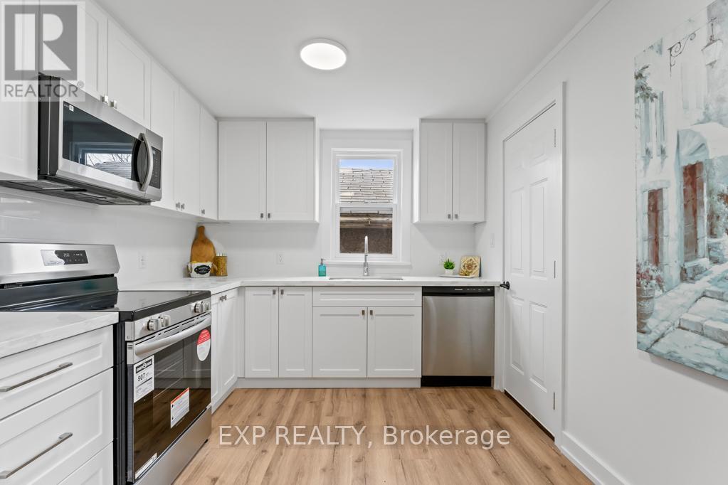 Charming and affordable fully renovated 1.5-storey detached home in Welland, conveniently located just minutes from the highway. The loft-style primary bedroom offers a spacious double closet and a cozy, functional layout. The main floor features a bright open-concept design with a modern kitchen that flows seamlessly into the dining area-perfect for everyday living and entertaining. The adjoining living room is warm and inviting, while the fully updated 4-piece bathroom adds a fresh, modern touch. Main-floor laundry adds everyday convenience. Enjoy your morning coffee or unwind in the evening on the welcoming covered front porch. (id:64974)