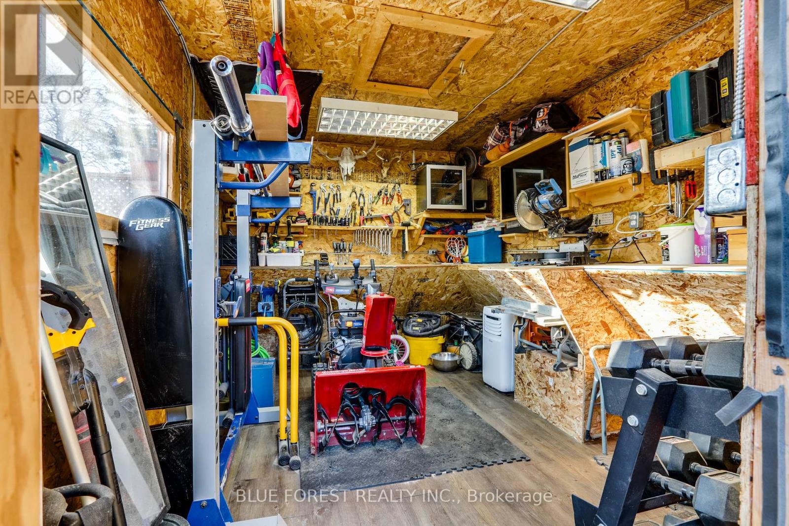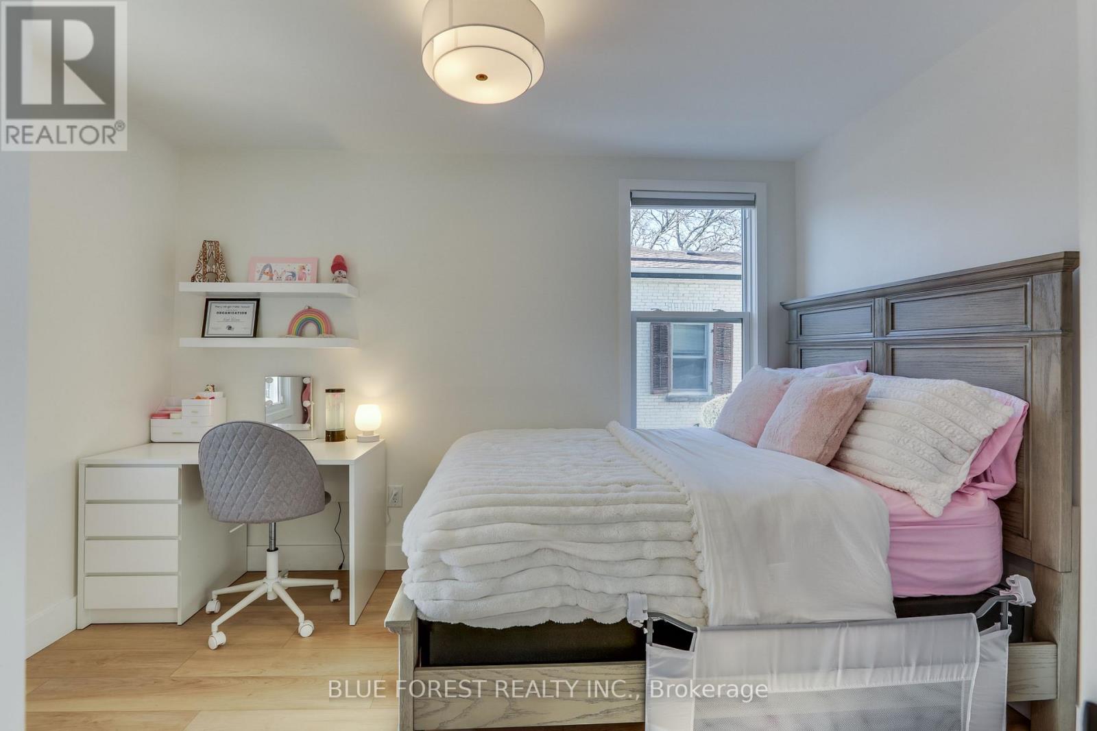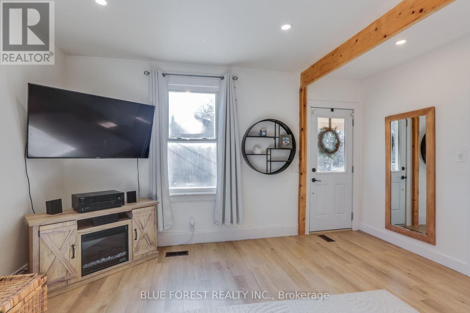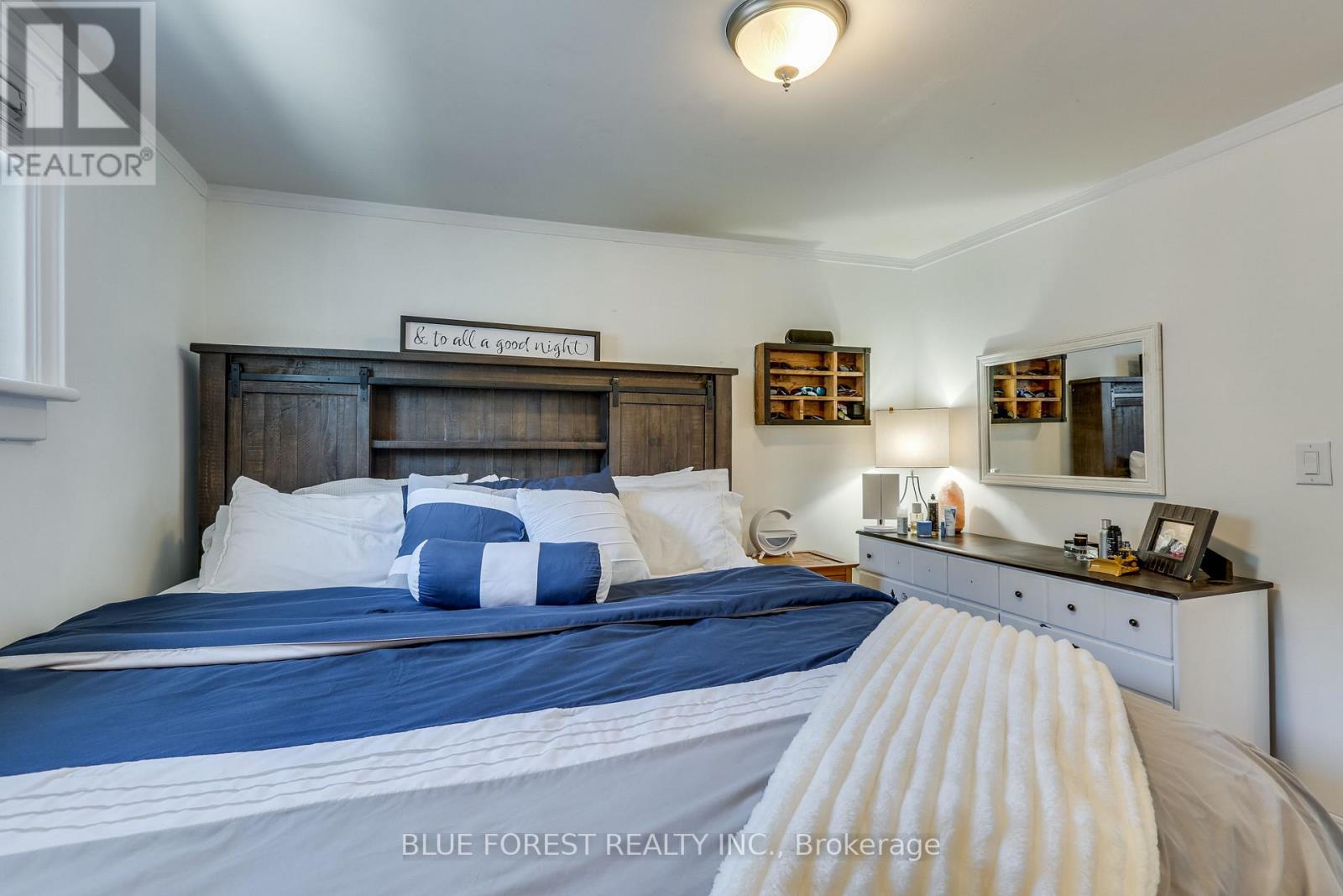 Looking for affordable living in the heart of Strathroy? This may be the home for you. Listed at $429900, it offers you the alternative of home ownership for a price comparable to renting. This three bedroom bungalow offers parking for three cars, a cute front porch, a fully fenced rear yard with a deck, fire pit, and an oversized shed for hydro. This house presents itself vey very well and will surprise you with it spaciousness and over 1000 sq ft of living space. The family room is up front and has two big windows for natural light, with two bedrooms to your left, each offering closet organizers and enough room for double beds and dressers or desks. Further down the hall is the primary bedroom that comes with a walk in closet. Next is the kitchen and it has been lovingly decorated with charm. The new rear oversized window overlooks the rear yard and makes the space so bright. There is a center island and plenty of space to create culinary feasts and it is even equipped with its very own wine cooler. There is a full and renovated 4 piece bathroom and off to the right is your mudroom and main floor laundry. Downstairs is your utility area and storage space. The oversized shed is set up as workshop and is heated, has hydro and a workbench and offer all sorts of possibilities. (id:64974)