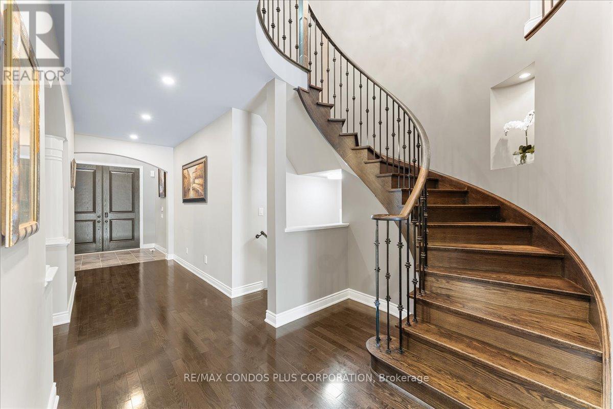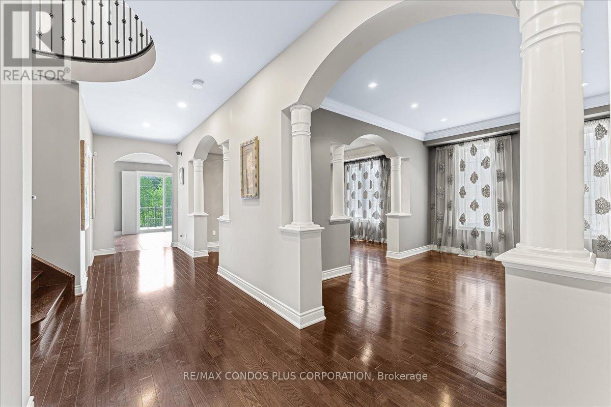 *Beautiful Home on one of Patterson's Best Premium Ravine Lots* with Stunning Views in Vaughan's prestigious Upper Thornhill Estates, situated on the Highly Sought-After Lady Nadia Drive! This home offers a blend of luxury and privacy. The pie-shaped irregular lot widens at the rear providing generous exposure to the Oak Ridges Moraine, which is part of Ontario's protected Greenbelt. Inside find over 4000 sq ft of above-grade living space + a finished walk out basement. The bright family room features cathedral ceilings and a custom fireplace mantel. The spacious open-concept kitchen has a breakfast area with a walk-out to a large terrace, perfect for enjoying the ravine views. The main floor also includes a dining room, family room, and a home office, providing flexibility for daily living and entertaining. Upstairs, the primary bedroom boasts two walk-in closets and a 5-piece ensuite. Three more large bedrooms, each with their own bathroom access, complete the upper level. The fully finished walk-out basement is perfect for entertaining, with a wet bar, two extra bedrooms, a 3-piece bathroom, and a private staircase. Custom California Shutters are featured throughout the home. Outside, the interlocked driveway and landscaped yard boast curb appeal, and the 3-car garage and 4 driveway parking spaces make parking easy. This home is a must-see home in one of Patterson's best locations! **EXTRAS** The home backs onto the Oak Ridges Moraine, part of Ontario's Greenbelt. This is protected land, not a public park or nature trail, ensuring privacy and tranquility. (id:64974)