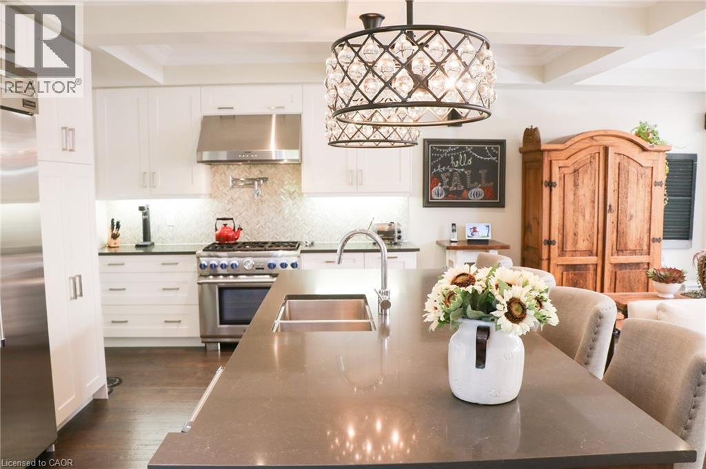 Nestled in sought-after Caledon, this 3+1 bed, 3.5 bath model home offers over 3,500 finished sq ft. curated with premium finishes and extensive upgrades. Features include wide plank oak and marble flooring, smooth ceilings, maple cabinetry, crown moulding, designer lighting, and California Closets. The great room boasts a waffle ceiling, limestone fireplace, custom built-ins, and garden doors with sidelights and transom. Chef’s kitchen offers extended-height cabinets, quartz counters, custom 9' island, Thermador 36” Gas Range, built-in fridge/dishwasher, True Beverage Center, and Jenn-Air microwave. The basement offers a limestone fireplace, full bath, gym with Armstrong flooring. Bathrooms feature quartz/marble counters, custom tile/stone. Outside: deck, patio, cedar studio. Includes: butler’s pantry, security system, garage storage, HD-ready home theatre wiring, Four-Zone Audio System. (id:64974)