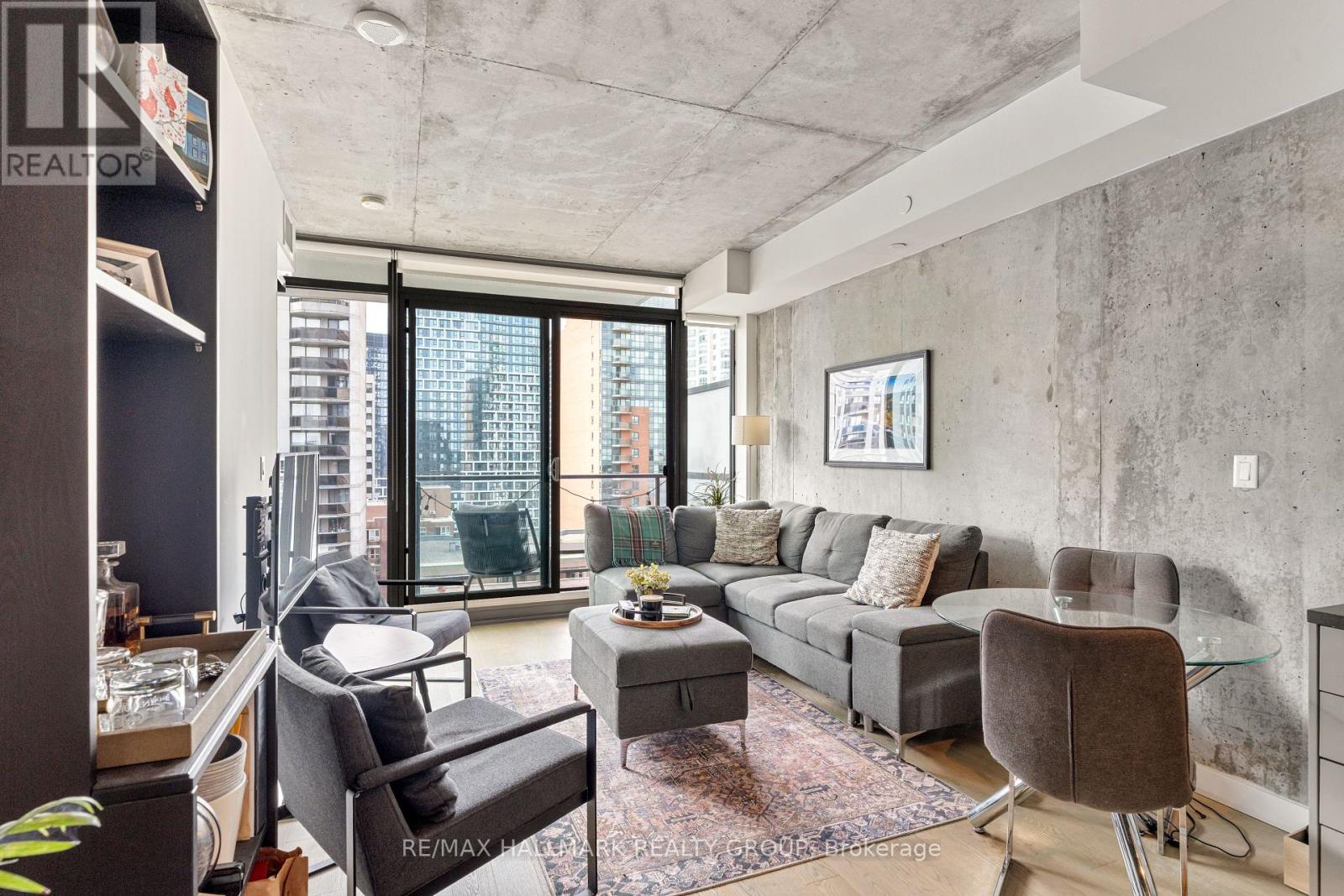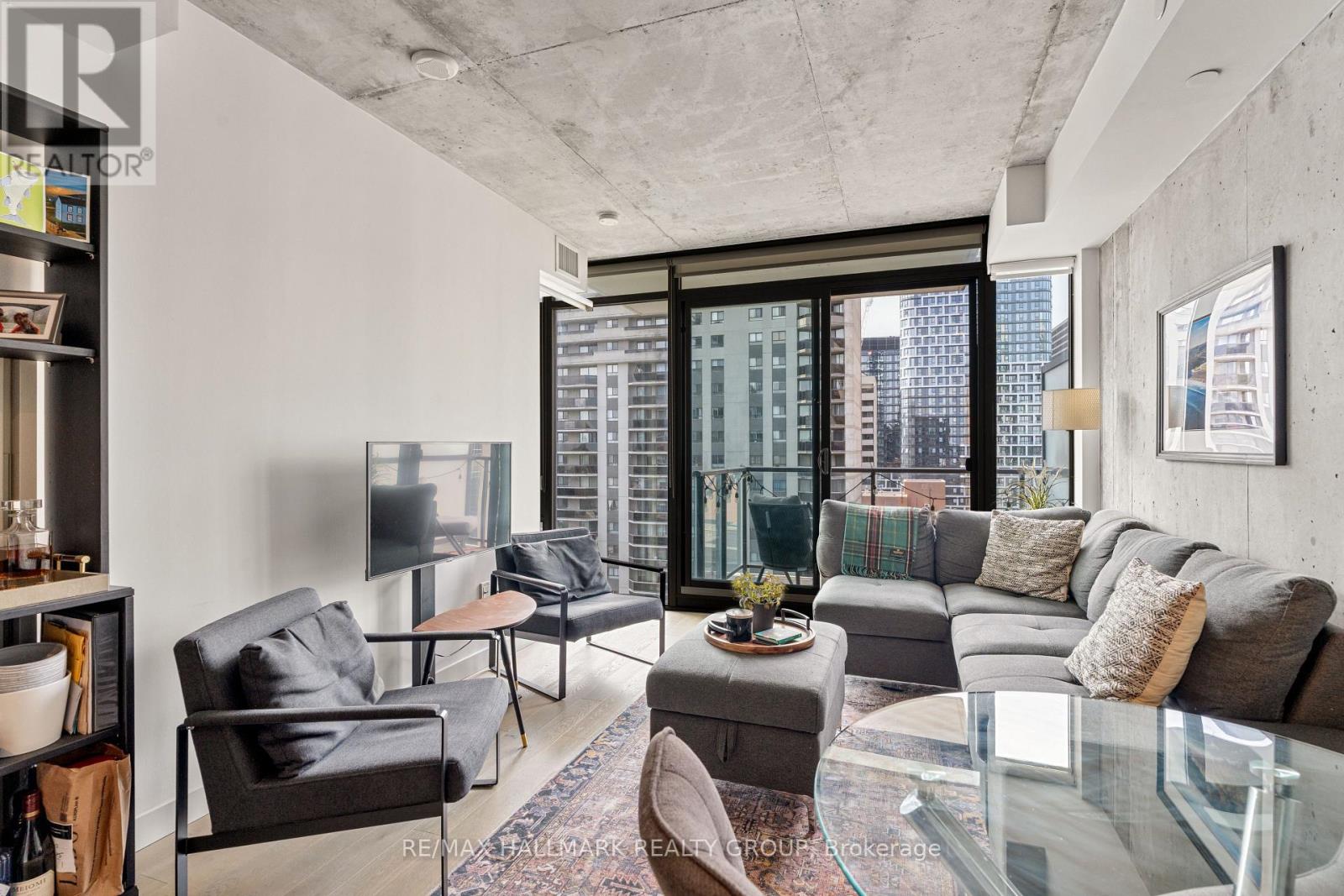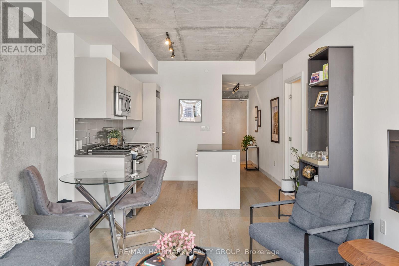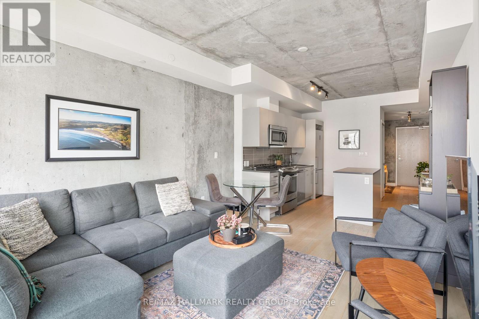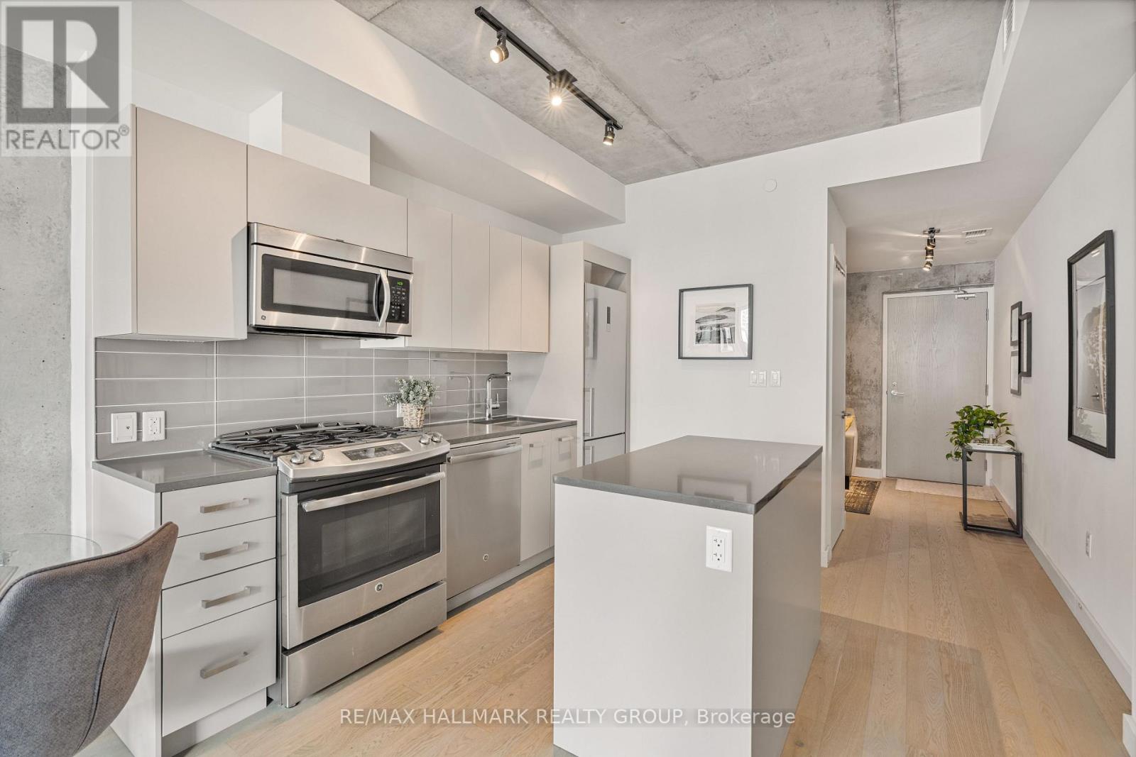 Welcome to The Gotham at 224 Lyon Street a stylish and modern 1+Den suite in the heart of Centretown. This bright and spacious unit features floor-to-ceiling windows, hardwood floors throughout, and a versatile den large enough for a comfortable home office. The sleek kitchen includes full-size stainless steel appliances, a gas stove, and an island perfect for cooking and entertaining. Step outside to a generously sized balcony with a rare gas BBQ hookup, a standout feature not often found in condo living. Additional highlights include ample closet space, in-unit laundry, and a private storage locker. The building offers amenities like concierge service, a party room with kitchen, outdoor BBQ terrace, and bike storage. Just a 5-minute walk to Lyon LRT station, you'll have quick access to downtown, Parliament Hill, and the city's top shops and restaurants. With a near-perfect Walk Score, this home offers the ideal balance of comfort, style, and convenience. Parking & Locker included. (id:64974)