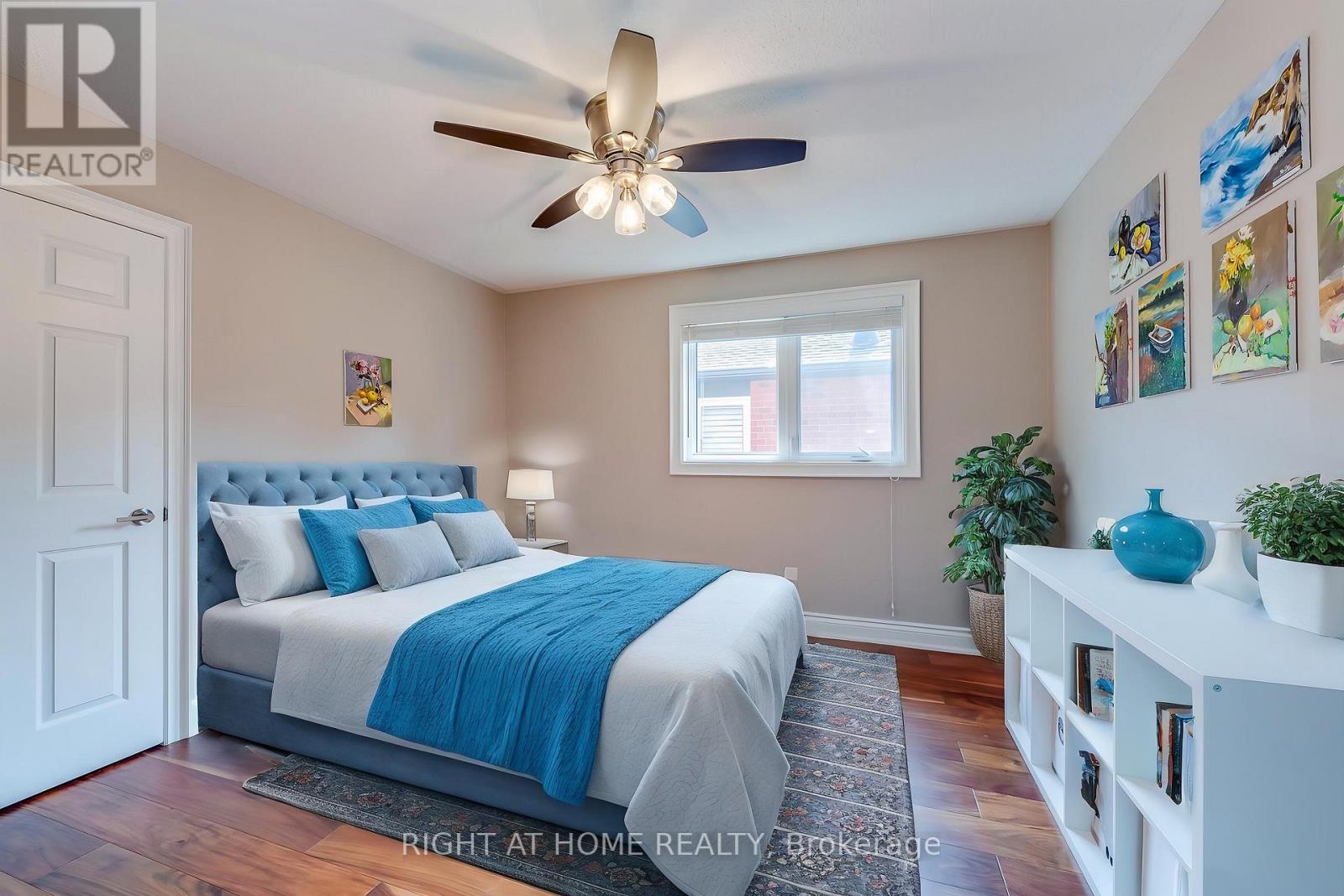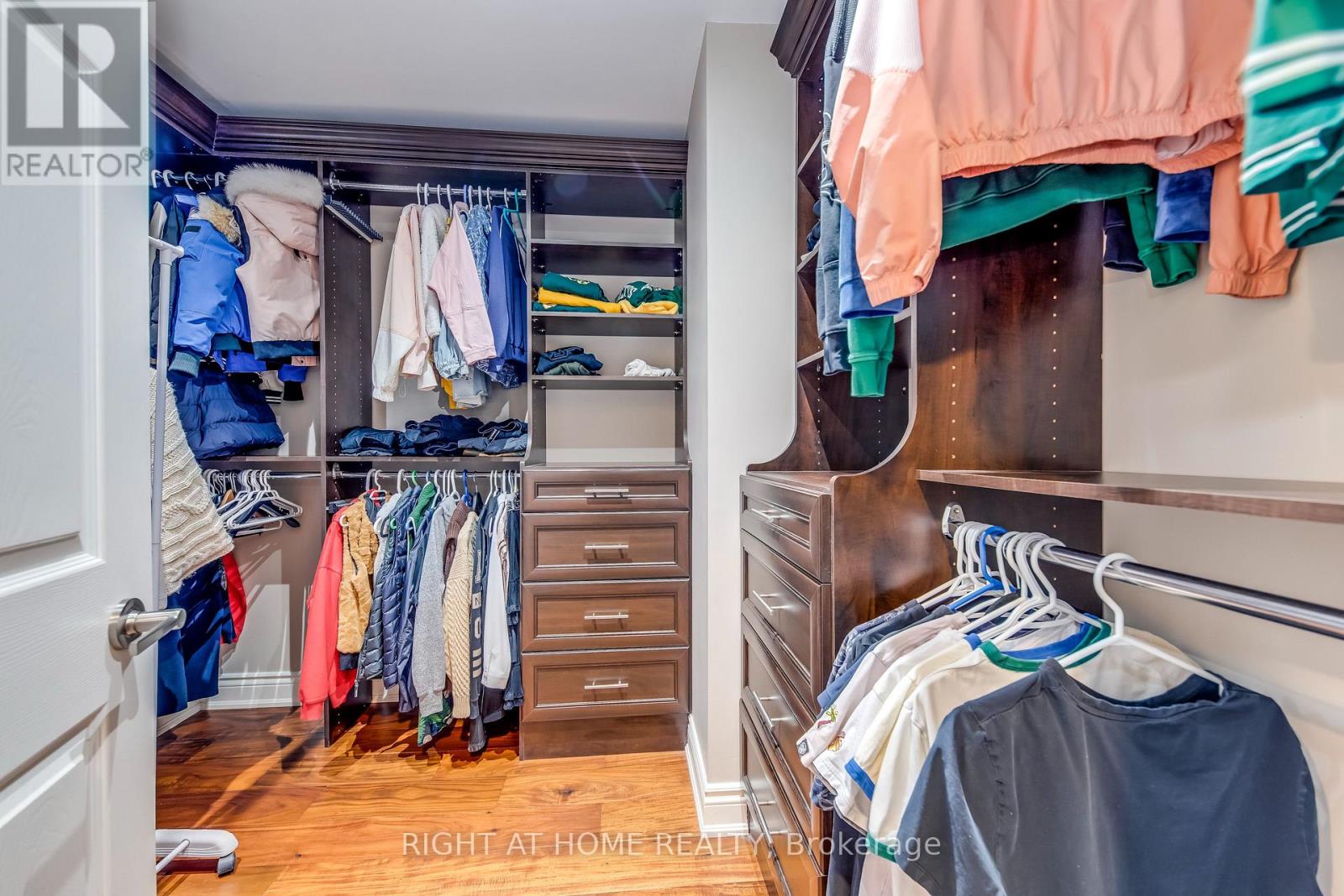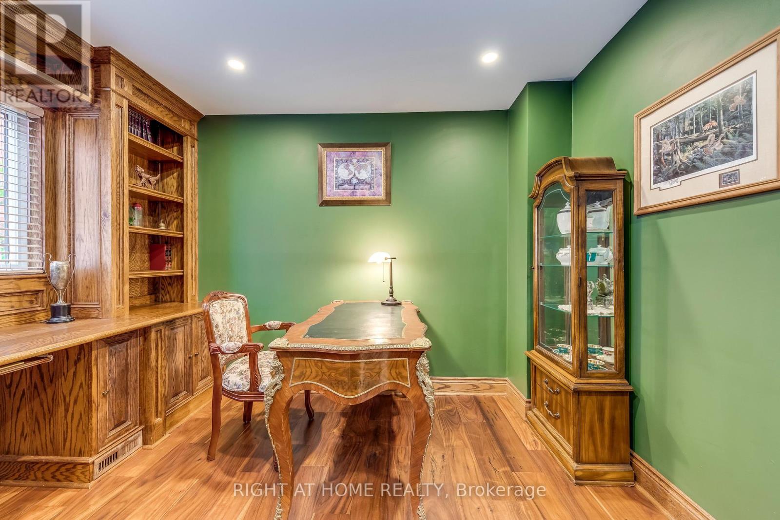 Rare Gem in Glen Abbey! Discover this beautifully renovated 4-bedroom family home nestled on a quiet, child-safe street. Inside, a refined open-concept layout, perfect for family living and upscale entertaining. 2,974 sqft above grade. The grand foyer welcomes you with rich, wide-plank hardwood floors and a classic Scarlett O'Hara staircase. Enjoy formal gatherings in the sunken living room with 9' ceilings and gas fireplace, or host dinners in the separate dining room, both adorned with crown molding and elegant finishes. The chef-inspired kitchen is the heart of the home, complete with granite counters, high-end built-in appliances (Wolf cooktop, Sub-Zero fridge, Miele dishwasher, double Dacor wall ovens), a large island, and custom cabinetry. The kitchen flows seamlessly into the spacious family room with a second gas fireplace, and the breakfast area opens to a professionally landscaped backyard. Walk out to your private backyard oasis featuring sunny west exposure, saltwater pool, hot tub, waterfall, diving rocks, stone patio, and a garden shed for convenient storage of lawn care tools and pool equipment. Mature landscaping creates the perfect blend of privacy and charm. Upstairs, the luxurious primary suite includes a large walk-in closet with organizers and a spa-like ensuite with heated floors, freestanding soaker tub, frameless glass shower, and dual vanity. Three additional bedrooms with large windows and a renovated 3-piece bath (with heated floors) complete this level. The finished basement is an entertainer's dream, featuring a home theater with projector and screen, wet bar, pool table area, home gym, wine cellar, and a 3-piece bath with sauna. There's also ample storage, a large workshop with UV air filtration, and space for hobbies or projects. Walk to top-rated schools, Community Centre, trails, shops, and transit. Easy access to highways and GO Train. A great opportunity to own a truly turnkey home in one of Oakville's most desirable communities. (id:64974)