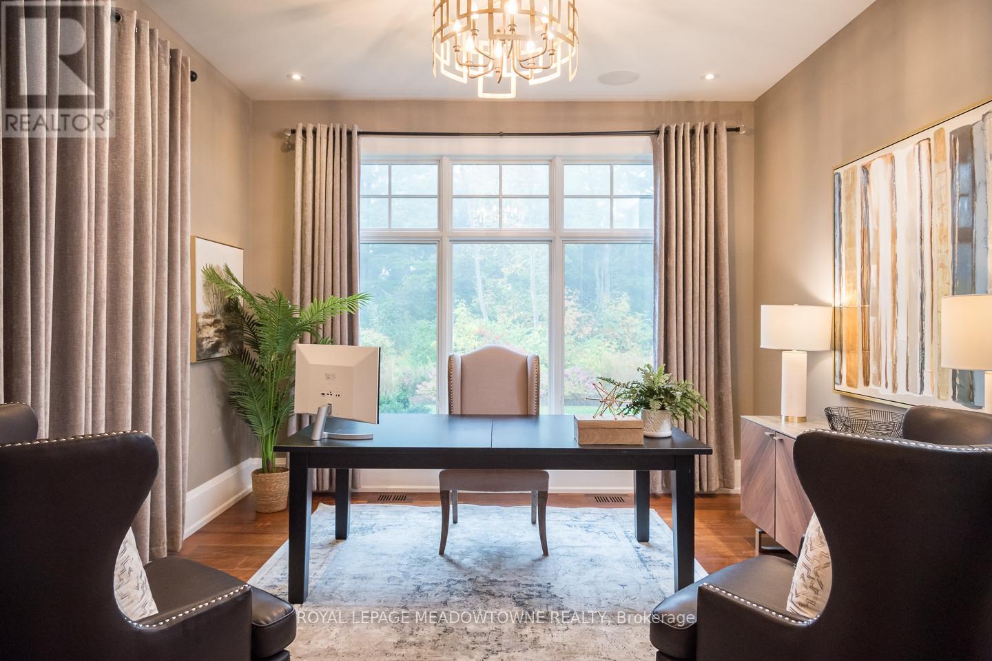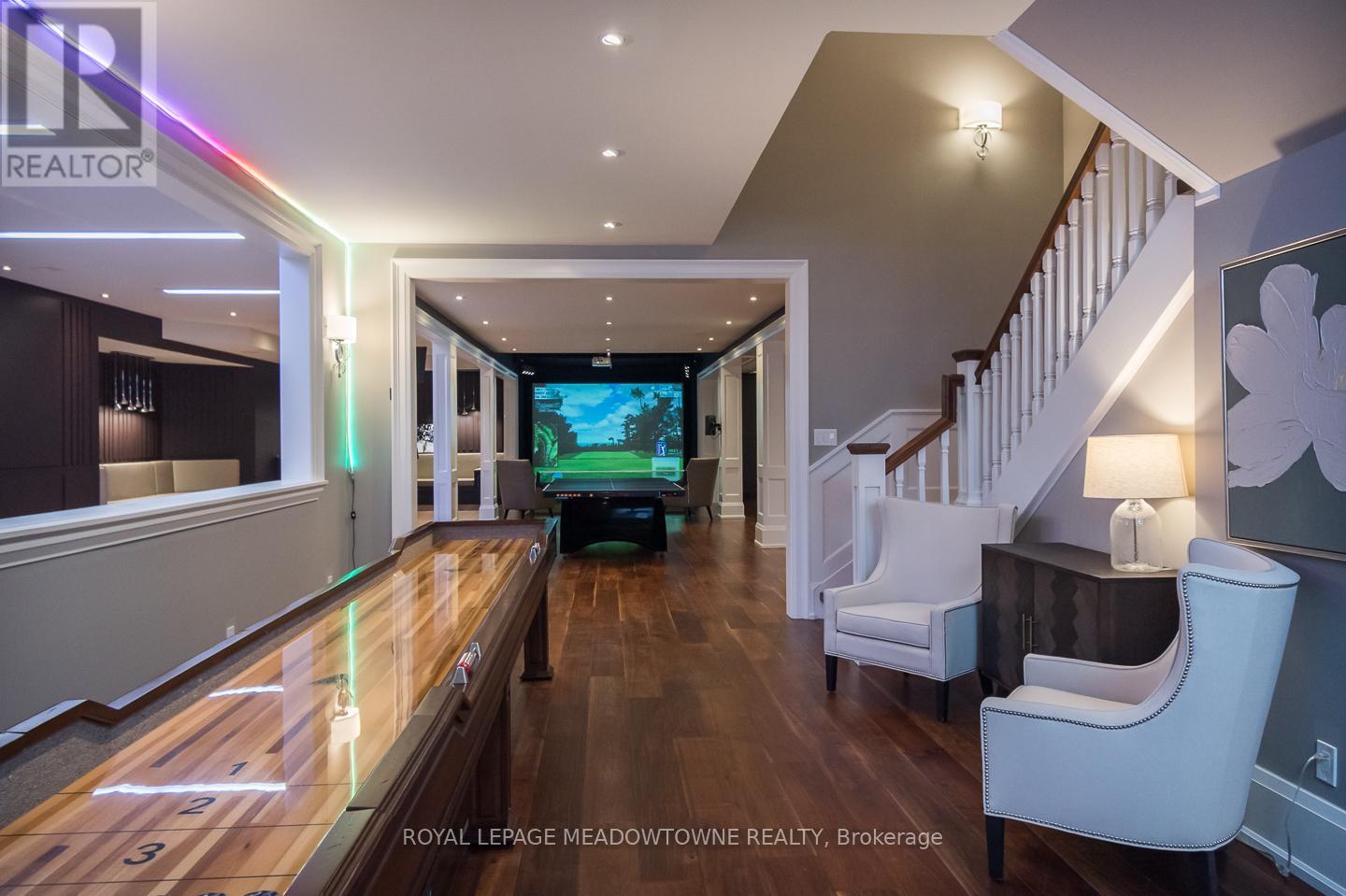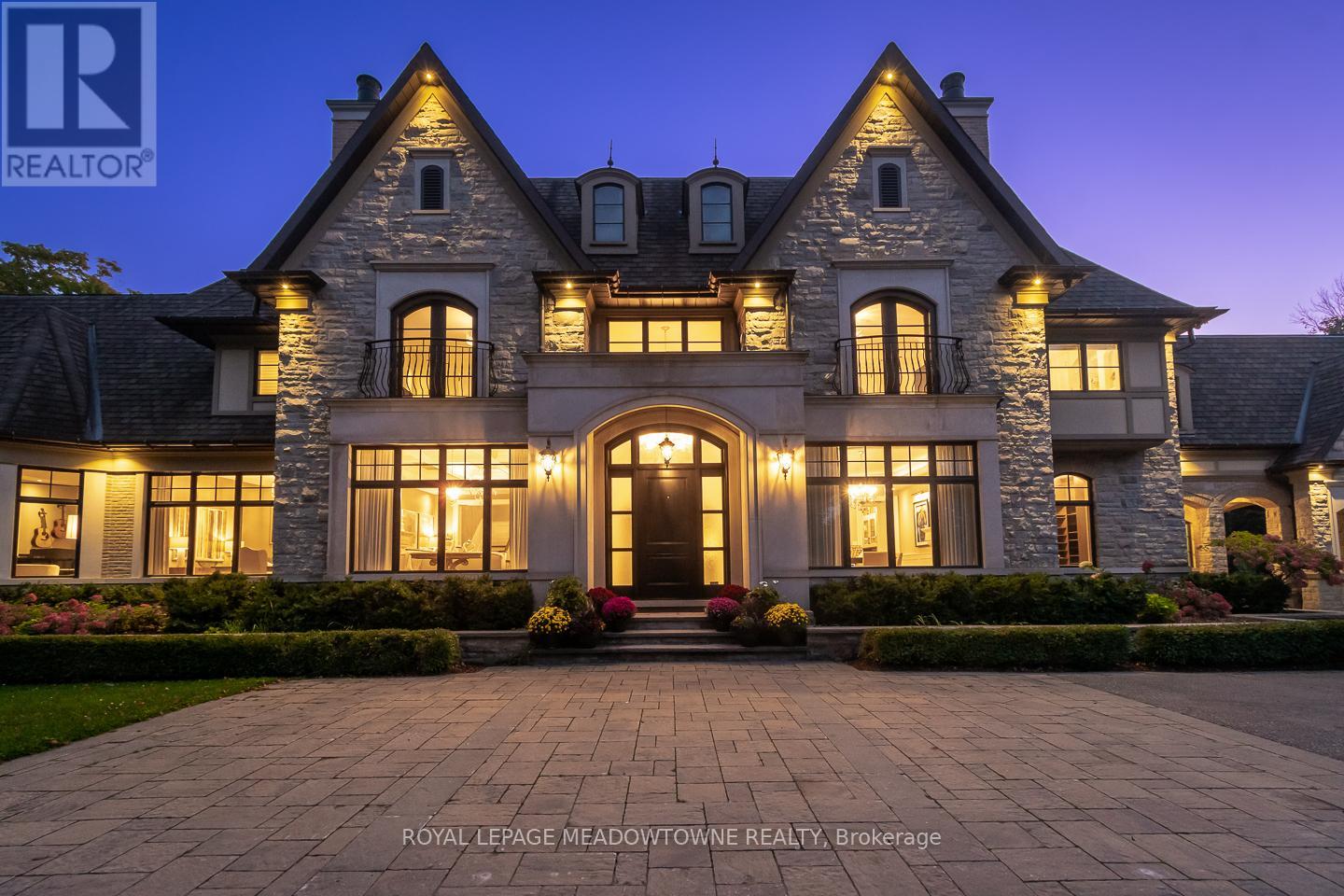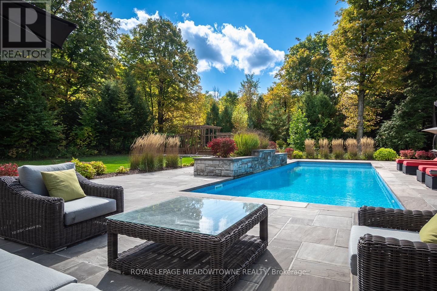 A private 5 acre estate designed for a life where everything happens at home. Just minutes from Milton, Acton, Pearson Airport, and Toronto, it offers the rare balance of privacy with everyday convenience. Designed by renowned architect David Small, the residence blends architectural presence with warmth and livability across more than 16,000 sq ft of finished space. Homes of this scale and design are rarely offered in such a private setting so close to the city. Every room was designed to connect to the surrounding landscape, where mature trees, walking trails, and landscaped grounds create a setting that feels calm and restorative. At the heart of the home, gathering spaces invite family and friends to come together, while the private primary wing offers a retreat of its own. A beautiful office and sitting area overlook the surrounding nature, creating a quiet place to work or unwind. The suite continues with dual dressing rooms, a spa inspired ensuite with heated floors and sauna, and walkout access to a secluded deck with hot tub surrounded by forest. The lower level transforms the home into a destination for entertainment and relaxation, where evenings unfold with a bowling alley, golf simulator, theatre, bar, wine cellar, and recreation spaces. A separate guest or in law suite provides independent living with its own entrance and living space, ideal for extended family or long term visitors. Outdoors, the estate unfolds like a private resort. Spend summer days by the pool, gather in the outdoor kitchen, enjoy the sport court, explore the surrounding walking trails, or tend the vegetable gardens. As evening falls, the illuminated grounds create a warm glow across the landscape, turning the property into a peaceful retreat with endless ways to enjoy every season. A private estate designed for the moments that matter most where life happens and home becomes the destination. (id:64974)