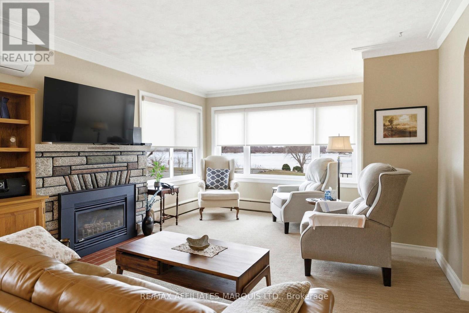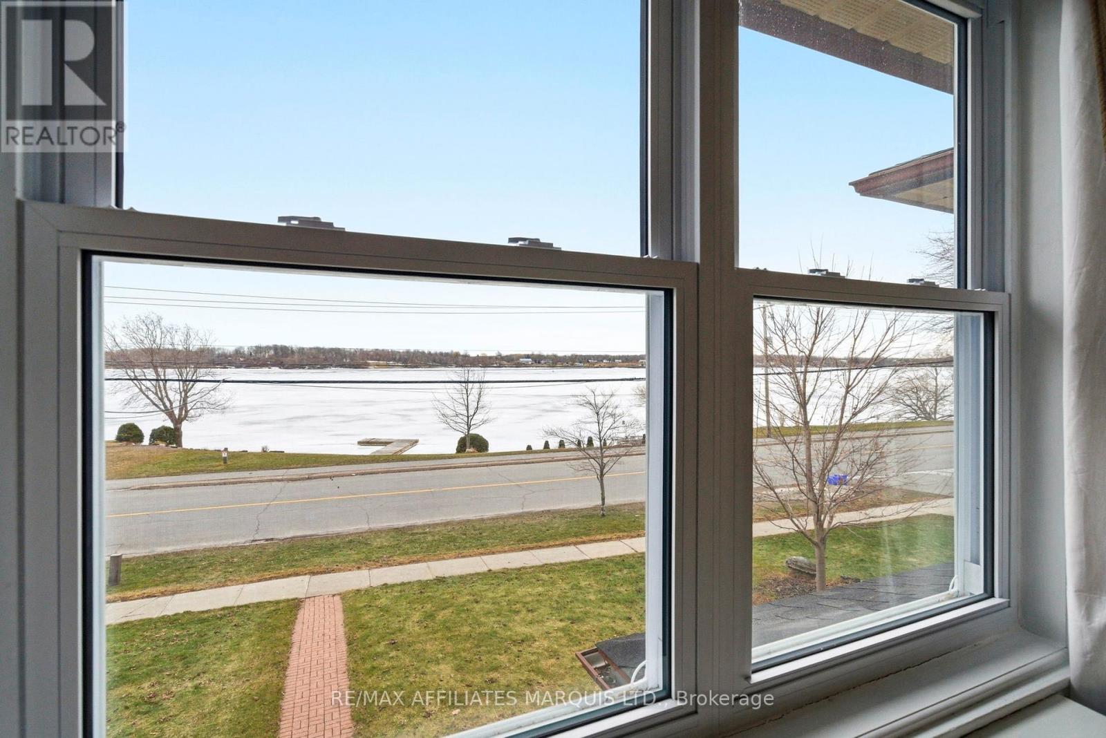 Situated along the beautiful St. Lawrence River, 1318 Montreal Road in Cornwall offers a rare waterfront opportunity on two separately owned parcels, combining comfortable living with exceptional river access. The main property sits on a 65' x 120' lot and features a two-storey duplex with a double attached garage. The main level unit offers two bedrooms, a 4-piece bath, an updated kitchen with stainless steel appliances, granite countertops and breakfast bar, and a dining room and bright living room with hardwood floors, crown moulding, a natural gas fireplace, and views of the St. Lawrence River. The hallway and living room currently have carpeting with hardwood underneath, while the large primary bedroom and second bedroom showcase gleaming hardwood floors. This unit is cooled by ductless A/C. The upper unit, accessed by an interior stairway, enjoys unobstructed river views and includes a living room, kitchen, three bedrooms, a 4-piece bath, and a three-season room above the breezeway that could easily be converted to year-round living space. The upper unit also includes a wall A/C unit, fridge, stove, washer and dryer. The home also features a fully finished basement with ceramic flooring throughout, including a recreation room, laundry room, 3-piece bath and three additional potential bedrooms. The basement is accessible by two separate staircases. The home is heated by a radiant hot water boiler system. Outside, the property offers ample parking, an interlocked patio, and a 6'6" x 16' storage shed with overhead door for lawn equipment. Included is a separate 90' x 50' waterfront parcel directly on the riverbank featuring a private pile-driven dock, perfect for swimming, relaxing, and mooring your boat while enjoying life on the St. Lawrence River. Please allow 48hr irrevocable on all offers. (id:64974)