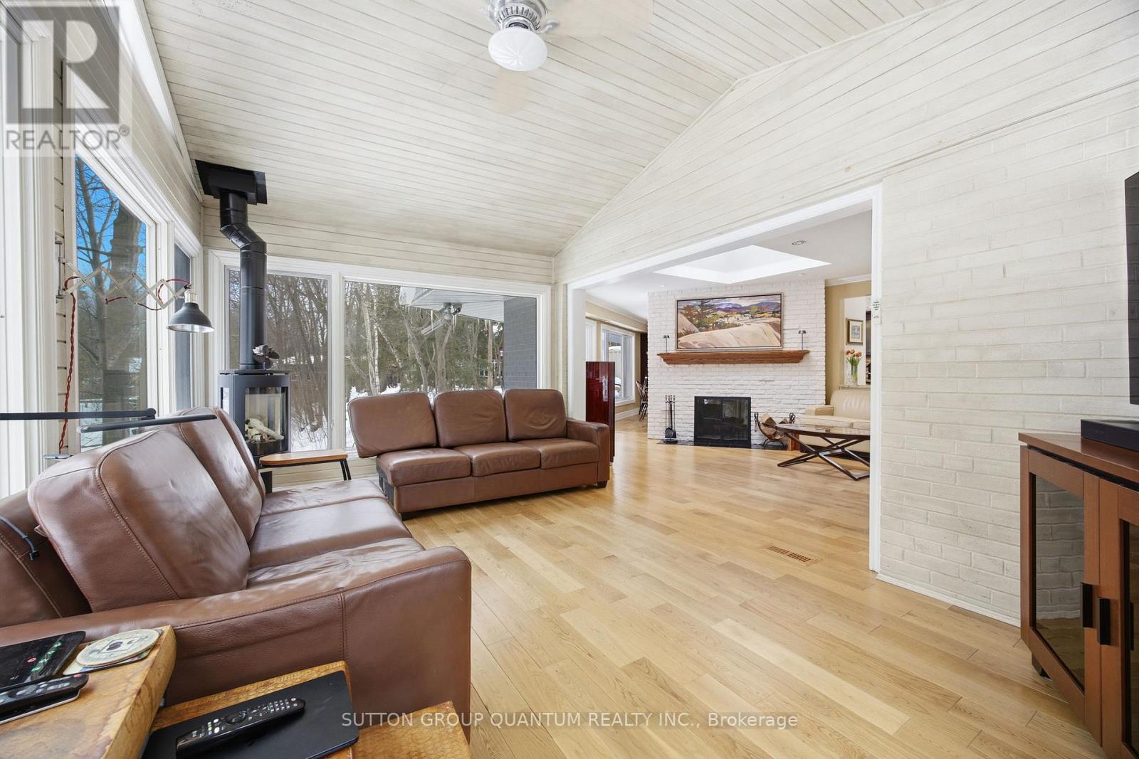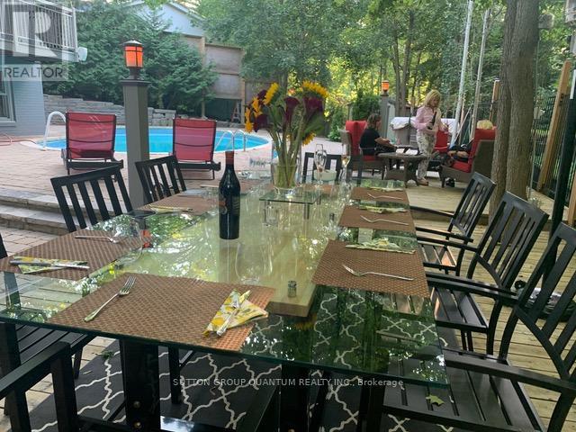 Private Ravine Retreat with Muskoka-Inspired Charm. Nestled on a quiet cul-de-sac, this 1800 sq ft sprawling bungalow offers a peaceful, tucked-away setting surrounded by mature trees and backing onto a serene ravine in the heart of Lorne Park. Designed with a welcoming, easy-flow layout, this 2+2 bedroom home features a walk-out elevation with and additional 1600+ sq ft lower level that seamlessly invites the outdoors in, enhancing both daily living and entertaining with a 3 pc bathroom, additional storage and a home theatre (projector and screen included) and stone fireplace. Natural views and tranquil surroundings create a calming backdrop throughout the living spaces. Featuring skylights and picture windows, updated kitchen, and hardwood flooring throughout main level. Step outside to a truly special backyard oasis. Complete with a pool, hot tub, firepit, dining and dedicated BBQ area, (custom dining table included) this outdoor retreat is perfectly suited for summer gatherings, cozy evenings by the fire, and relaxed weekends at home. A heated and insulated double car garage and expansive driveway provide convenience, ample storage, and plenty of room for guests to park. This is more than a home - it's a private sanctuary designed for comfort, connection, and effortless living. Easy walk to Lorne Park Public and Secondary schools. Walk to Battaglia's grocery, bakery, Jack Darling Park and waterfront trails, perfectly located between Port Credit and Clarkson Village, easy commute to Toronto on Go Train, quick access to QEW and airport. (id:64974)