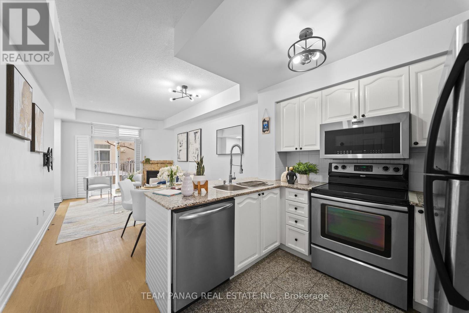 Welcome home to your own private retreat by the water. This stunning unit features 2 spacious bedrooms, 1 beautifully appointed bathroom, a chef-inspired kitchen, a striking gas fireplace, abundant natural light, and not one but two balconies perfect for relaxing and taking in the surroundings. The south-facing balcony offers serene lake views you'll never get tired of. Thoughtfully upgraded throughout, this home is completely move-in ready-just unpack and enjoy. The newly installed light luxury vinyl flooring brightens the entire space, while the elegant wainscoting on the kitchen island adds a charming, coastal-inspired touch. The spa-like bathroom is sure to impress with its upgraded vanity and sleek walk-in glass shower. Location truly sets this home apart. You're just steps from TTC transit, grocery stores, shops, the waterfront, Billy Bishop Airport, major highways, the marina, yacht club, and more. Perfectly situated, this residence truly lives up to the South beach Marina Townhomes name. A must-see-you won't be disappointed. Extras: Stainless steel fridge, stove, microwave/range combo, and dishwasher. Washer and dryer. All existing light fixtures and window coverings. One parking space included. Doorbell, Google Nest, and storage shelving in the living room closet. (id:64974)