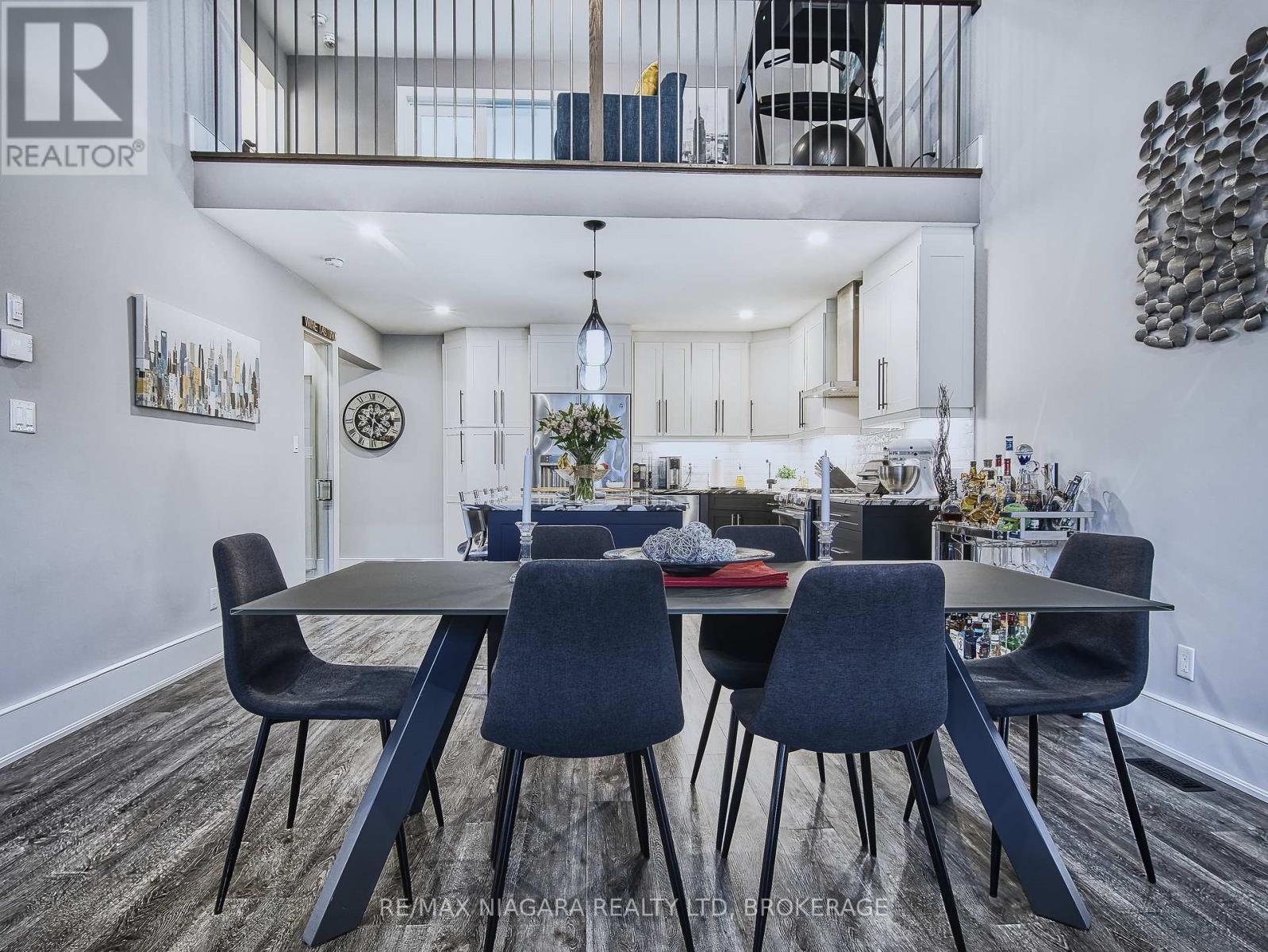 Welcome to Clubview Lane, an executive enclave of bungaloft townhomes offering luxury, privacy, and convenience in south Niagara Falls. Located just steps from the clubhouse and first tee, this one-owner home was built in 2017 by Mountainview Homes and features numerous upgrades throughout.The home offers nearly 1,900 sq ft of finished living space. A spacious foyer welcomes you with access to both levels, a 2-piece powder room, and main floor laundry. The main living area features a dramatic vaulted ceiling and an open-concept layout combining the kitchen, dining, and living space, ideal for entertaining. The custom kitchen is complemented by upgraded flooring, custom finishes, and a built-in wine display. The main floor primary suite overlooks the garden and includes custom closets and a well-appointed 4-piece ensuite. Upstairs, the open loft provides flexible living space suitable for a home office, lounge, games area, or library. This level also features an upgraded 4-piece bath and a spacious second bedroom with double closets. The basement is currently unfinished and offers excellent potential, with a bathroom rough-in and cold cellar already in place. Outside, the property features a double garage, two additional driveway parking spaces, rear decking, and professionally landscaped gardens designed for easy maintenance and relaxing outdoor evenings. An exceptional opportunity whether you're seeking a full-time residence, a seasonal retreat, or a home close to golf and amenities. (id:64974)
