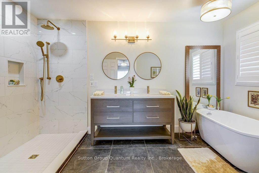 Stunning Eringate Drive residence with a rare and spectacular view of the park right from the backyard. The spacious floor plan has 2,664 sq ft above grade and 1297 below grade of updated living space includes 4+1 bedrooms 2+1 Baths. The stone accents, covered porch, and double car garage lead to gorgeous curb appeal. Enjoy a modern open-concept kitchen with new appliances and quartz counter tops which has its own eat in kitchen and separate formal dining room. Cozy up in the main floor family room next to the gas fireplace. Upstairs you will find 4 large bedrooms. You don't want to miss out on the master suite, featuring an updated 5 piece ensuite bathroom with a soaker tub. The newly renovated basement with modern finishes is your perfect entertainment space. You will enjoy the family room area with an electric fireplace as well as a recreation room, exercise room, or games room. Perfect for working from home, there is also a fully sound proof office space with resilient sound channeling in the ceiling. Lastly, take advantage of the expansive cold cellar with motion activated lights. Note there is a rough in bathroom in the furnace room. close proximity to shopping and some of the best schools in Hamilton. $1.149 million (id:64974)