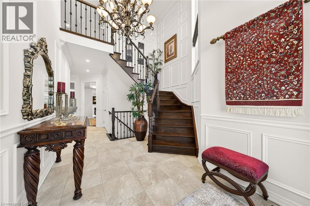 It’s love at first sight! Welcome to this majestic, meticulously maintained home in the highly desirable Meadowlands of Ancaster. Proudly cared for by the original owners, this beautiful residence offers over 2,940 sq. ft. of above-grade living space and is situated on a quiet, family-friendly street. From the stately curb appeal to the stunning exterior finishes, this home makes a lasting impression. Step inside to a grand entryway leading to spacious principal rooms with soaring ceilings that create a bright, airy, and calming atmosphere. The carpet-free main floor features engineered hardwood flooring, a cozy gas fireplace, and an ideal layout including a formal living room, dining room, and family room. The bright and spacious eat-in kitchen is designed for both everyday living and entertaining, offering granite countertops, a built-in pantry, breakfast bar, and ample cabinetry. Upstairs, retreat to the generously sized primary bedroom complete with sun-filled windows, a walk-in closet, and a spacious ensuite bath. Three additional well-appointed bedrooms and a four-piece bathroom complete the second level—perfect for growing families. The full, unfinished basement with high ceilings provides a blank canvas ready for your personal touch and future expansion, offering incredible potential to customize to your needs. Enjoy the outdoors in the low-maintenance backyard featuring exposed aggregate concrete, with matching exposed aggregate driveway enhancing the home’s curb appeal. A truly exceptional home in a prime location—seeing is believing. (id:64974)